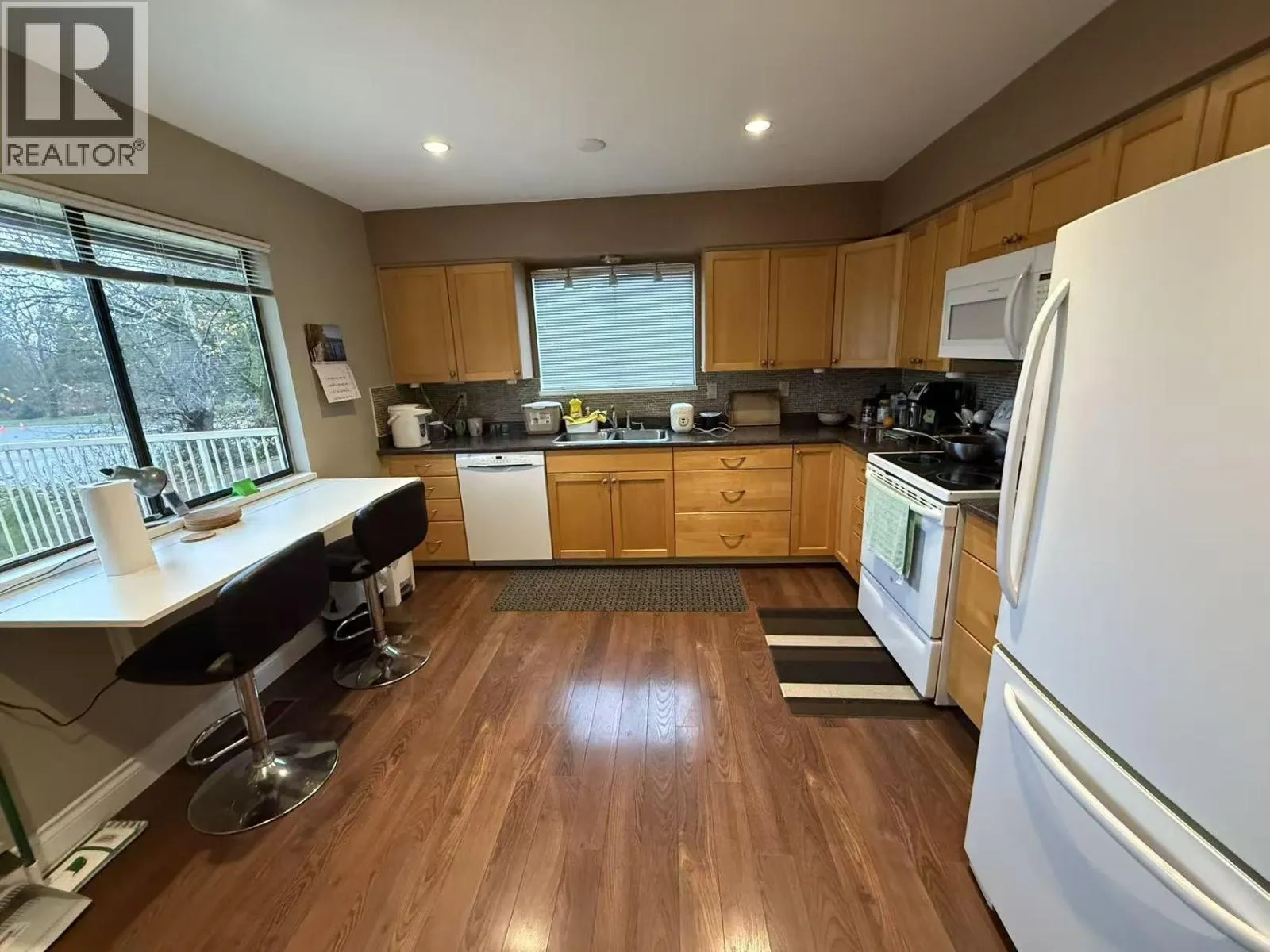 This beautifully updated home offers a bright and spacious living environment, featuring a stylish sunken living room. The separate kitchen includes a large window and a cozy eating area. The upper floor provides three well-sized bedrooms, including a primary bedroom with an updated 3-piece ensuite and dual closets, while a functional den/home office is located on the first floor off the foyer. With over 850 sq.ft. of outdoor space across the balcony, patio, and deck, residents can enjoy unobstructed mountain views. The home is currently renting out the first-floor den along with the entire second-floor level. Furniture can be included or excluded, depending on the tenant´s preference. (id:27476)