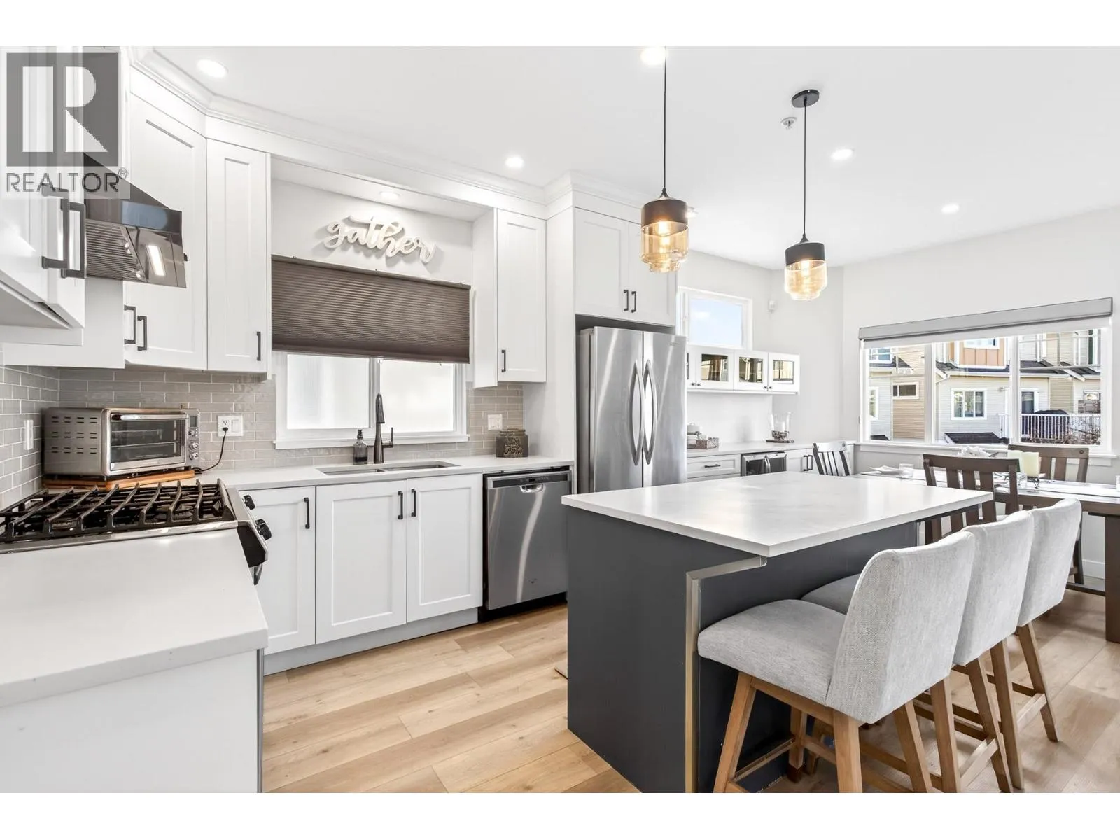 Spacious Detached Townhome. 4 bedrooms plus den, 4 bathrooms. Gorgeous improvements throughout, including luxury vinyl flooring & designer paint colours. Large updated kitchen featuring white shaker cabinets, quartz countertops, stainless appliances, island, dining area, family room with walk out to BBQ deck. Living room with cozy electric fireplace. Spacious Primary suite with walk in closet and spa like ensuite. Basement has a 4th bedroom, full bathroom, huge rec room & separate entry, ideal for families or guests. Enjoy the fully fenced yard with patio. See it, love it! Book your private showing today! (id:27476)
