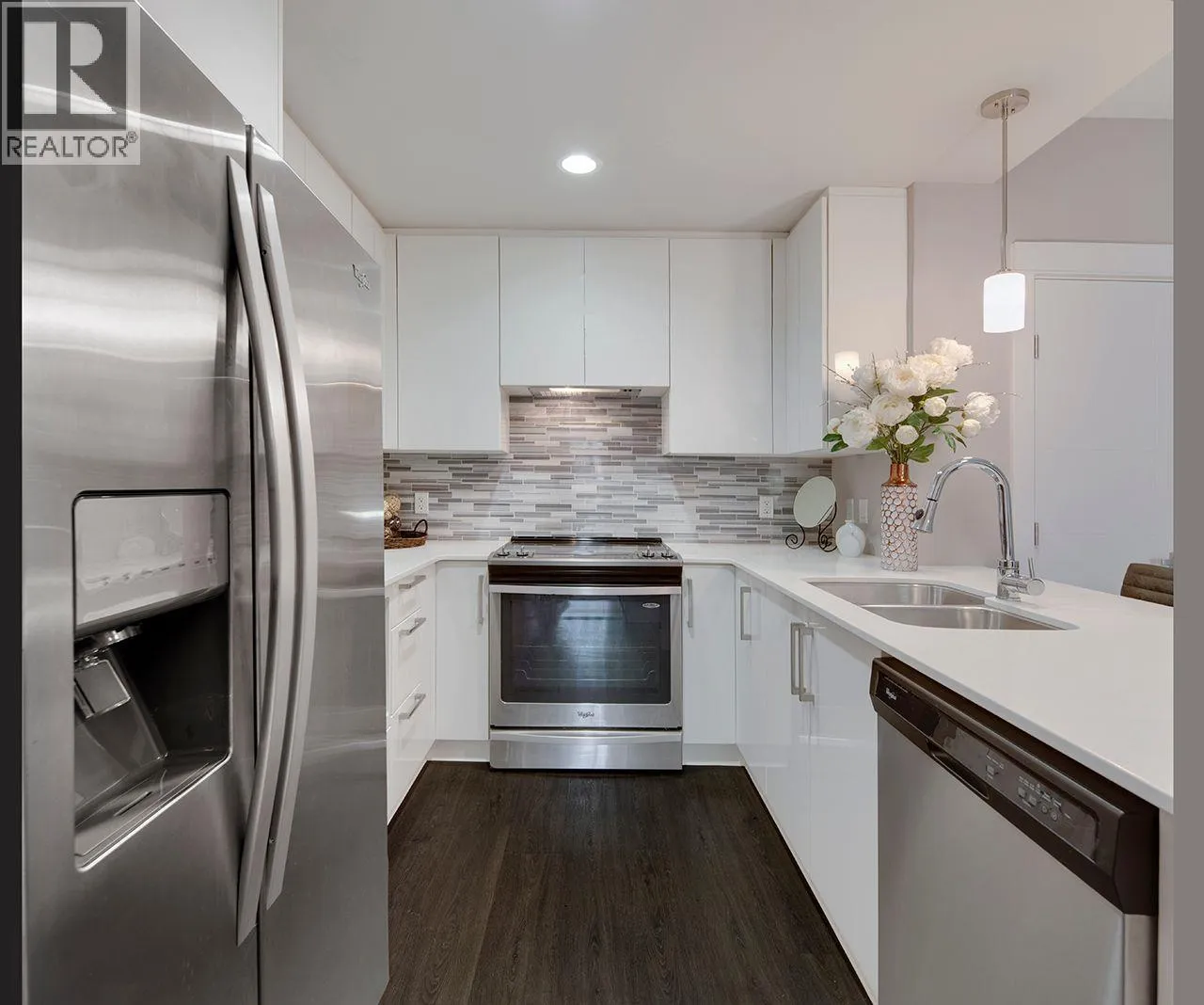 This bright 5th-floor A Plan home offers a stylish breakfast bar, cheater ensuite, and a convenient walk-through closet. Enjoy quartz countertops, stainless steel appliances, laminate flooring, and open-concept living - all standard features in every residence. Perfectly positioned along Port Coquitlam 's scenic Traboulay PoCo Trail and Gates Park, Riverside brings nature right to your doorstep. Take a leisurely walk to historic downtown PoCo and explore its charming cafes, boutiques, restaurants, and vibrant nightlife. (id:27476)