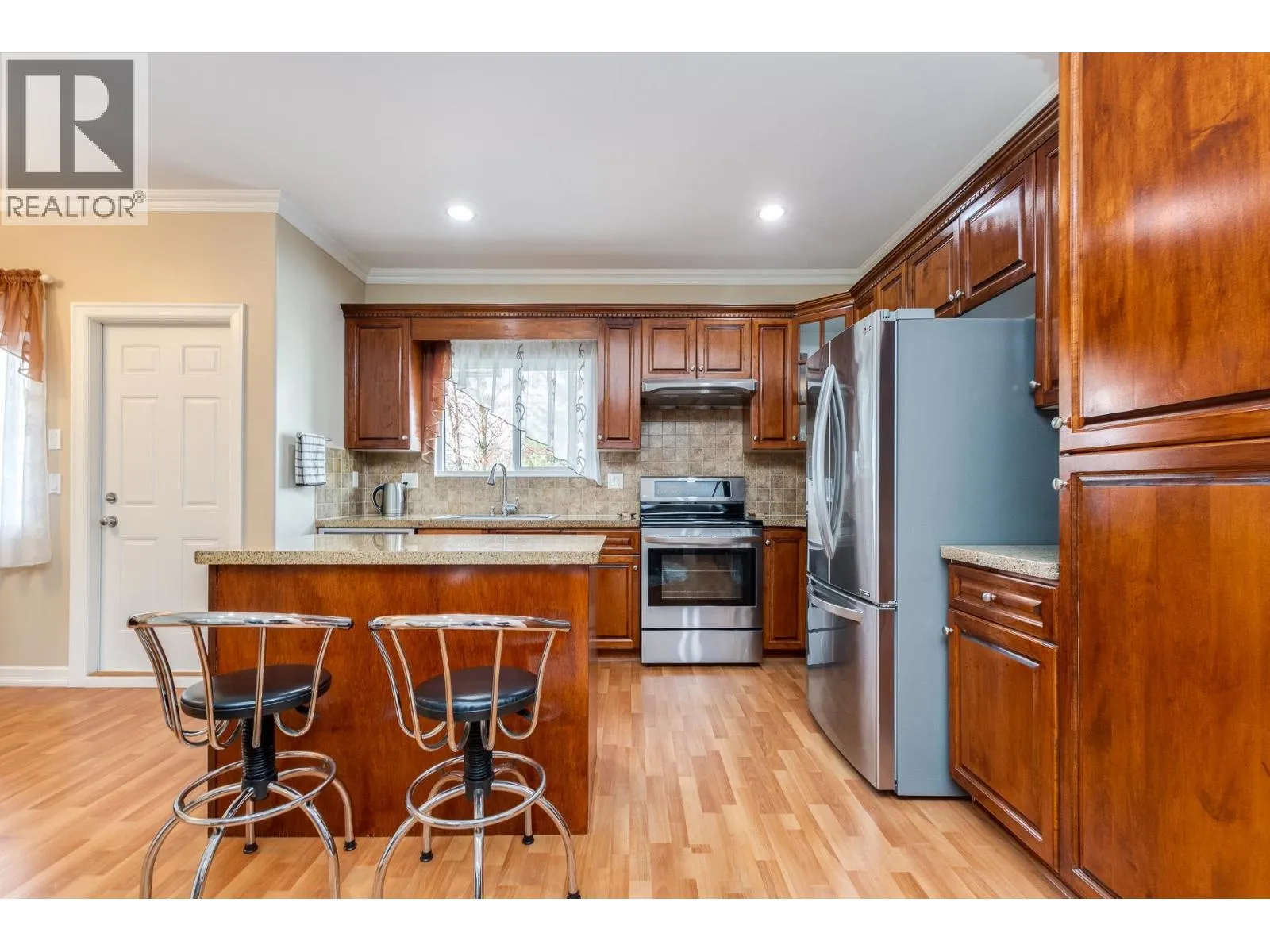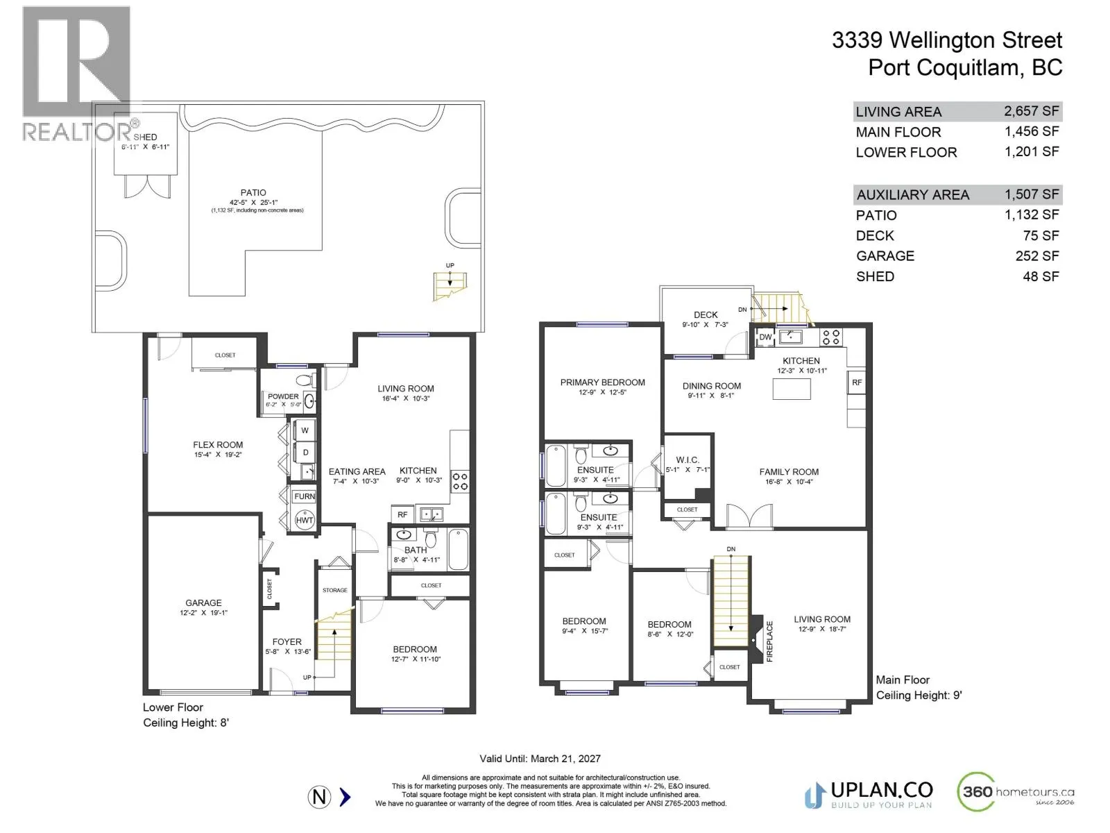 2657SF, 4 bdrm, 4 bath, 1/2 duplex in prime N Poco location. Short walk to all forms of shopping, transportation & schools. Exceptional finishing quality throughout. 3 bdrms on main, Primary w/oversized w-i closet & 4pc ensuite w/jacuzzi tub. Large kitch w/maple cabinets, upgraded s/s appliances, granite counters incl breakfast bar island overlooking family rm. Dining rm off kitch leads out to W facing deck overlooks fenced yard w/new fence, paver patio & shed. Formal living rm w/gas fireplace & peek-a-boo mountain view. 9' ceilings throughout main, new carpet, crown moulding & oversized base. Bsmt finished w/rec rm, sep entrance, 2pc bath, barn door storage area, new vinyl flooring +1 bdrm separate accommodation. More like a house than 1/2 duplex. Must See! (id:27476)
