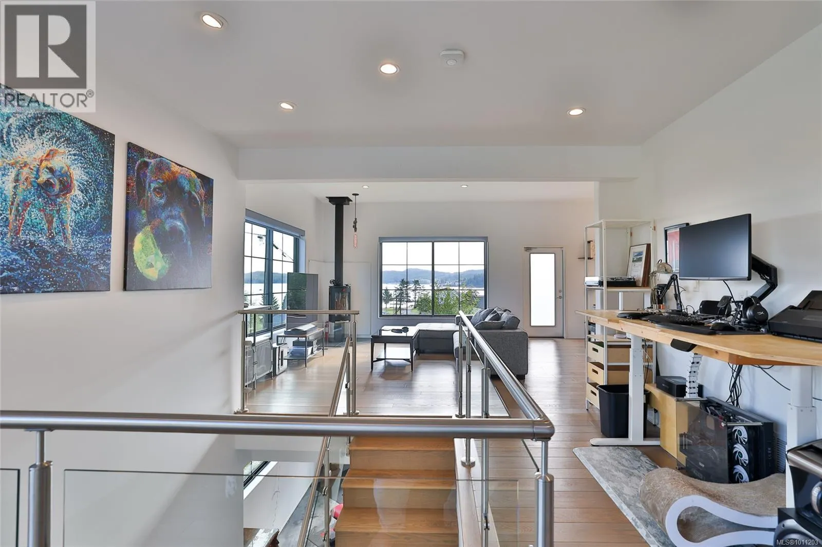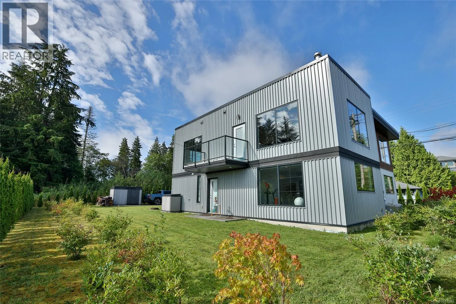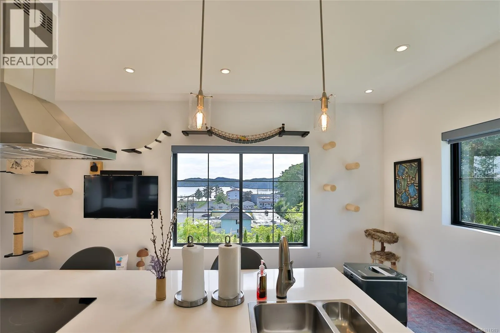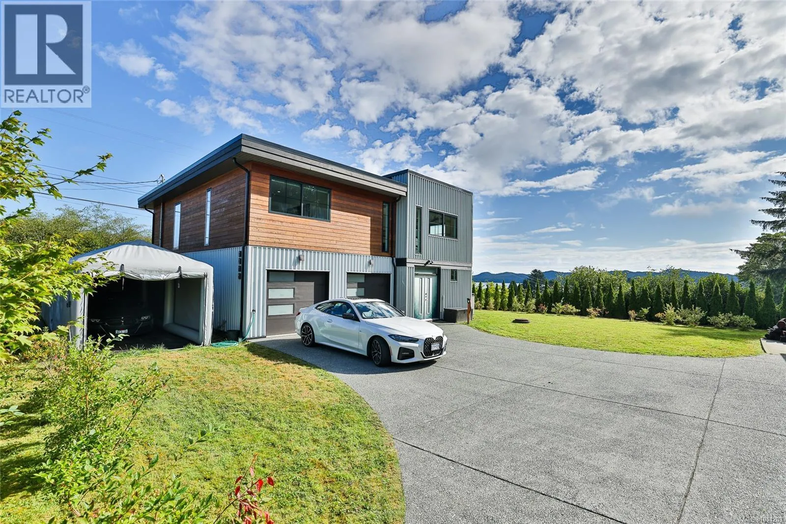 Perched on the top of Pelzer's hill is this fully furnished, ultra modern ocean view home in walking distance to everything downtown Port Hardy. 3 years remaining on home warranty for this 2 bedroom plus den, 3 bathroom, 3 car garage Aspire Custom Design home. The lot below is included in this sale, to ensure your privacy and unobstructed view remains. Welcome your guests into the large entrance on ground level with beautiful epoxy painted concrete. The ground level also offers a pantry, entrance to the garage and maintenance room, home gym (equipment included), bathroom, bedroom area with murphy bed and access to the yard. Come on upstairs to the very open area concept living, kitchen and dining - all with a great view. Wake up to the amazing sunrises right from the comfort of your bed. The main bedroom has a large walk in closet and beautiful ensuite. The second bedroom on this level is at the opposite end of the house with it's own ensuite as well. Many nifty, chic and smart surprises in this home including remote blinds & lights, heated/wash/dry toilet seats. Generator, garden shed (for wood) and the ultimate wall mounted cat obstacle course for that spoiled furry friend. The yard is fully enclosed with privacy hedge and a galore of blueberry bushes. Call your Realtor today to check out this very contemporary abode with more surprises to discover on your tour. (id:27476)