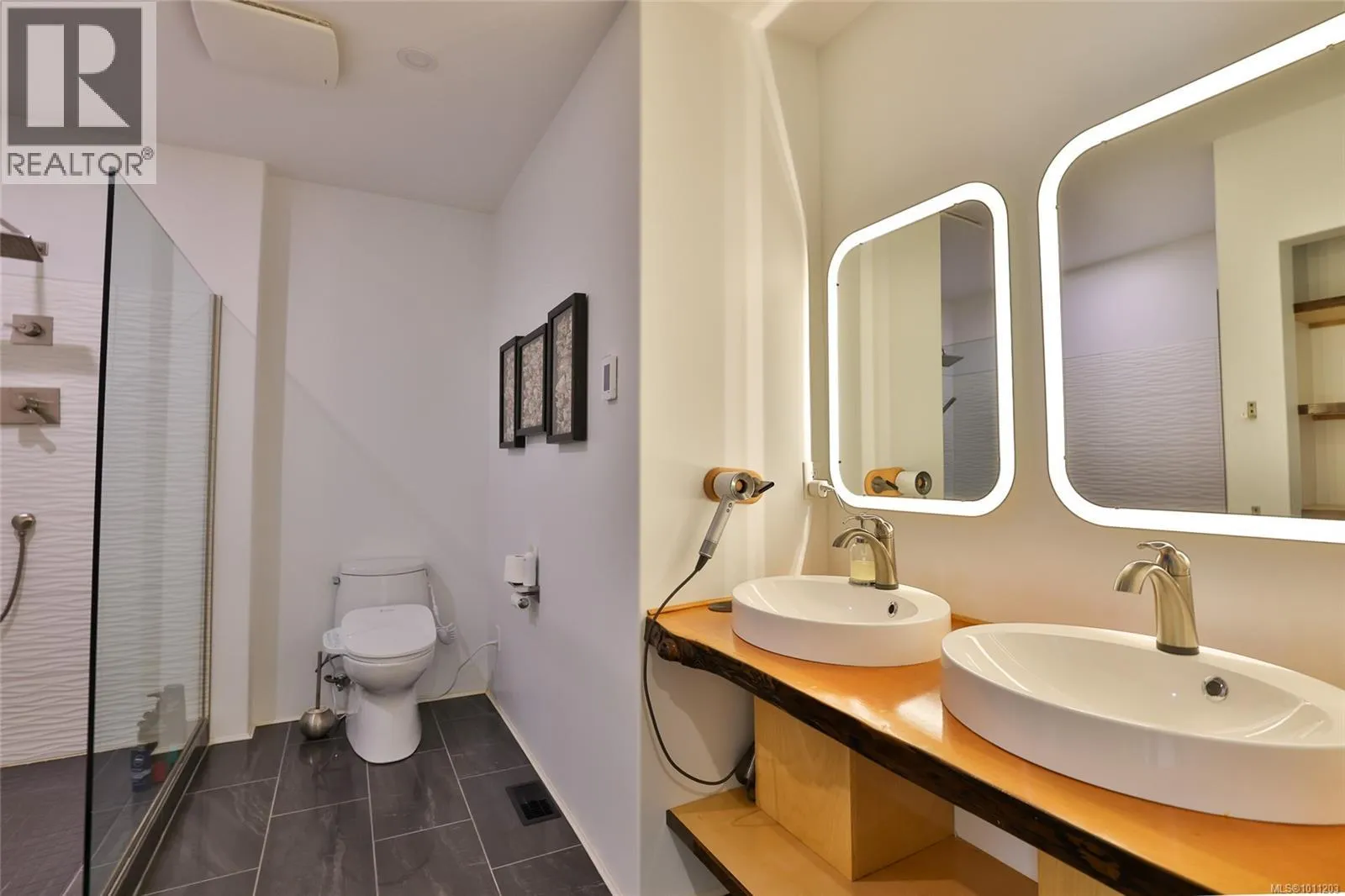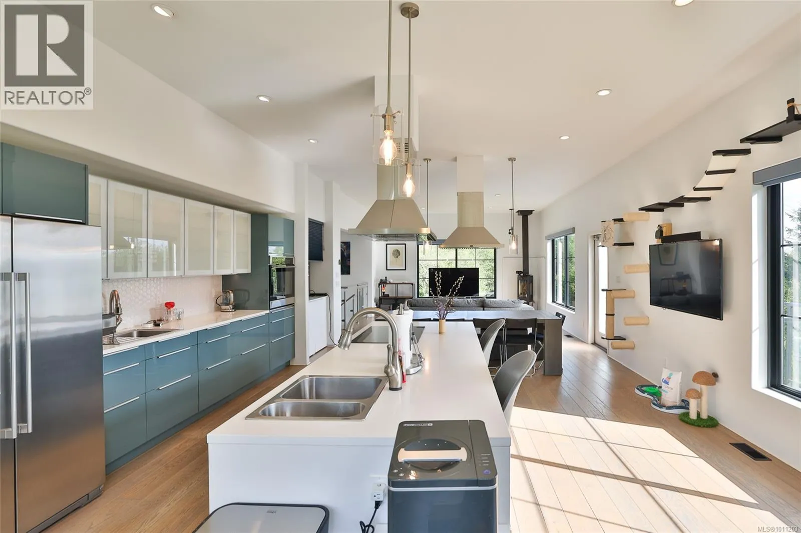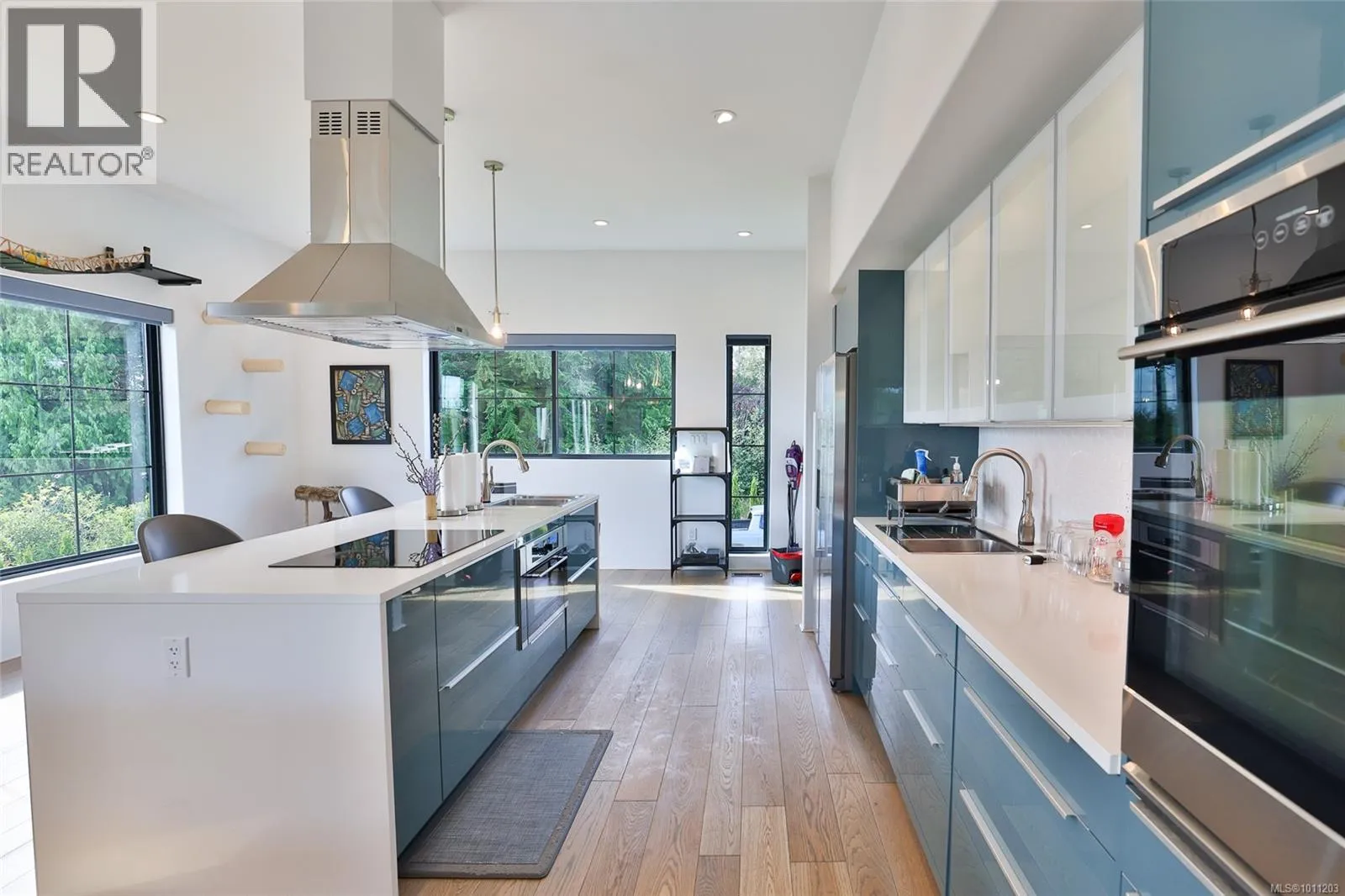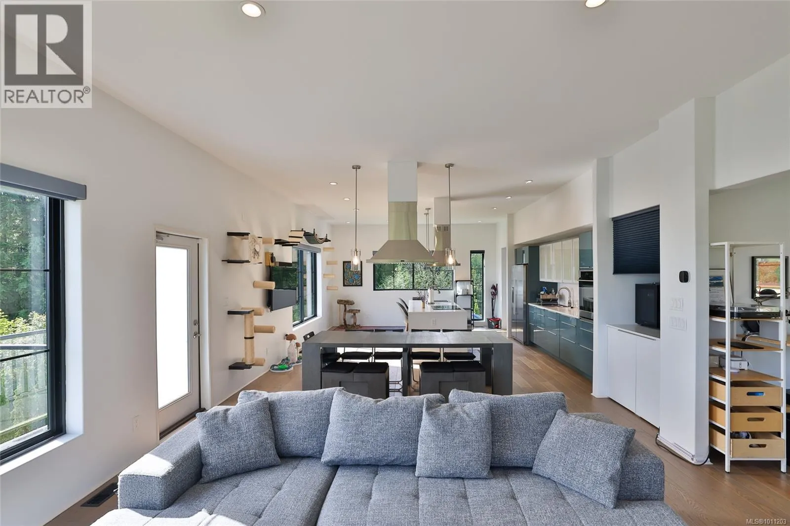 Perched on the top of Pelzer's hill is this fully furnished, ultra modern ocean view home in walking distance to everything downtown Port Hardy. 3 years remaining on home warranty for this 2 bedroom plus den, 3 bathroom, 3 car garage Aspire Custom Design home. The lot below is included in this sale, to ensure your privacy and unobstructed view remains. Welcome your guests into the large entrance on ground level with beautiful epoxy painted concrete. The ground level also offers a pantry, entrance to the garage and maintenance room, home gym (equipment included), bathroom, bedroom area with murphy bed and access to the yard. Come on upstairs to the very open area concept living, kitchen and dining - all with a great view. Wake up to the amazing sunrises right from the comfort of your bed. The main bedroom has a large walk in closet and beautiful ensuite. The second bedroom on this level is at the opposite end of the house with it's own ensuite as well. Many nifty, chic and smart surprises in this home including remote blinds & lights, heated/wash/dry toilet seats. Generator, garden shed (for wood) and the ultimate wall mounted cat obstacle course for that spoiled furry friend. The yard is fully enclosed with privacy hedge and a galore of blueberry bushes. Call your Realtor today to check out this very contemporary abode with more surprises to discover on your tour. (id:27476)