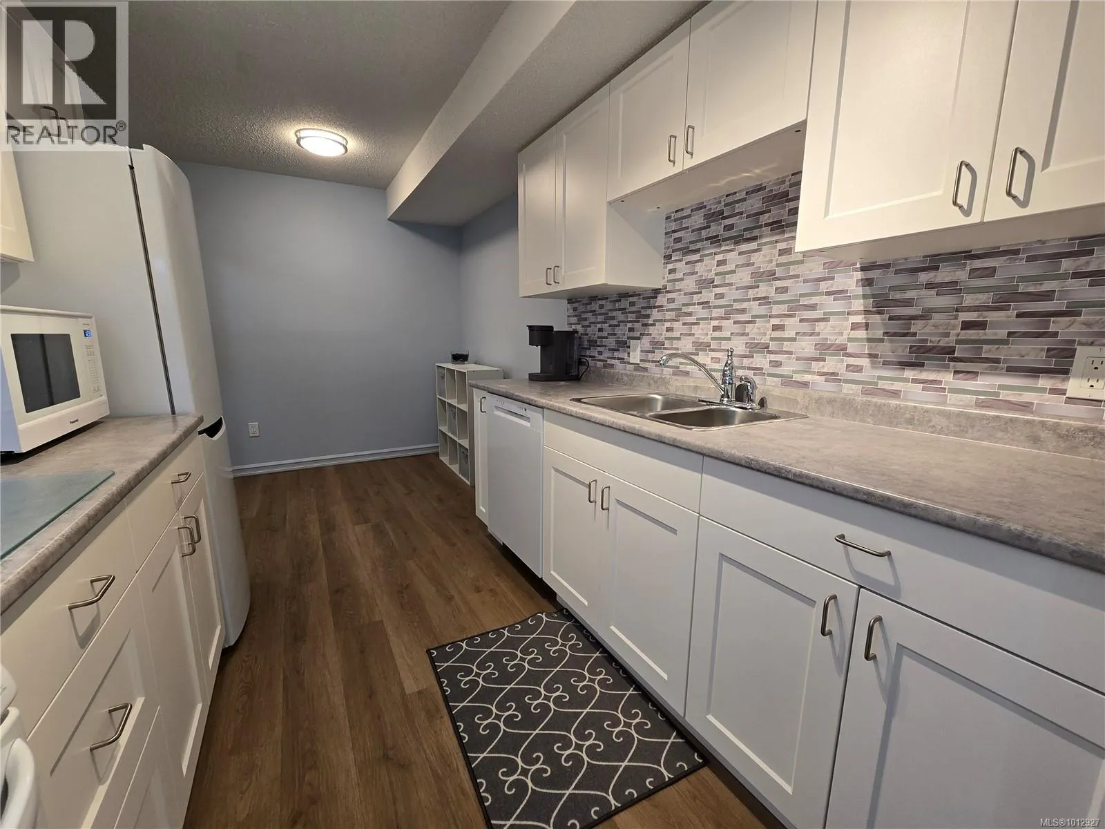 Beautifully updated 2 bedroom, 1 bathroom condo, just steps from the Ocean! Welcome to 101 Harbourview, a bright and spacious ground floor unit in a desirable, secured entry building close to all of Port Hardy's amenities. Just move right in, everything has been renovated within the past few years- Kitchen cabinets, counter tops, sink and facet, dishwasher, Bathroom vanity and sink, toilet, flooring and lighting in kitchen and bathroom. All heating registers have been replaced and independent shut-off valve added. Strata fees include heat, hot water, building maintenance, and on-site caretaker. This building has recently undergone a complete rehab of the building envelope- all new windows, siding, sliding doors and balconies, ensuring the buildings' longevity. These units make great and profitable rentals for buyers looking to invest in a rental property- which are in great demand. Call your agent to view today! (id:27476)
