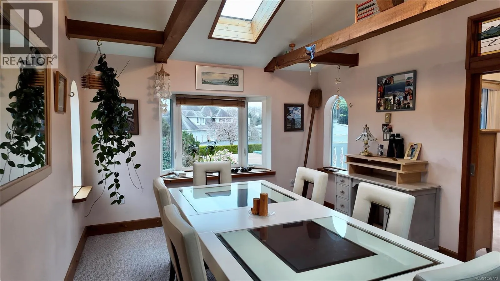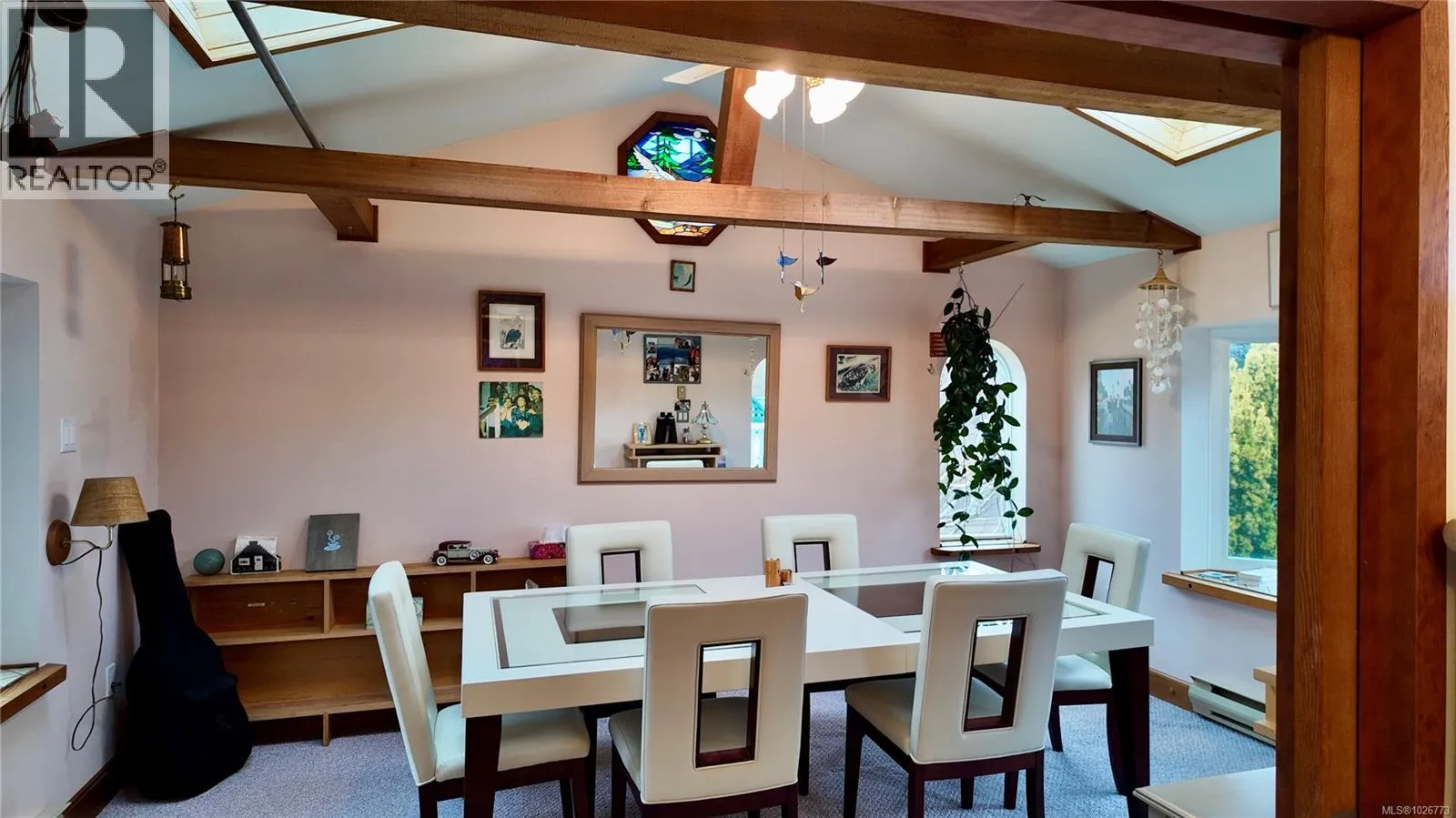 7710 Cedar Place in beautiful Port Hardy is all about location, views and solid value. This well-kept non-strata half duplex offers ocean and mountain views, with both enjoyed from the upper-level windows and deck. Inside, you'll notice the warm custom woodwork and thoughtful updates right away. The dining room features a vaulted ceiling with decorative exposed beams, skylights, and two stained-glass features beautifully embedded in the walls - just one of several details that give the home extra character and natural light. Set on a 5,384 sq ft R-2 lot, there's flexibility here. Workshop space, room to garden, greenhouse potential and mature landscaping are already in place. The Generac backup generator, fueled by propane and wired directly into the home, means you're covered when the power goes out. Just around the corner from the ocean in a quiet Port Hardy neighbourhood, you're minutes to marinas, beaches, fishing, hiking and everything Northern Vancouver Island is known for. (id:27476)