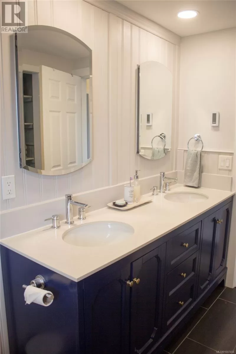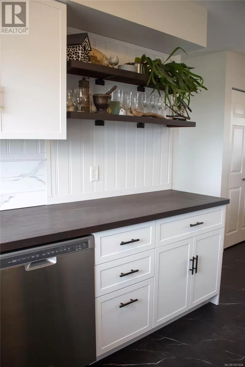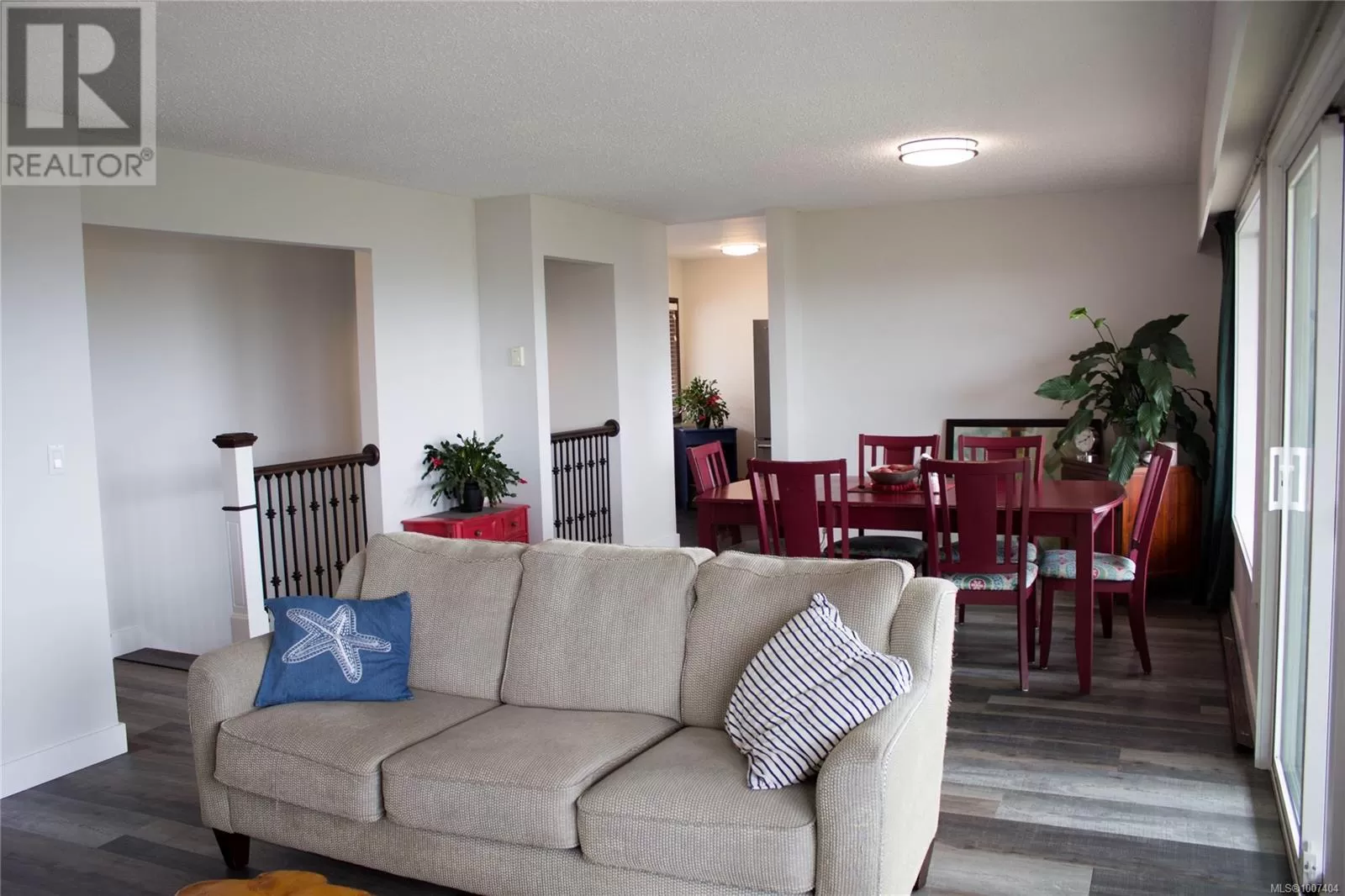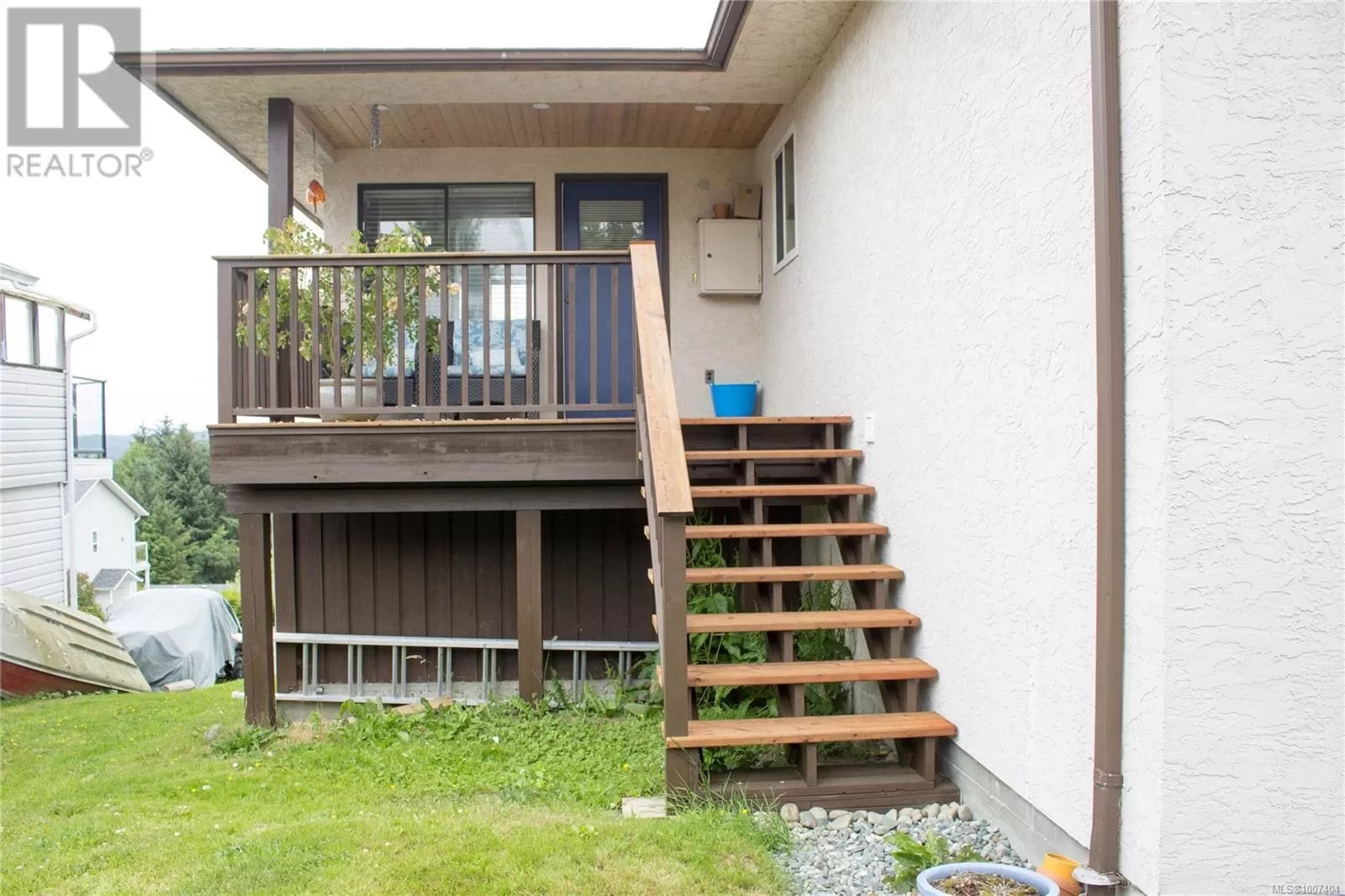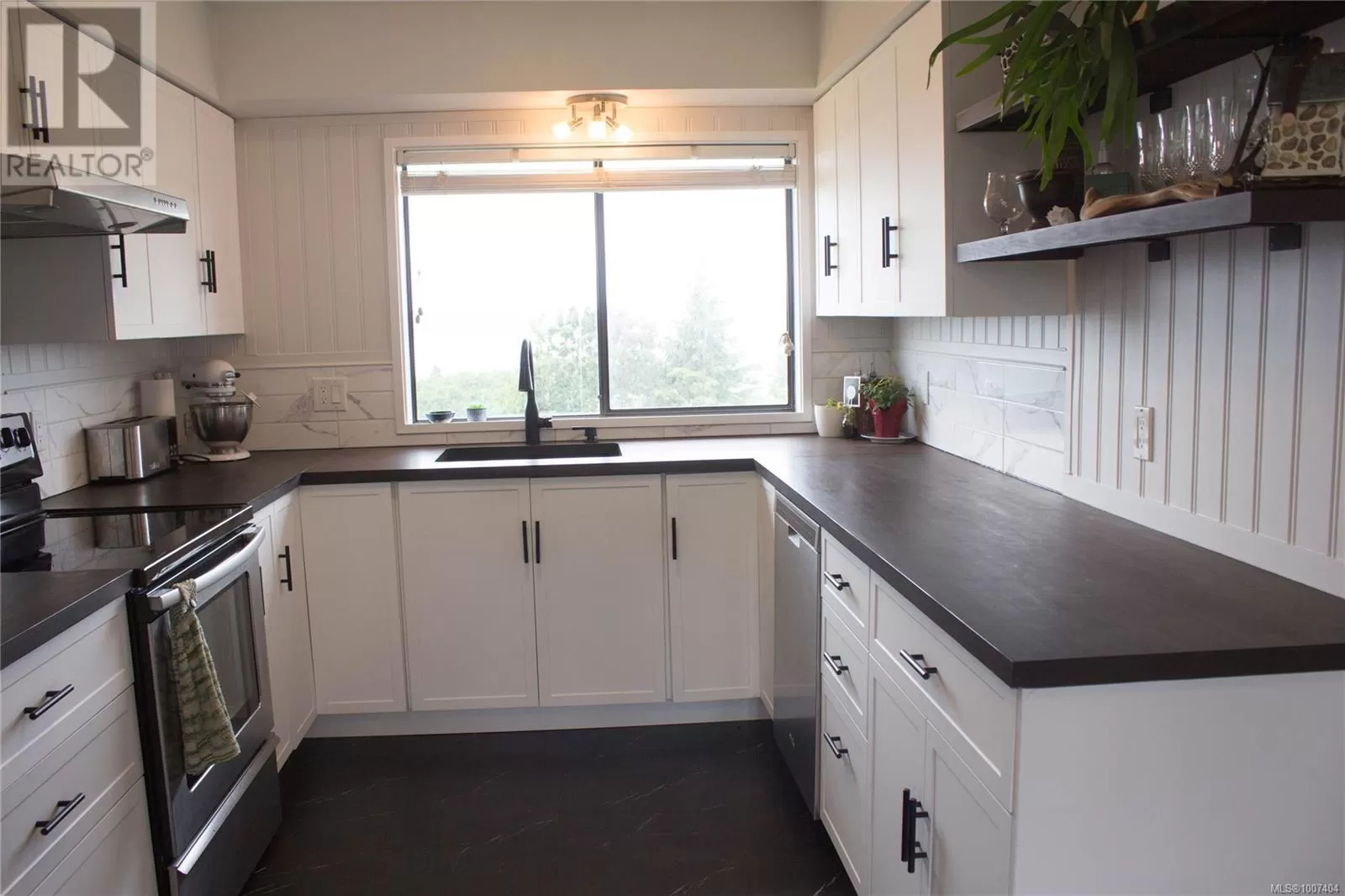 Ocean & Mountain View Home - Updated & Move-In Ready Enjoy breathtaking sunsets year-round from the covered deck of this tastefully updated 3 bedroom + bonus room, 2-bathroom home, with stunning ocean and mountain views. Renovated six years ago with quality materials throughout, it also features a brand-new kitchen, updated deck and stairs (2025) and a 4-year old roof. The main floor includes a large entertainment room with a built-in bar, 3-piece bathroom, den, laundry room, and a workshop or storage space. Upstairs offers 3 bedrooms and a beautifully renovated 4-piece bathroom with heated tile floors and a double sink vanity. Set up for North Island living, this home is ready for the fireplace of your choice and includes a hardwired 8-kilowatt generator for peace of mind during power outages. The yard is private, low-maintenance and partially fenced-perfect for easy outdoor living. While many major updates are complete, a few original windows remain, giving you the opportunity to add your personal touch. This home combines comfort, functionality and West Coast charm-don't miss your chance to view it! (id:27476)