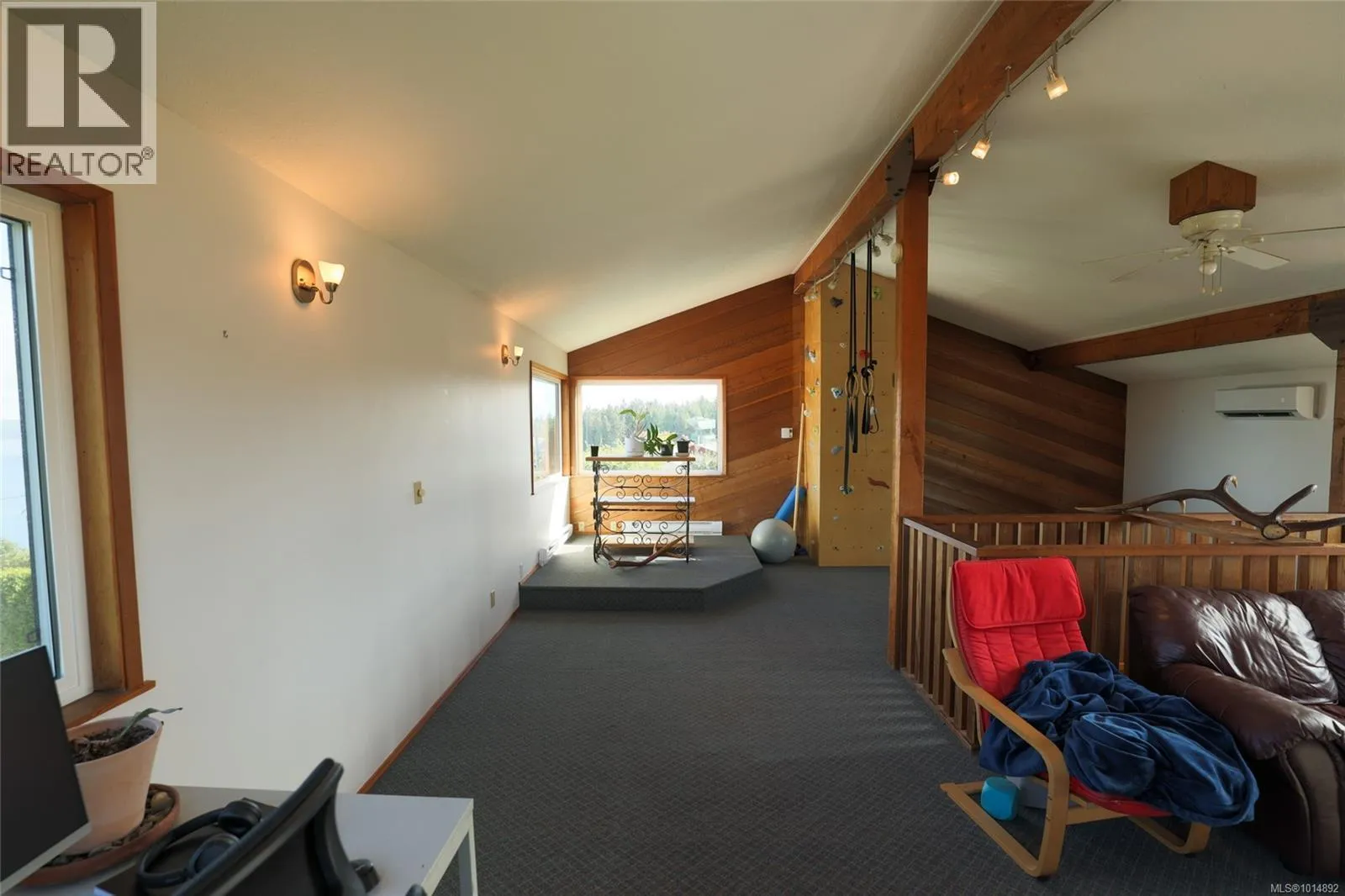This unique Port McNeill home offers character, comfort, and big updates. Built in 1975 with a modern layout, it features new vinyl windows, perimeter drains, a heat pump, Blaze King woodstove, and cork flooring in the basement. The main floor has a bright great room with expansive ocean and mountain views, a dining area with deck access, and a kitchen overlooking the backyard. A 2-piece bath and laundry/mudroom complete this level. Upstairs is a versatile loft family room/office, while the lower level has 3 bedrooms and a full bath. Outside, enjoy a level yard with dog run, greenhouse, woodshed, quad storage, and multiple producing fruit trees and berry plants. Plenty of parking with a 2-car garage, RV/boat space, and a workshop/studio above the garage. A true standout! (id:27476)