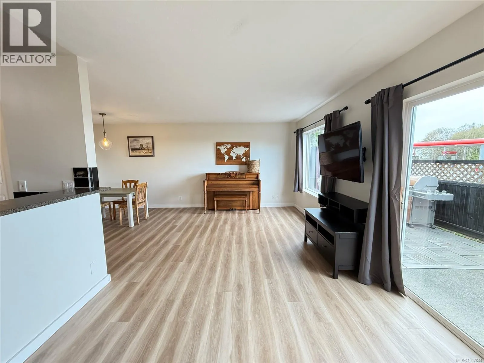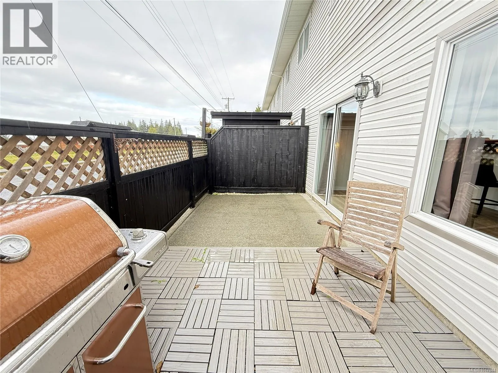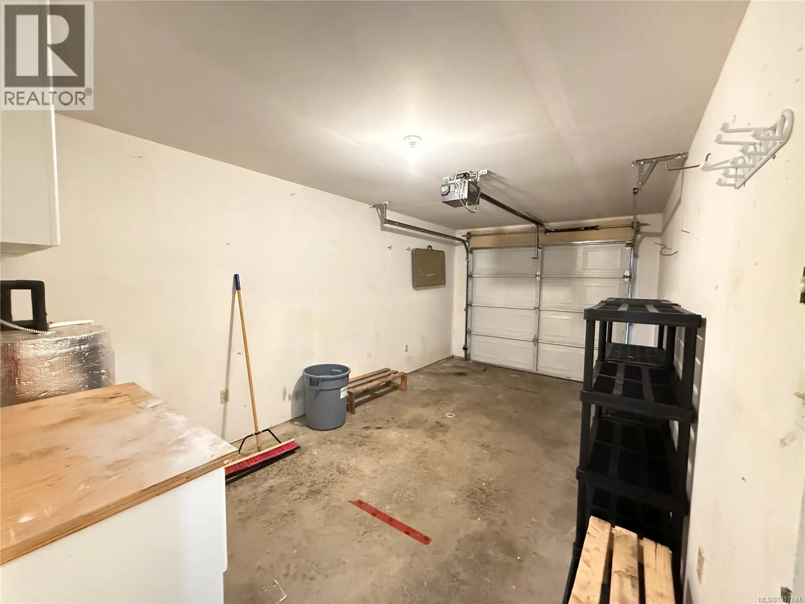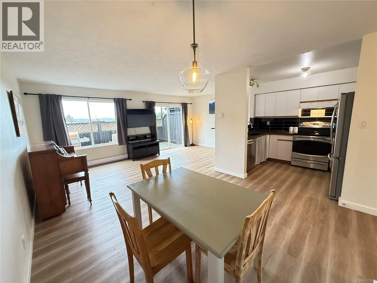 This bright corner-unit townhouse offers 3 bedrooms, 1.5 baths, and an open floor plan that makes the most of its natural light and mountain views. Enjoy a peak of the ocean from 2 of the bedrooms upstairs. Recent updates include new flooring throughout the main level, upstairs bathroom, and laundry area, along with a fresh paint job that gives the home a modern, move-in-ready feel. The kitchen has updated granite countertops as well as tiled backsplash and updated appliances. The fenced-in patio provides a private outdoor space for relaxing or entertaining, while the attached garage and extra storage room with built-in shelving add everyday convenience. With a low strata fee and excellent value, this home is ideal for first-time buyers or those looking to downsize. A rare opportunity to enjoy comfort and practicality all in one thoughtfully maintained property. (id:27476)