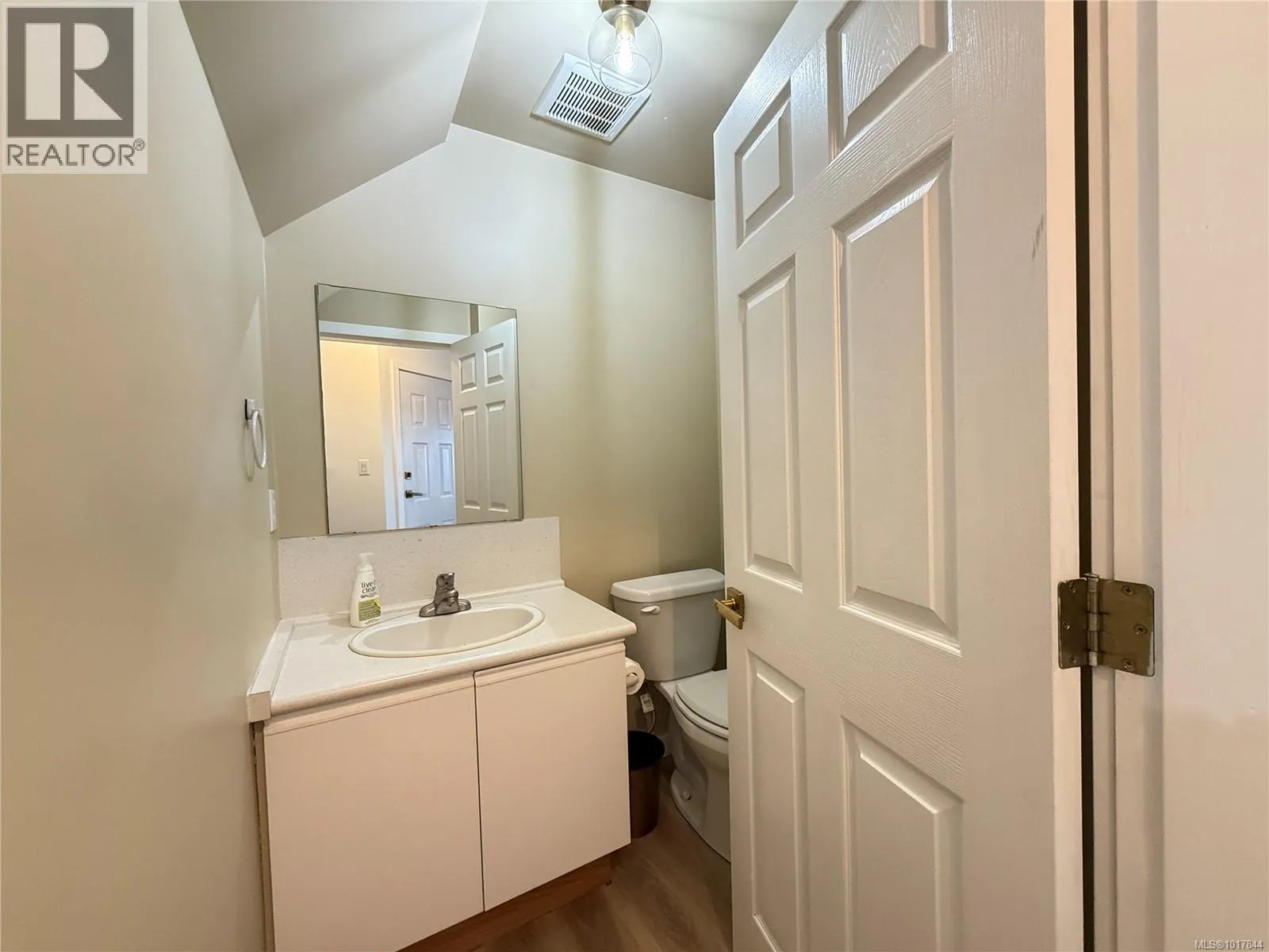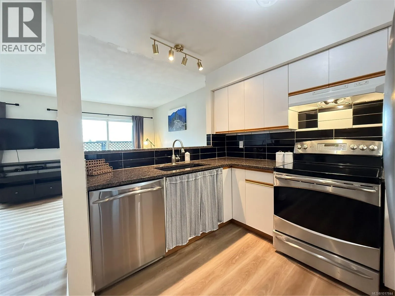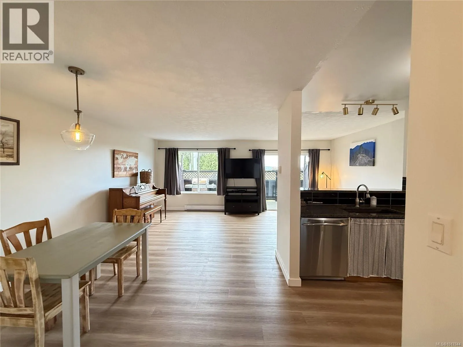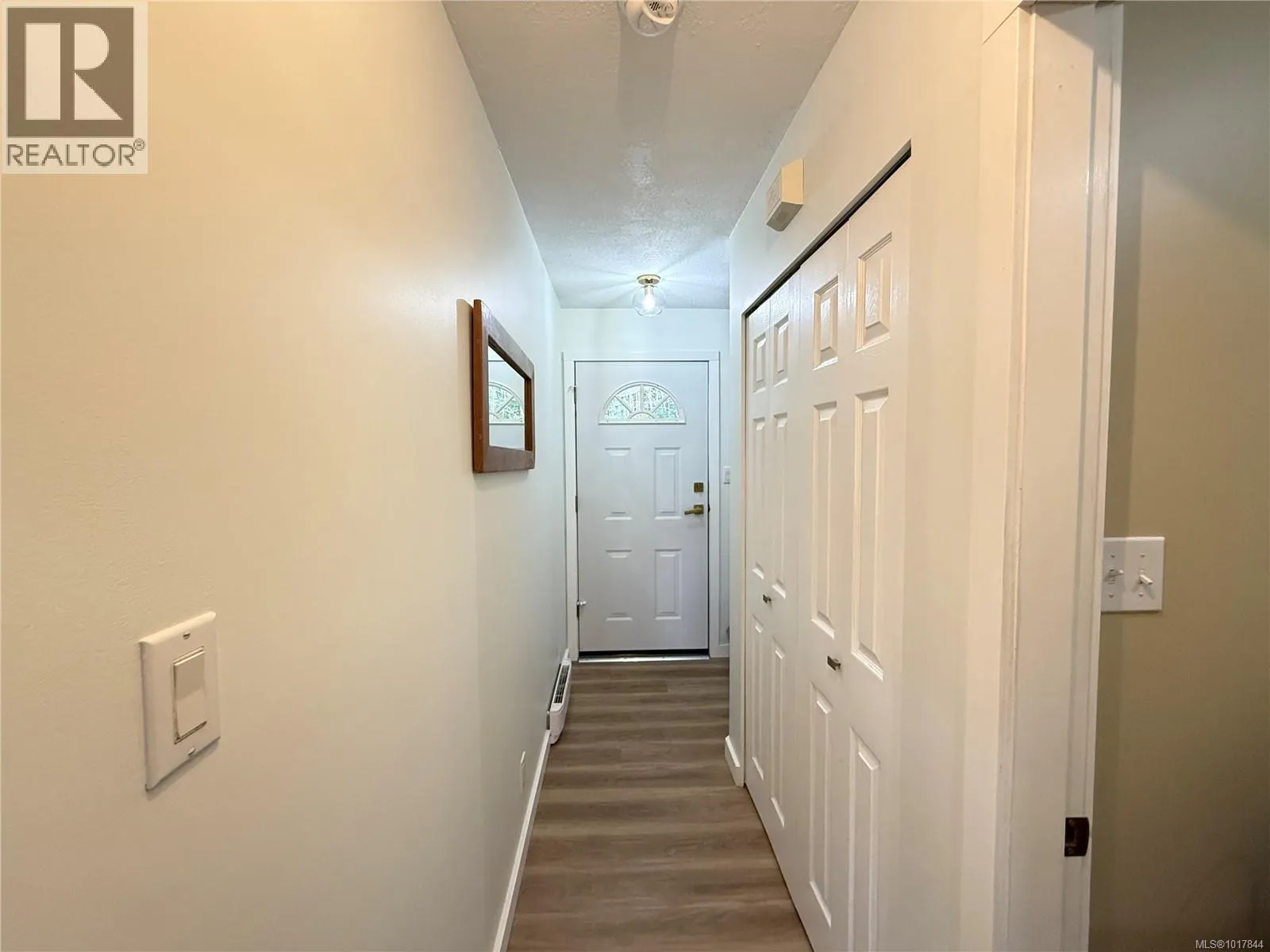 This bright corner-unit townhouse offers 3 bedrooms, 1.5 baths, and an open floor plan that makes the most of its natural light and mountain views. Enjoy a peak of the ocean from 2 of the bedrooms upstairs. Recent updates include new flooring throughout the main level, upstairs bathroom, and laundry area, along with a fresh paint job that gives the home a modern, move-in-ready feel. The kitchen has updated granite countertops as well as tiled backsplash and updated appliances. The fenced-in patio provides a private outdoor space for relaxing or entertaining, while the attached garage and extra storage room with built-in shelving add everyday convenience. With a low strata fee and excellent value, this home is ideal for first-time buyers or those looking to downsize. A rare opportunity to enjoy comfort and practicality all in one thoughtfully maintained property. (id:27476)