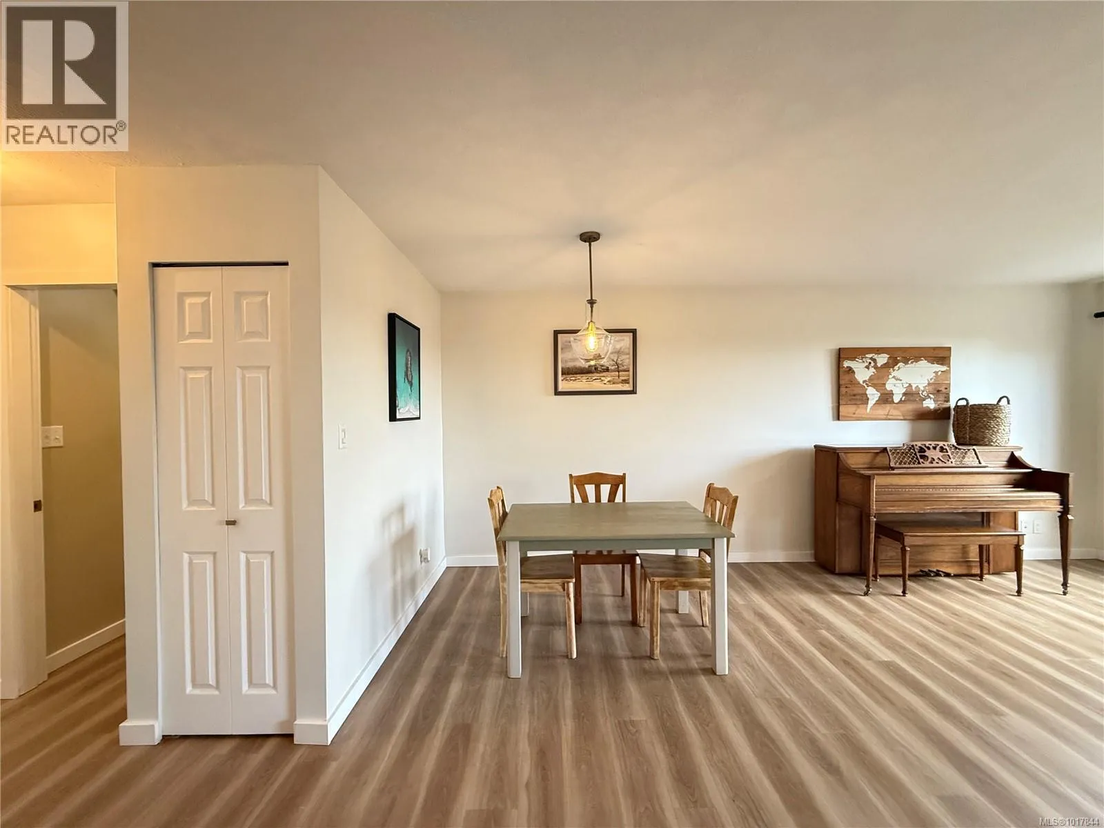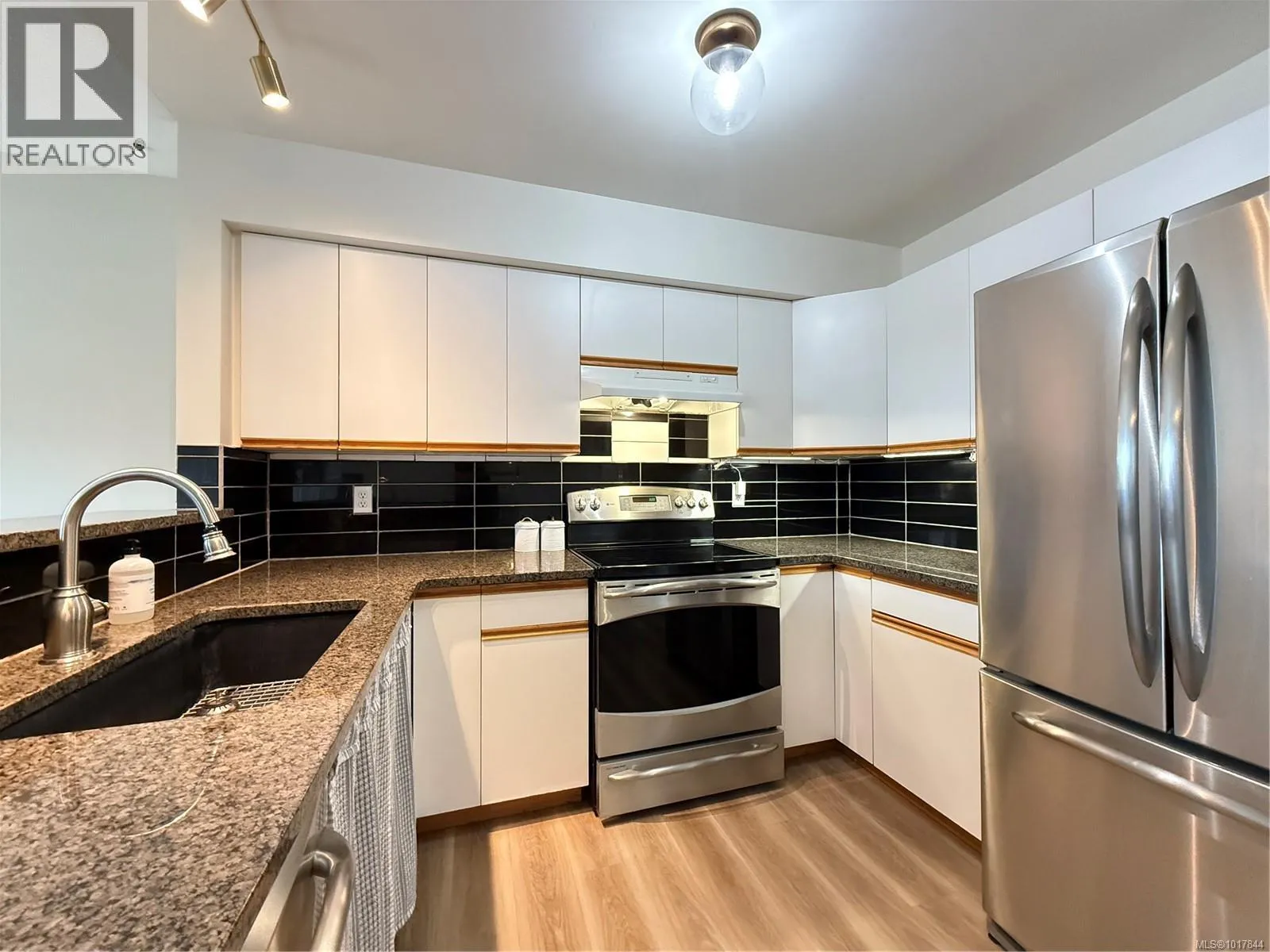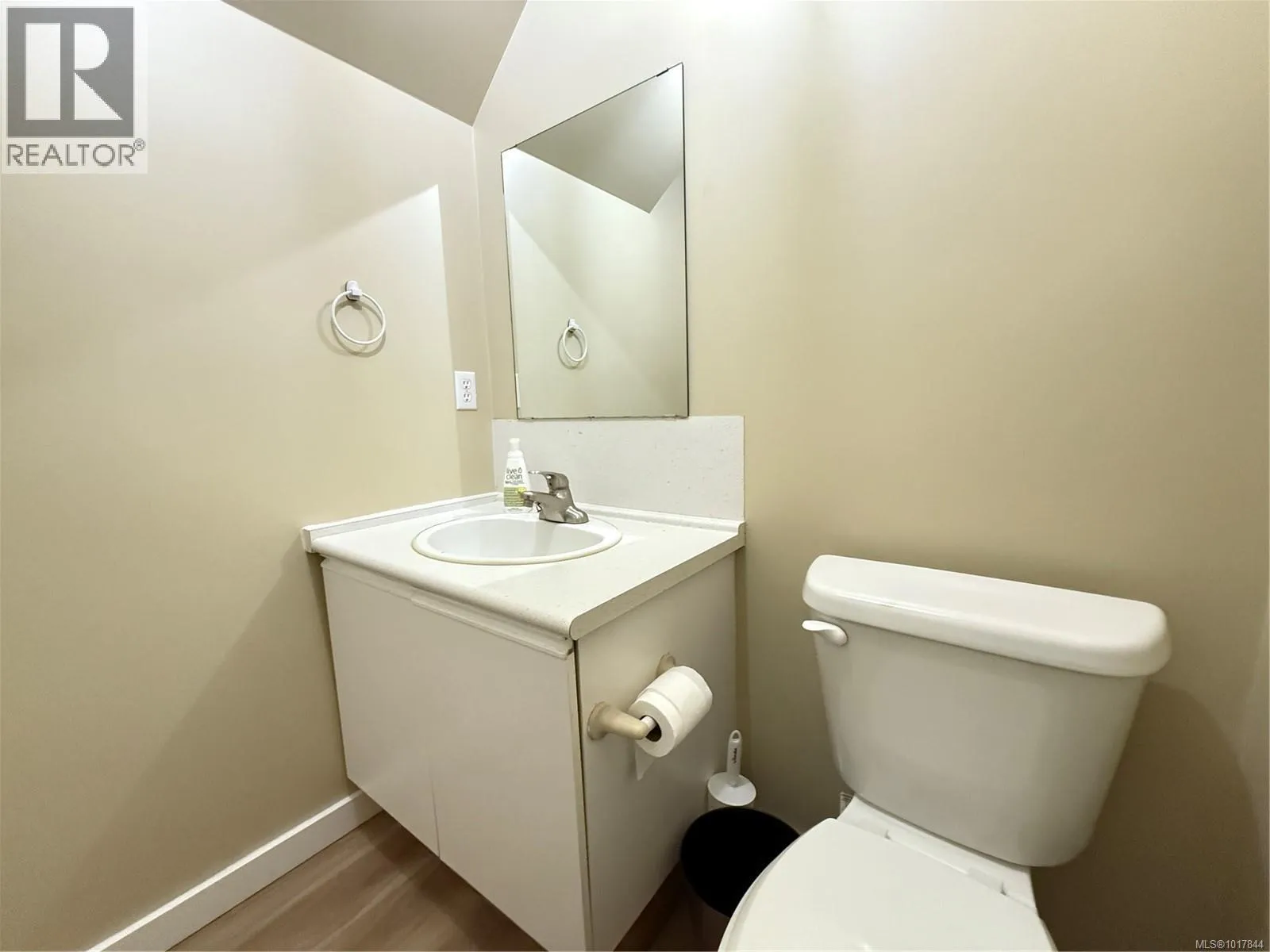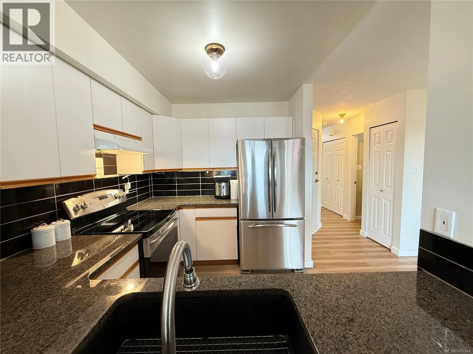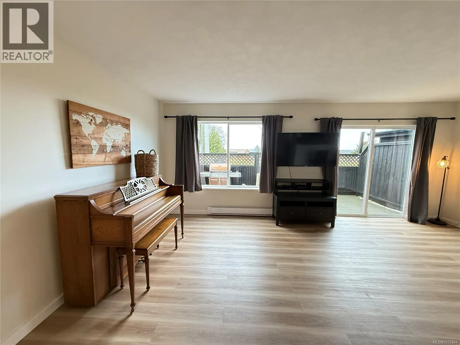 This bright corner-unit townhouse offers 3 bedrooms, 1.5 baths, and an open floor plan that makes the most of its natural light and mountain views. Enjoy a peak of the ocean from 2 of the bedrooms upstairs. Recent updates include new flooring throughout the main level, upstairs bathroom, and laundry area, along with a fresh paint job that gives the home a modern, move-in-ready feel. The kitchen has updated granite countertops as well as tiled backsplash and updated appliances. The fenced-in patio provides a private outdoor space for relaxing or entertaining, while the attached garage and extra storage room with built-in shelving add everyday convenience. With a low strata fee and excellent value, this home is ideal for first-time buyers or those looking to downsize. A rare opportunity to enjoy comfort and practicality all in one thoughtfully maintained property. (id:27476)