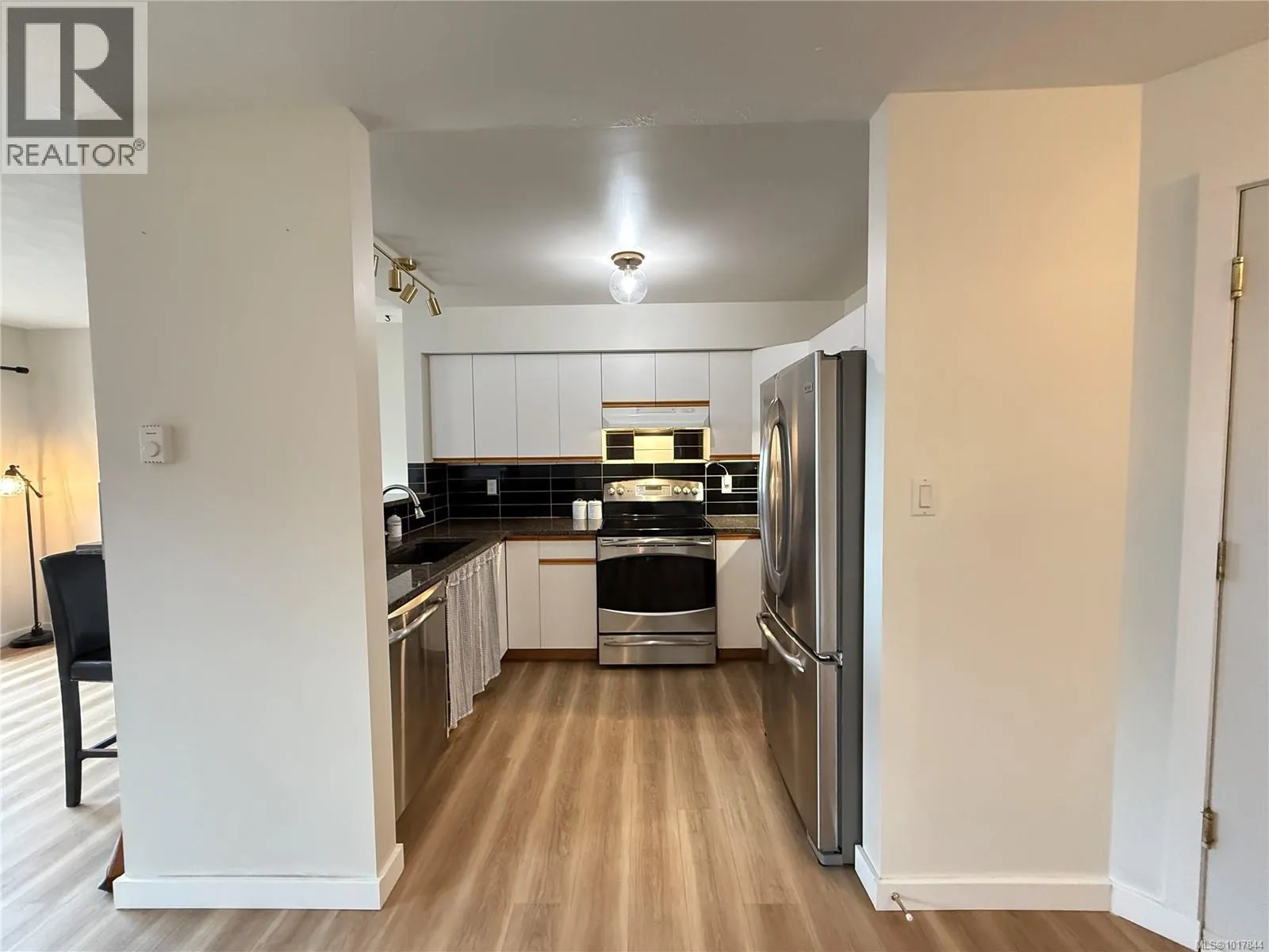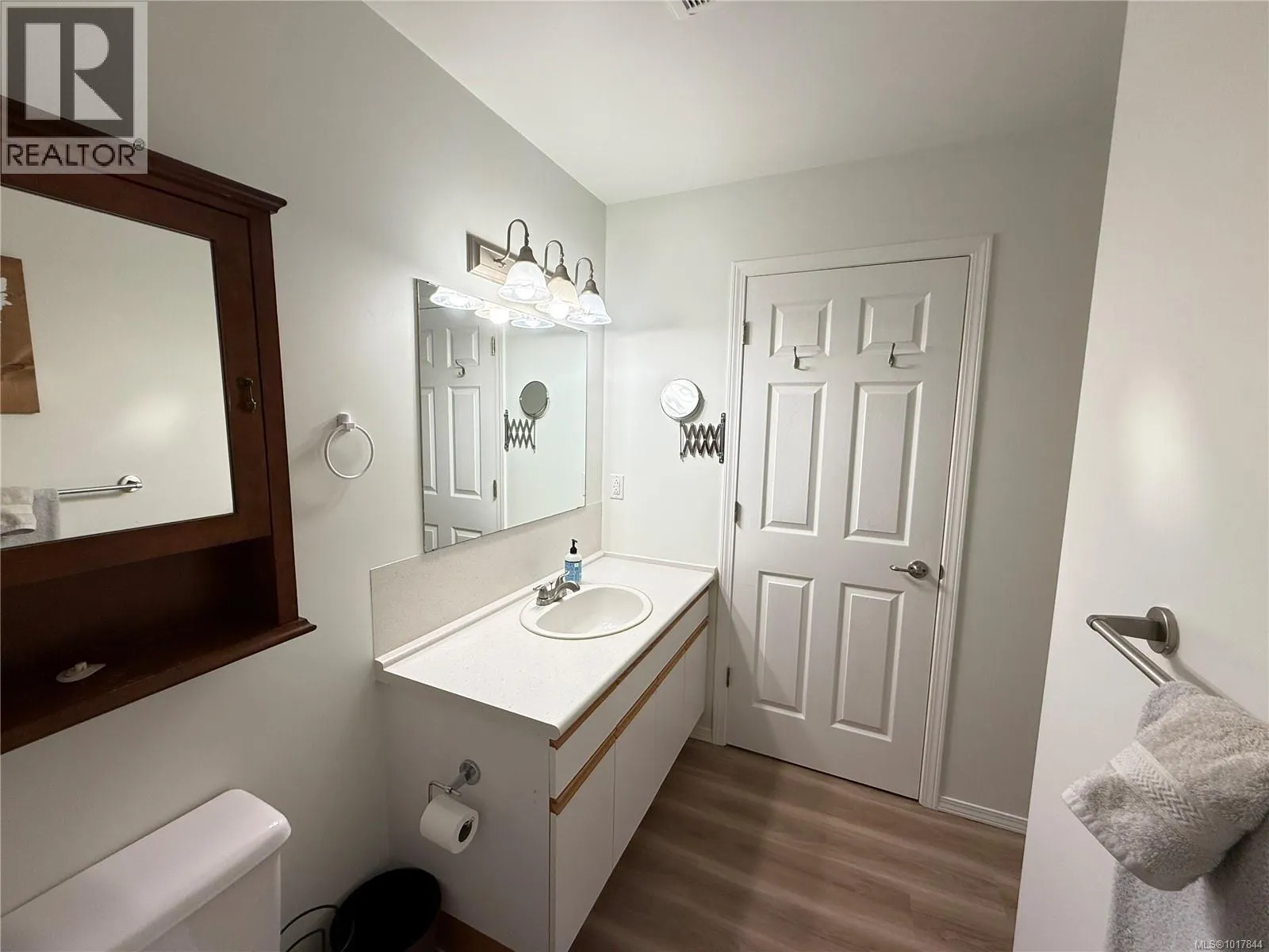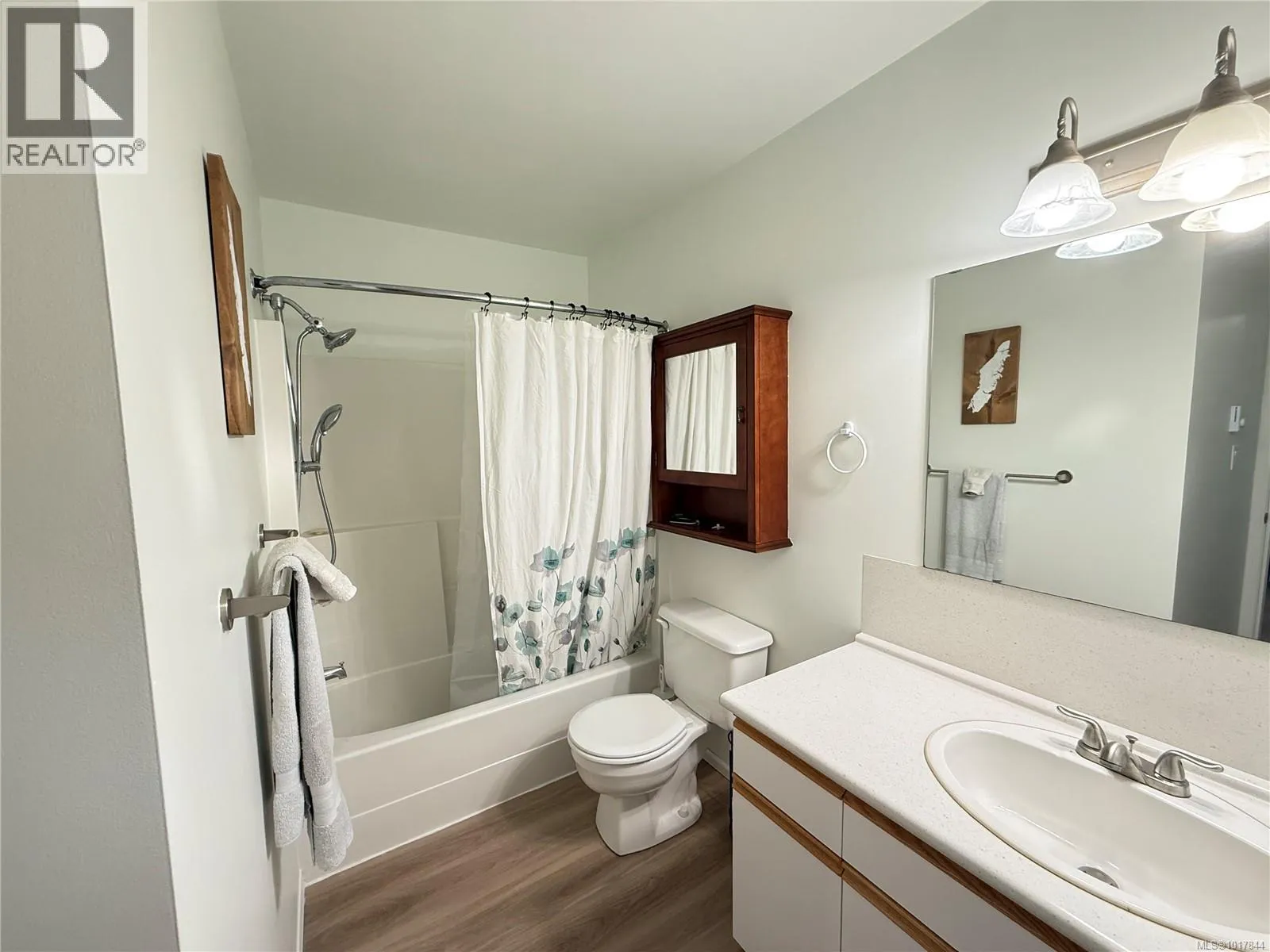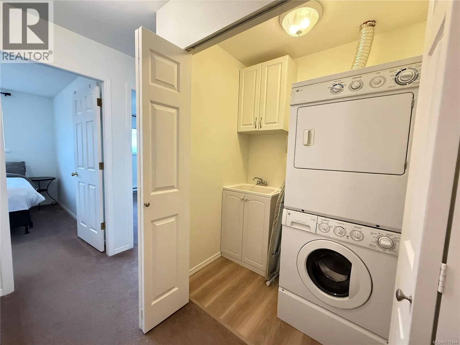 This bright corner-unit townhouse offers 3 bedrooms, 1.5 baths, and an open floor plan that makes the most of its natural light and mountain views. Enjoy a peak of the ocean from 2 of the bedrooms upstairs. Recent updates include new flooring throughout the main level, upstairs bathroom, and laundry area, along with a fresh paint job that gives the home a modern, move-in-ready feel. The kitchen has updated granite countertops as well as tiled backsplash and updated appliances. The fenced-in patio provides a private outdoor space for relaxing or entertaining, while the attached garage and extra storage room with built-in shelving add everyday convenience. With a low strata fee and excellent value, this home is ideal for first-time buyers or those looking to downsize. A rare opportunity to enjoy comfort and practicality all in one thoughtfully maintained property. (id:27476)