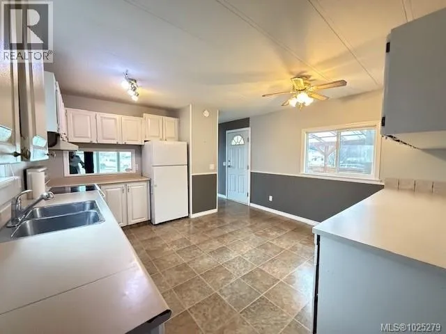 Delightful 2 bedroom one bathroom mobile home in Port McNeill. Fabulous location at the end of Betts/Chelan/Patterson. Back yard is fully fenced, complete with wired workshop, wood stove area and greenhouse(formerly a playhouse), Lovely covered deck off kitchen. Good size mud room at the main entrance - perfect for storage or kids toys. Above average size bedrooms. Living room has certified (2026) wood stove. Kitchen has plenty of cupboards and counter space. If your looking at downsizing or starting out then this could be the one. Call your Realtor to view. (id:27476)