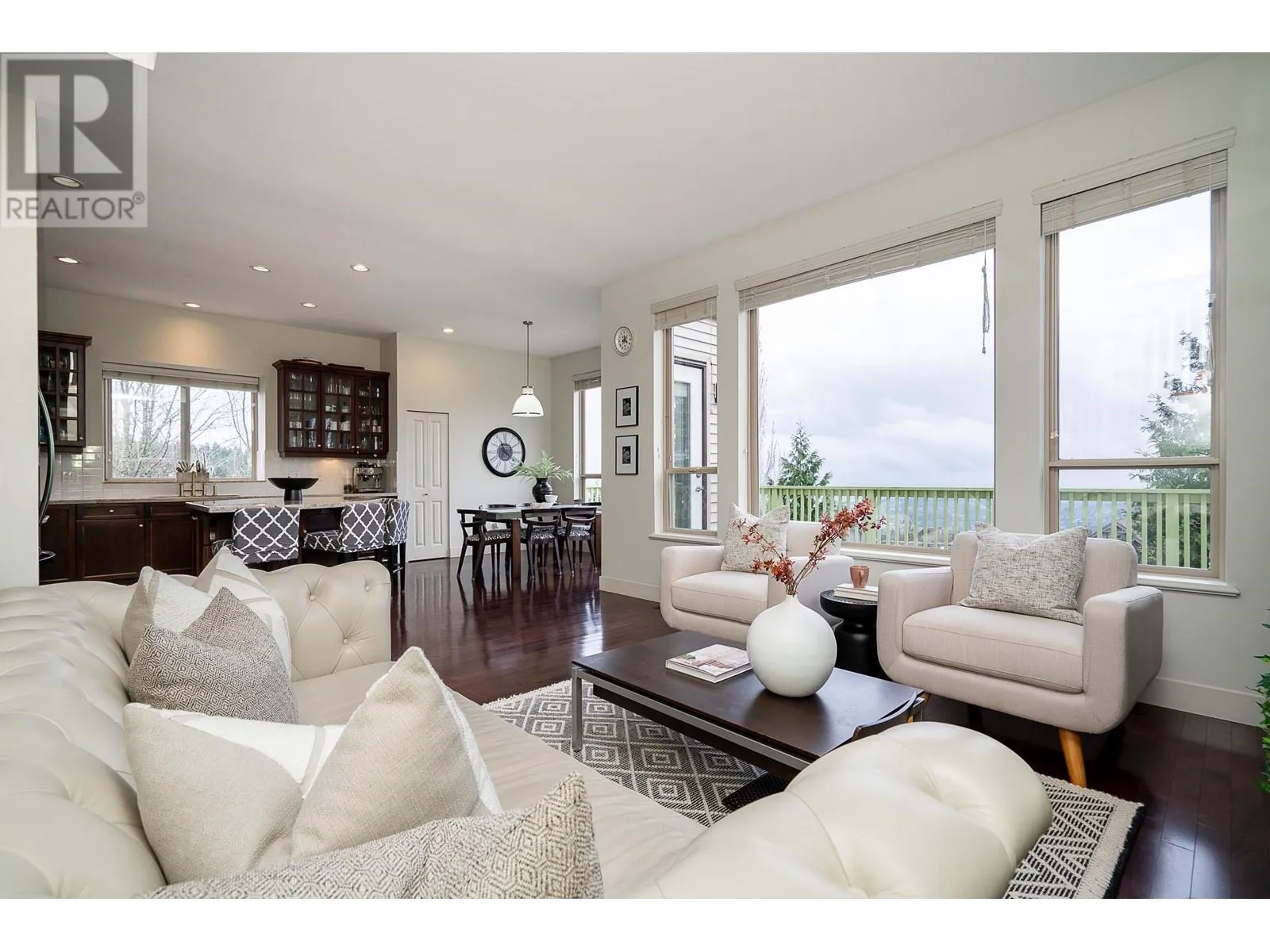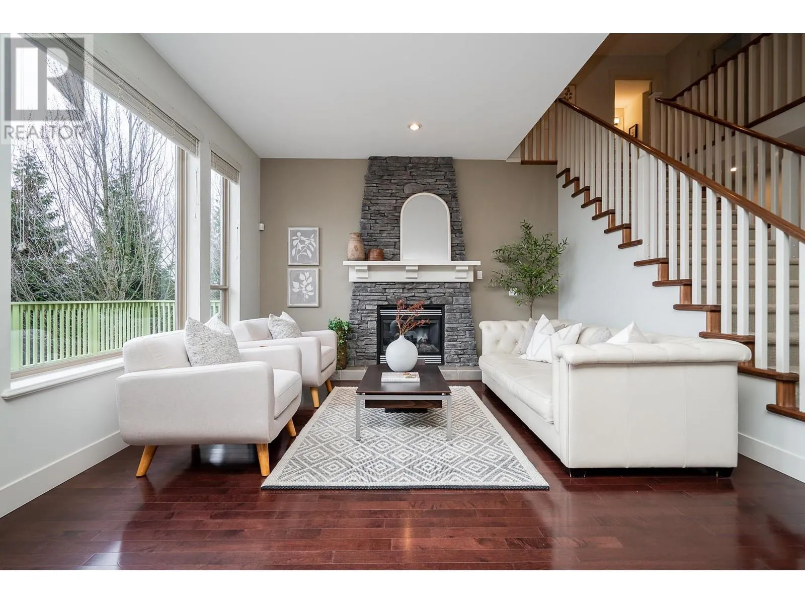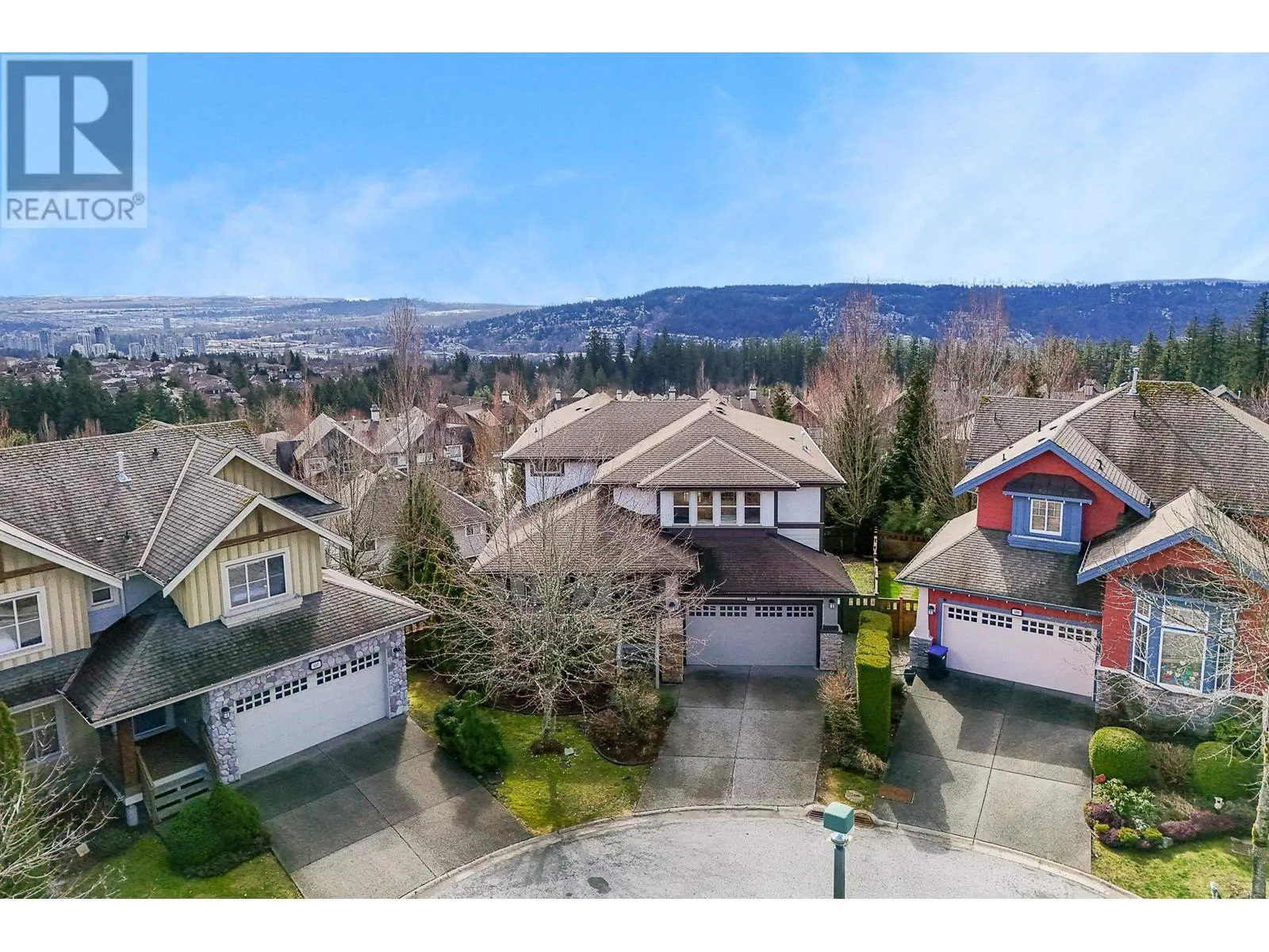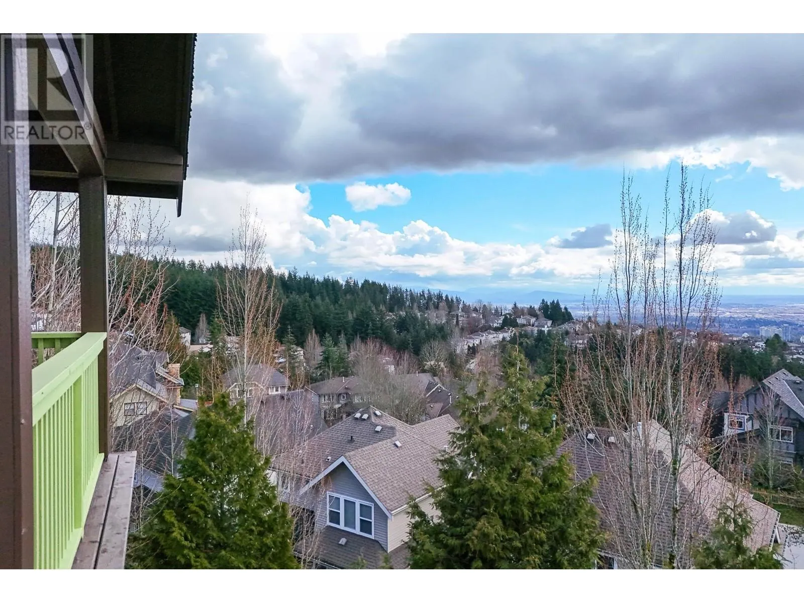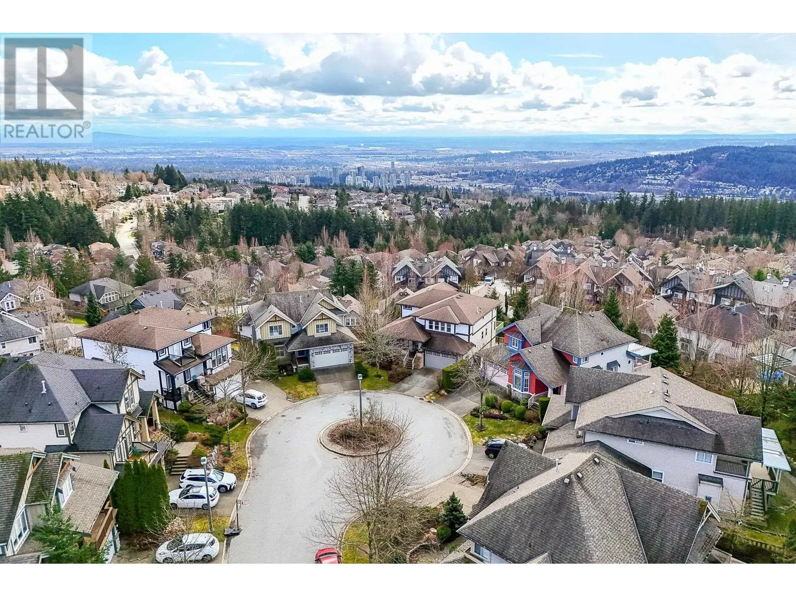 Welcome to the top of Port Moody´s prestigious Heritage Woods neighbourhood, with unparalleled VIEWS and one of the largest lots on the cul-de-sac. This 4,100+ sq/ft original-owner home offers 6 bdrms + den and 3.5 bath - perfect for a growing family. Open concept layout on the main with 10´ ceilings, hardwood floor and a gourmet kitchen with large island + SS appliances. Spacious office could double as a main floor bdrm. Direct access from kitchen leads to the expansive deck with breathtaking views, ideal for entertaining. Large primary up with spa-inspired ensuite and vaulted ceiling, plus 3 additional bdrms. Fully finished basement with separate entry and covered deck, plus 2 more bdrms. A/C, new furnace + new hot water tank. Situated in one of the most sought-after school catchments. (id:27476)