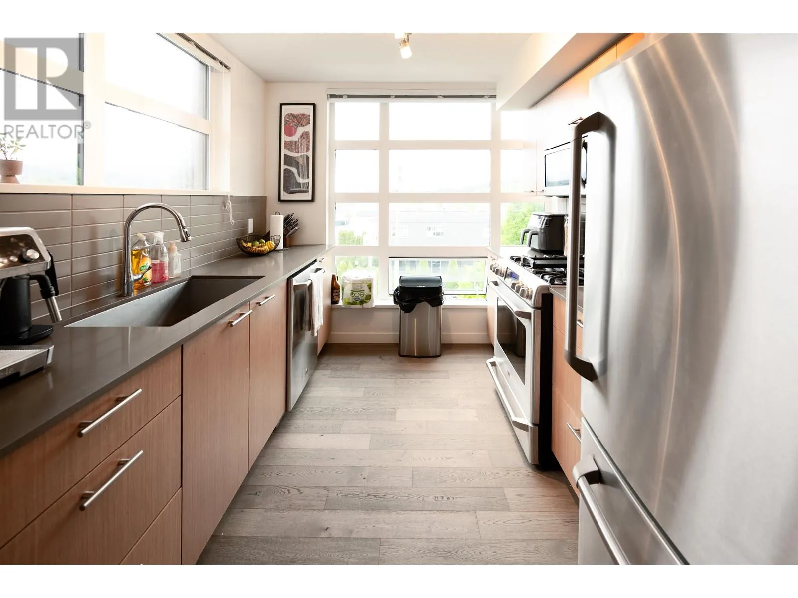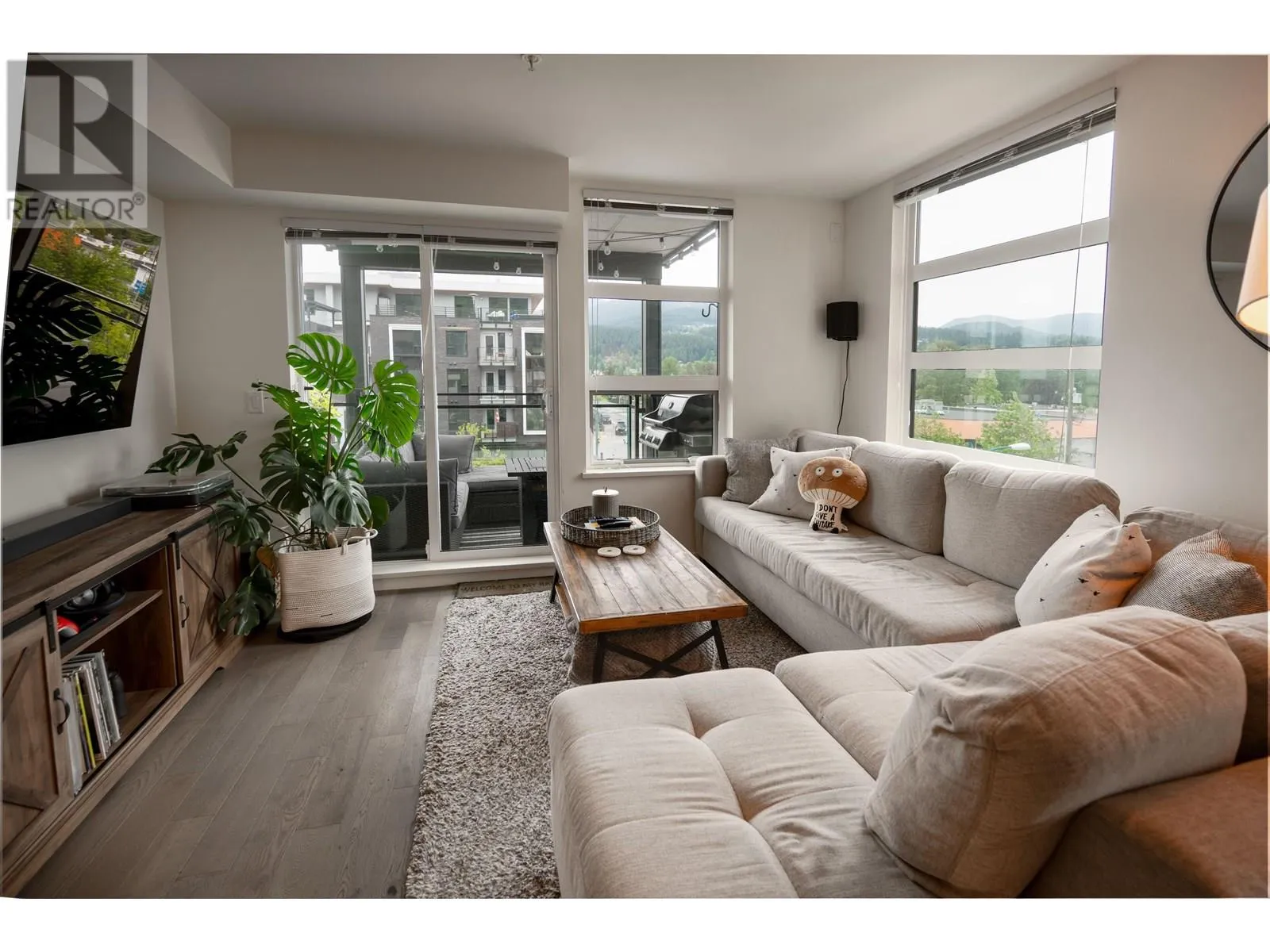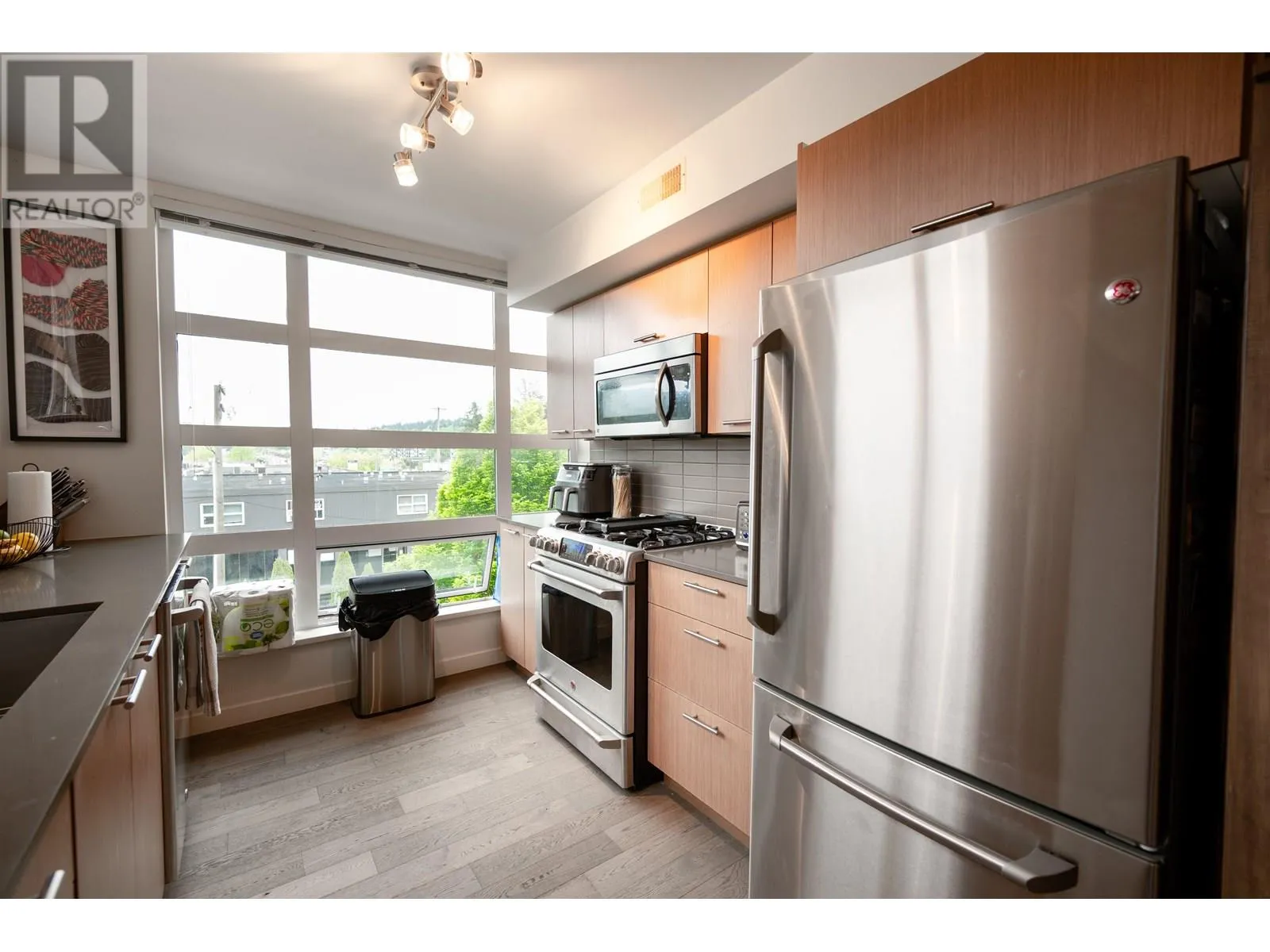 This 2-bedroom, 2-bath home at The Station offers 830 sqft of modern living in the heart of Port Moody. Enjoy mountain and Burrard Inlet views from your private balcony and natural light. Minutes walk to the West Coast Express and Evergreen Line SkyTrain, and steps from Rocky Point Park, local breweries, restaurants, cafes, trails, and top-rated schools-this location is second to none. The unit features quartz countertops, engineered hardwood floors, GE Cafe series appliances, a gas stove, and efficient geothermal heating & cooling included in the strata fees. Building amenities include a gym, visitor parking, common patio, and secure underground parking. Comes with 2 parking spots and 1 storage locker. (id:27476)