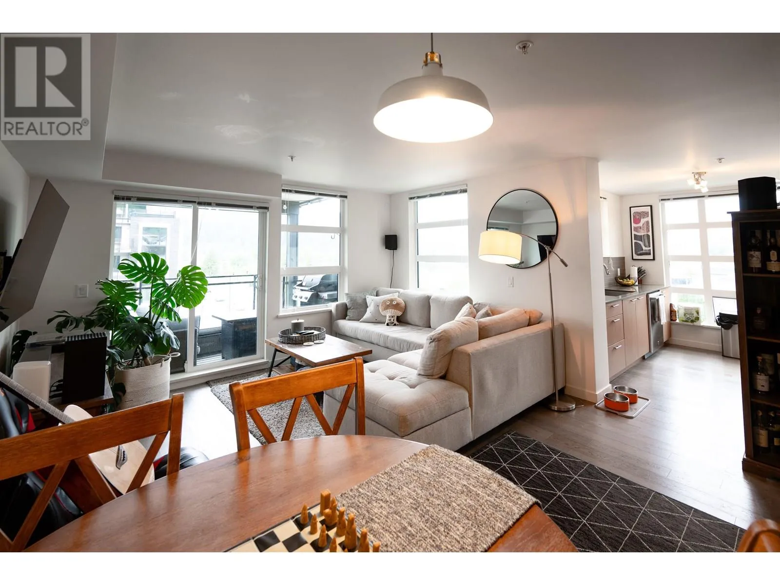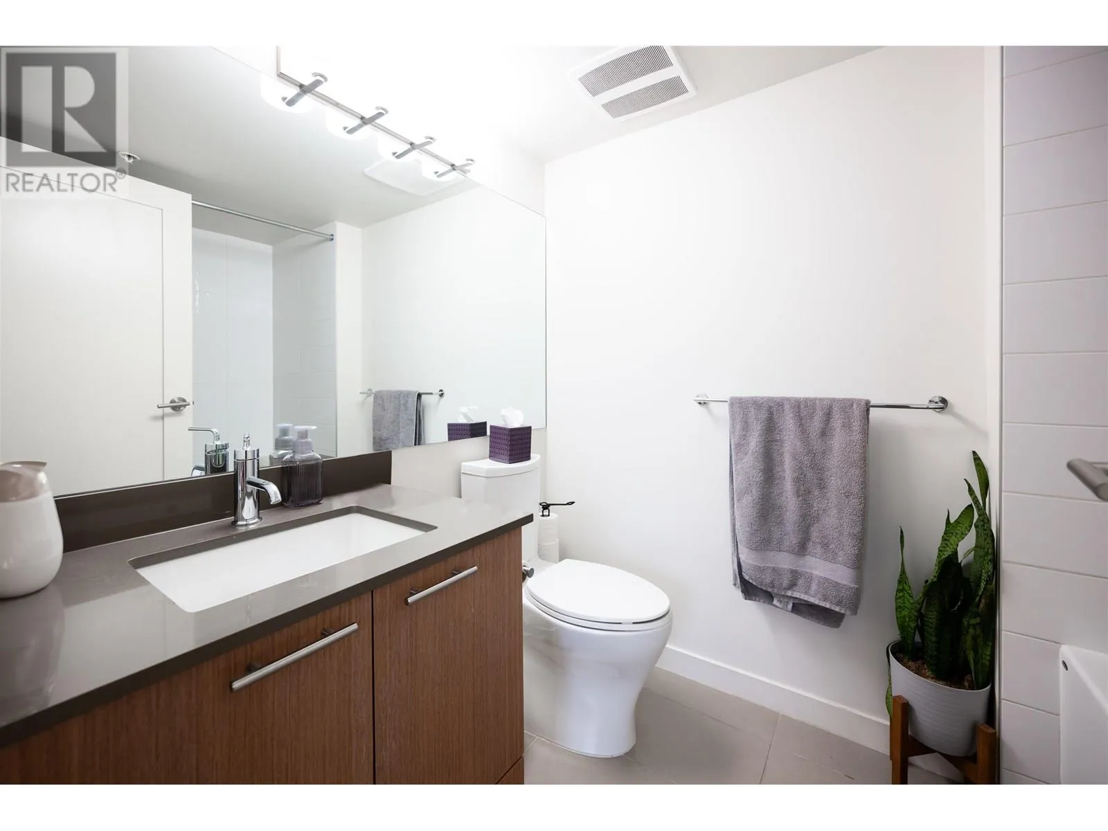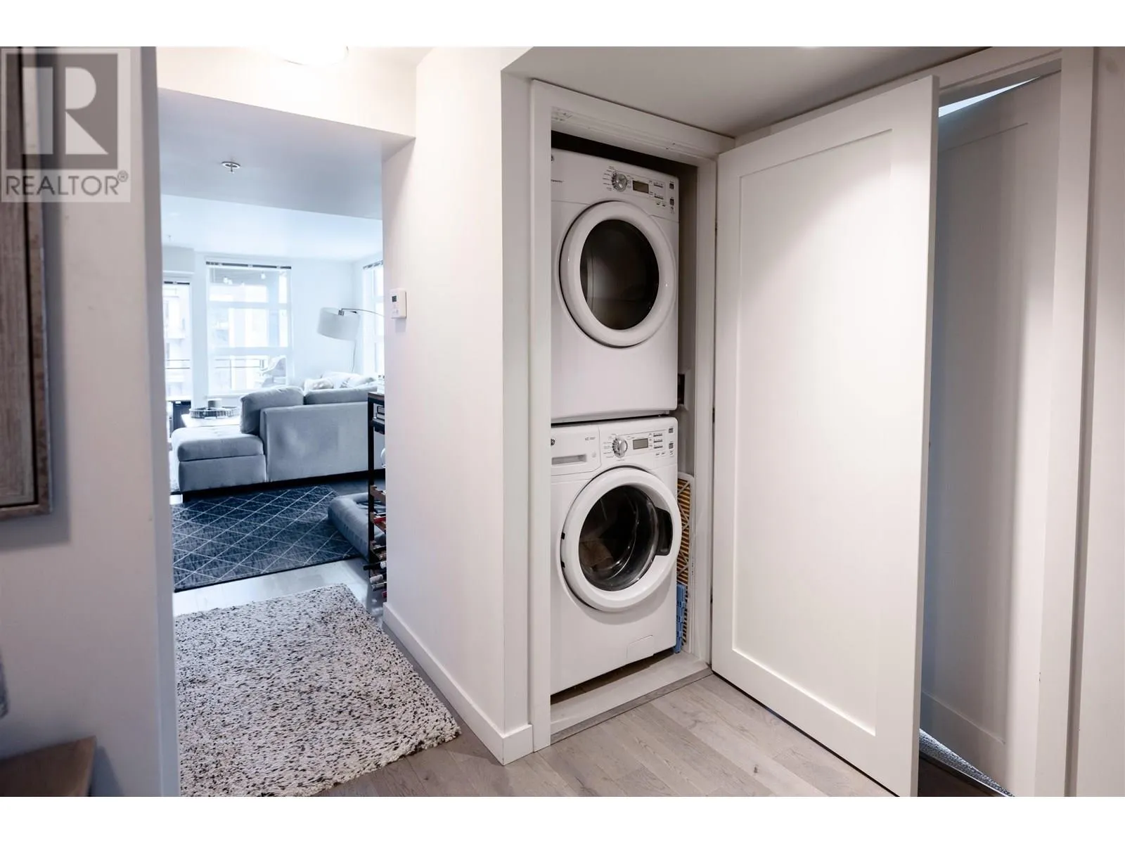 This 2-bedroom, 2-bath home at The Station offers 830 sqft of modern living in the heart of Port Moody. Enjoy mountain and Burrard Inlet views from your private balcony and natural light. Minutes walk to the West Coast Express and Evergreen Line SkyTrain, and steps from Rocky Point Park, local breweries, restaurants, cafes, trails, and top-rated schools-this location is second to none. The unit features quartz countertops, engineered hardwood floors, GE Cafe series appliances, a gas stove, and efficient geothermal heating & cooling included in the strata fees. Building amenities include a gym, visitor parking, common patio, and secure underground parking. Comes with 2 parking spots and 1 storage locker. (id:27476)