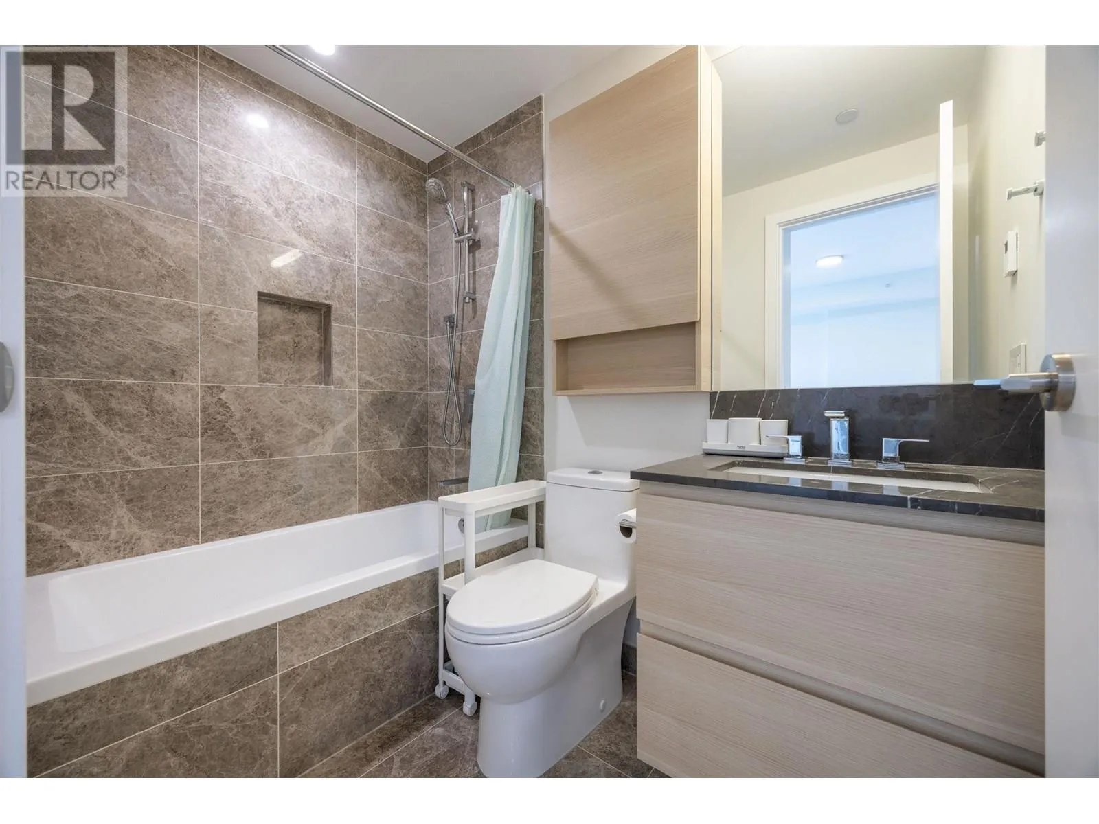The Grande by ONNI: Premier Value in Port Moody Centre the Super Brook Village. Discover this bright, spacious 593sf 1-bedroom South facing suite offering breathtaking mountain and city view. Highlights include 9' ceilings, an open kitchen ideal for entertaining, heated bathroom flooring, and an efficient heat pump A/C for year-round climate control. 1 parking & 1 big locker. Amenities you'll love: outdoor pool, hot tub, full size gym, golf simulator, children's play room & outdoor playground, Guest suites for visitors, and a spectacular rooftop patio. Unbeatable location: 6min walking to Inlet Skytrain station, close to big Thriffy Foods groceries market, restaurants, trails, Rocky Point Park, library, and City Hall. Gleneagle and Dr. Charles Best Secondary. (id:27476)