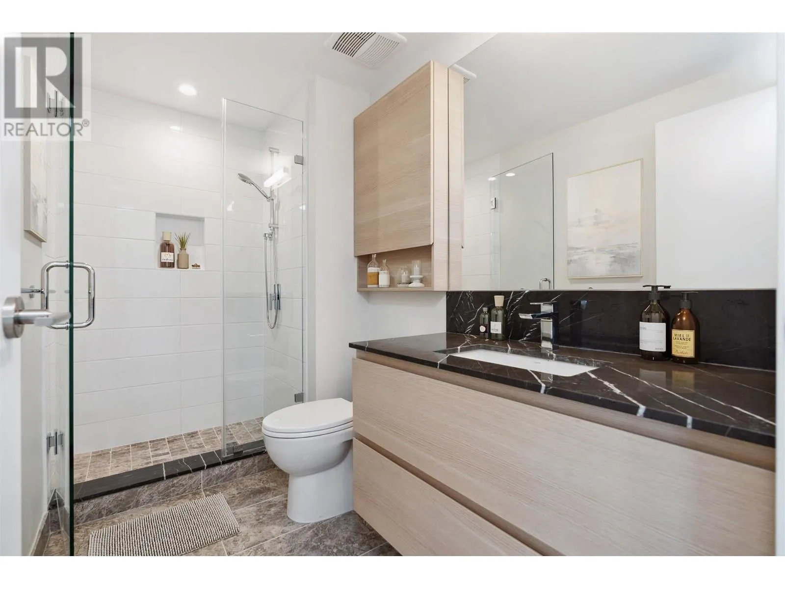 Welcome to the Grande!! With over 40,000 square feet of entertaining and rejuvenating amenities staying close-to-home will be more appealing than ever. This 1765sq-ft three bedroom feature a 1030sq-ft rooftop patio with an unobstructed view. This spacious master bedroom includes a luxurious ensuite feature a walk-in closet, NuHeat floor heating, a frameless glass and a deep soak tub. The kitchen is a chefs dream; outfitted with a fully integrated European appliances, marble topped breakfast bar with a separate space for dining. Stay cool all summer long, thanks to the integrated cooling system keeping things comfortable all year around. Build by award-winning Onni Group . Steps away from inlet sky train station. Restaurants, breweries, shops and schools (id:27476)