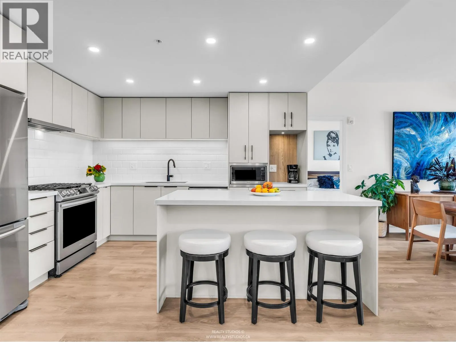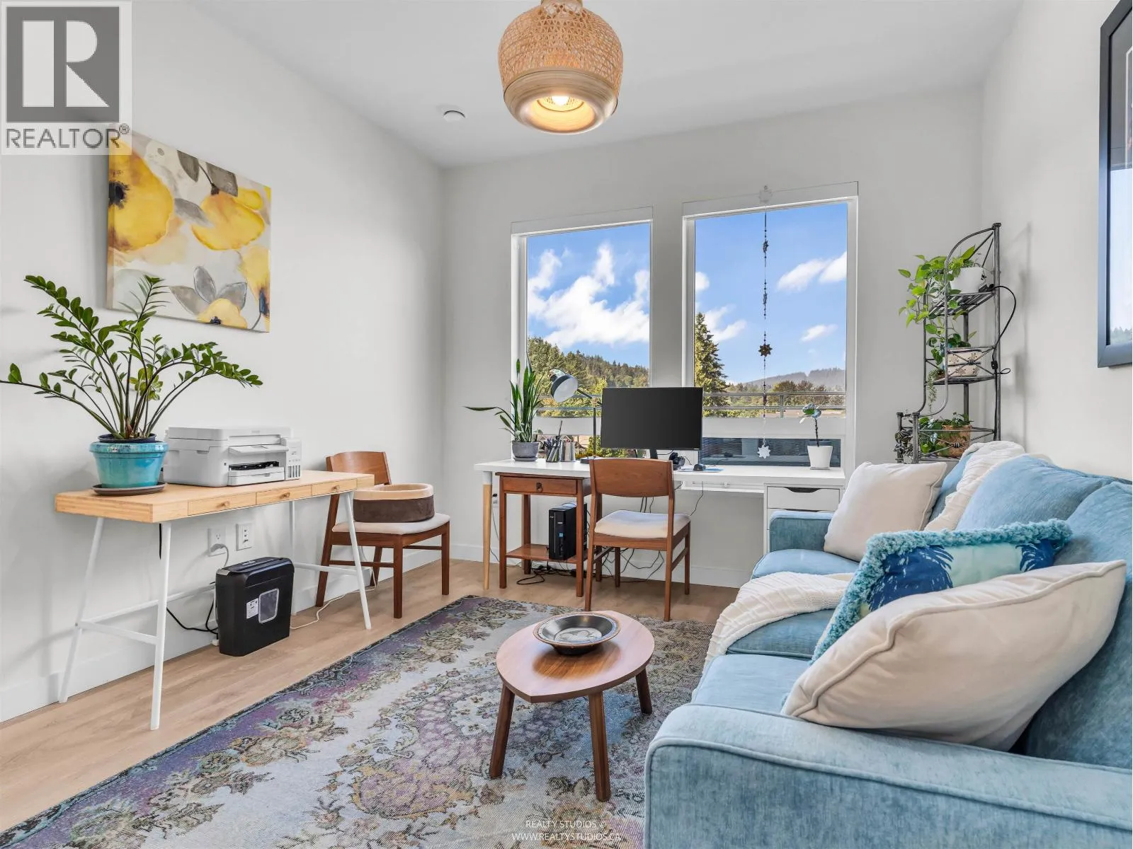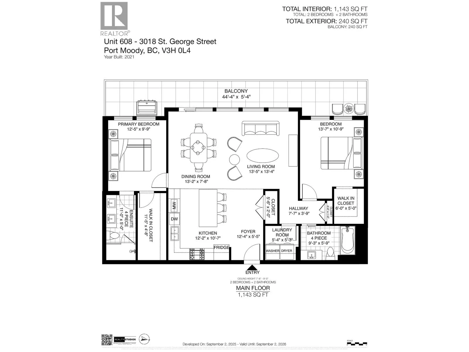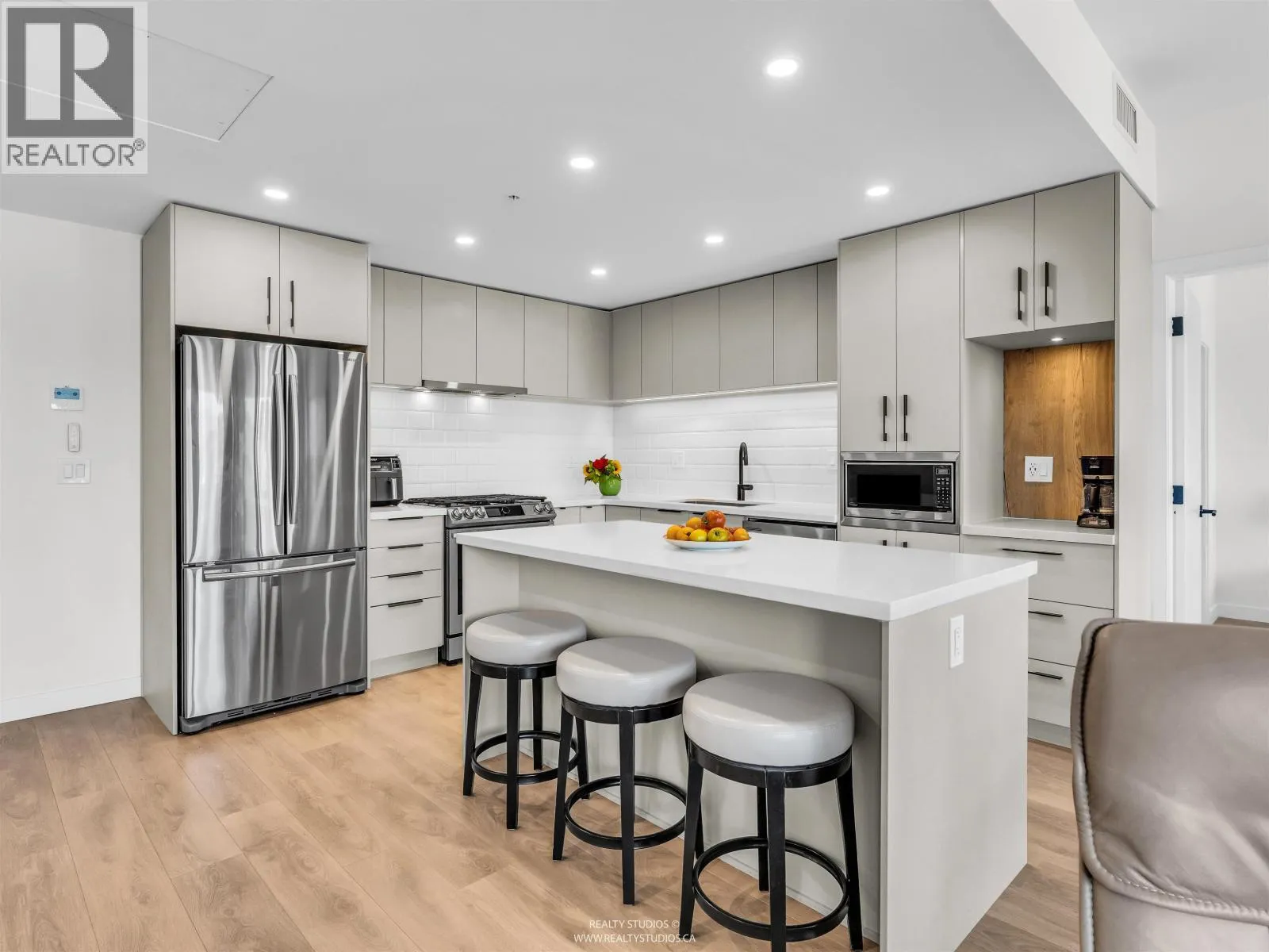 Spacious 2 bed, 2 bath penthouse condo in the George by Marcon in Port Moody. Enjoy the spectacular sunsets and Mountain views ( partial ocean views) from the large balcony. Open floorplan with high ceilings and great light! Air conditioned. Full sized stainless steel appliances including a gas stove. Tons of storage! Motorized roller blinds throughout. Blond oak laminate flooring. Both bedrooms are large enough for a king sized bed and have spacious walk in closets. Primary bedroom is ensuite with radiant in-floor heating and double vanities. Laundry room has side by side washer and dryer. Two parking stalls and a large private storage room. Located just 5 minutes away from both Moody Centre SkyTrain Station and the West Coast Express. Balance of new home warranty. Pet friendly building. Open House Saturday and Sunday Oct 4+5 2PM-4PM (id:27476)