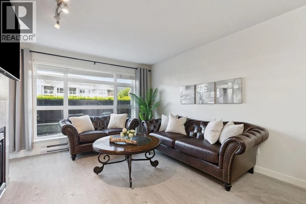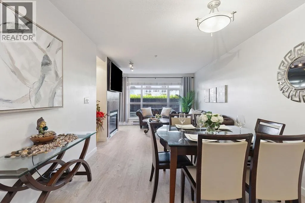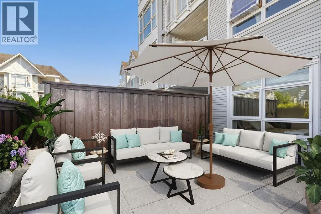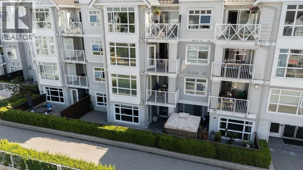 Welcome to Sonrisa in the heart of beautiful Port Moody where city meets nature! This bright and spacious ground level 2 bed 2 bath home offers a functional layout with almost 900sf of living space, cozy gas fireplace, open concept kitchen, spacious master bedroom with a walk in closet, massive 400+sf patio perfect for entertaining and BBQ. Sonrisa offers incredible amenities including a large indoor pool, hot tub, sauna, gym, kids playroom, courtyard garden, car wash and EV charging station. Walking distance to Rocky Point, Brewer´s Row, Suter Brook Village, rec center, and 1 block away from the West Coast Express and Skytrain. Pets and rental friendly! Facing quiet side of the building. This one is a must see! (id:27476)
