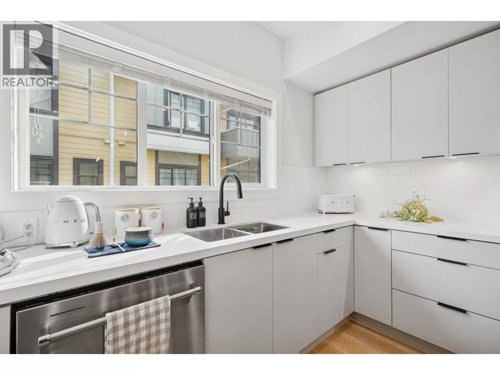 Rarely available heritage-style townhome at Sophia Living! Bright and spacious 2 bed + flex, 2.5 bath home featuring large windows, quartz countertops, stainless steel appliances, and a generous breakfast island. Enjoy water and mountain views from the balcony and north-facing bedroom. The flex space is perfect for a home office. Additional features include 9' ceilings, premium lighting, laminate flooring, two EV-ready parking stalls, a bike locker, and a storage locker. Ideally located in the heart of Port Moody Centre, steps from Rocky Point Park, Brewer´s Row, and local favorites like Gabi & Jules, Original´s Mexican, and Osteria Povera, with easy access to Moody Centre Station (SkyTrain & West Coast Express). A great blend of style, comfort, and walkability.**OPEN HOUSE: NOV.16, 12-2PM (id:27476)