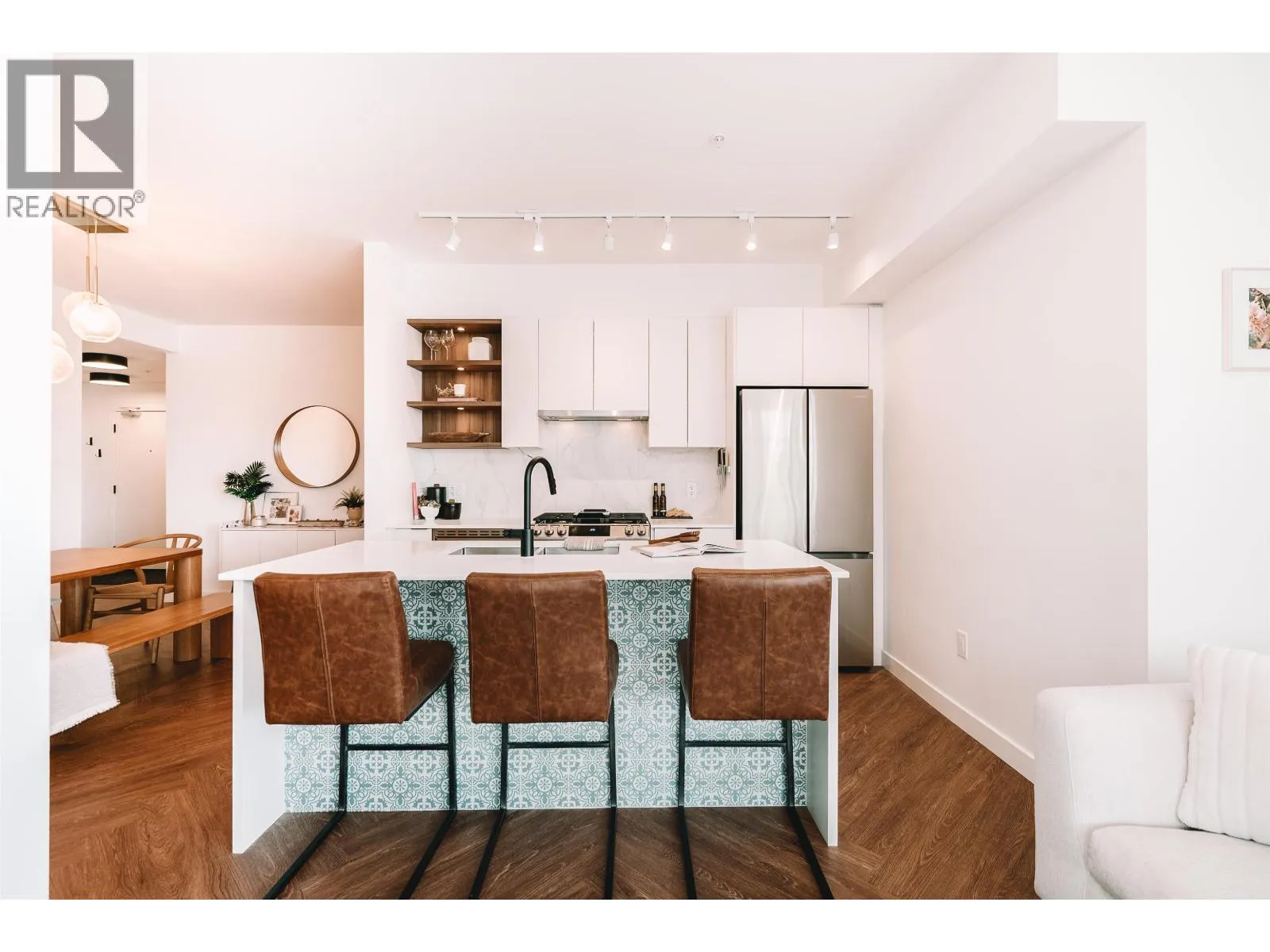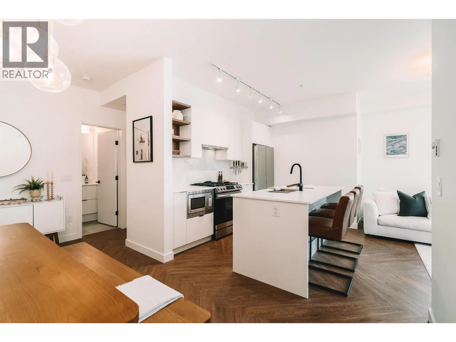 Welcome to Clyde, a stylish retreat in the lively center of Port Moody where modern comfort meets timeless design. This corner 3-bed, 2-bath home delivers a spacious, open layout that blends functionality with everyday elegance. Expansive windows bathe each room in natural light while showcasing breathtaking mountain views that create a stunning backdrop from morning to night. The contemporary kitchen features stainless steel appliances, a gas range, sleek quartz countertops, & tile backsplash, crafted for both beauty & convenience. Step onto the large covered wrap around balcony to soak in sweeping vistas or unwind outdoors. With shops, transit & the scenic waterfront just a short stroll away, a highly walkable lifestyle surrounded by trails, parks & endless Fun in Port Moody. (id:27476)