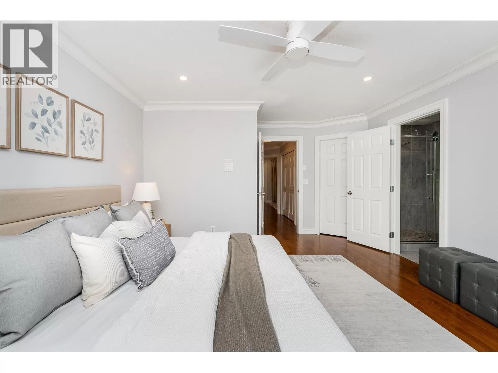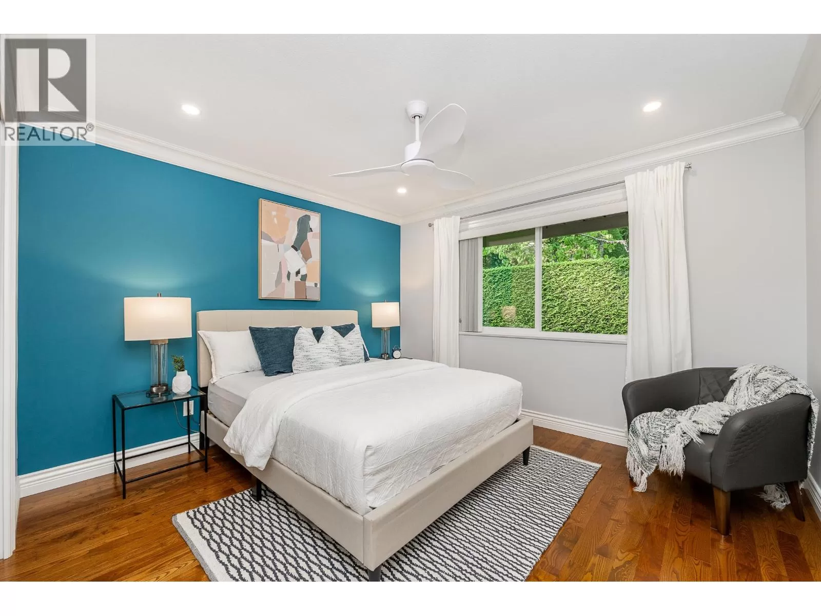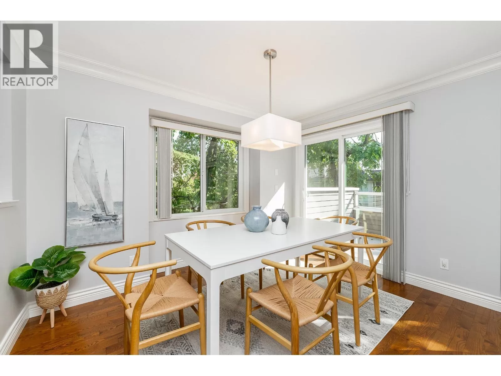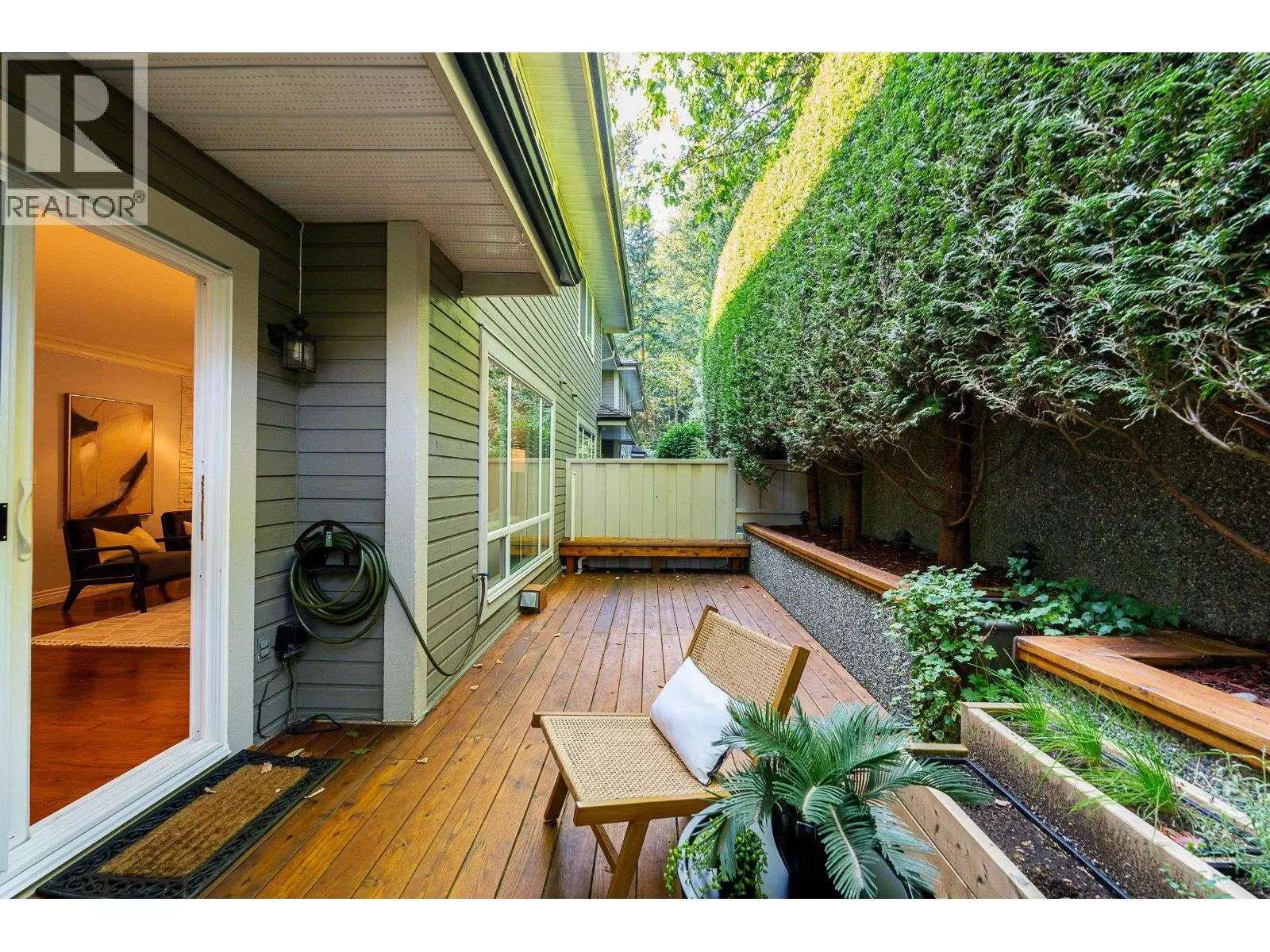 Beautiful END-unit townhome with AIR CONDITIONING! This 2,471 square ft home offers a spacious, family-friendly layout in a private setting, with 3 beds + 3 renovated baths. The main features a bright kitchen w/granite counters, S/S appliances, gas cooktop and new fridge, seamlessly connected to the family room and eating area w/access to a sunny, South-facing balcony. Formal living and dining area w/gas FP and updated surround opens to a serene patio spanning the width of the home. Upstairs are 3 generous bedrooms, including a primary with walk-in closet + 4-piece ensuite. The lower level offers a large rec room with window, den, ample storage, and double car garage. New windows + balcony, and rough-in for 4th bath. Located in a sought-after catchment, including Heritage Woods Secondary. (id:27476)