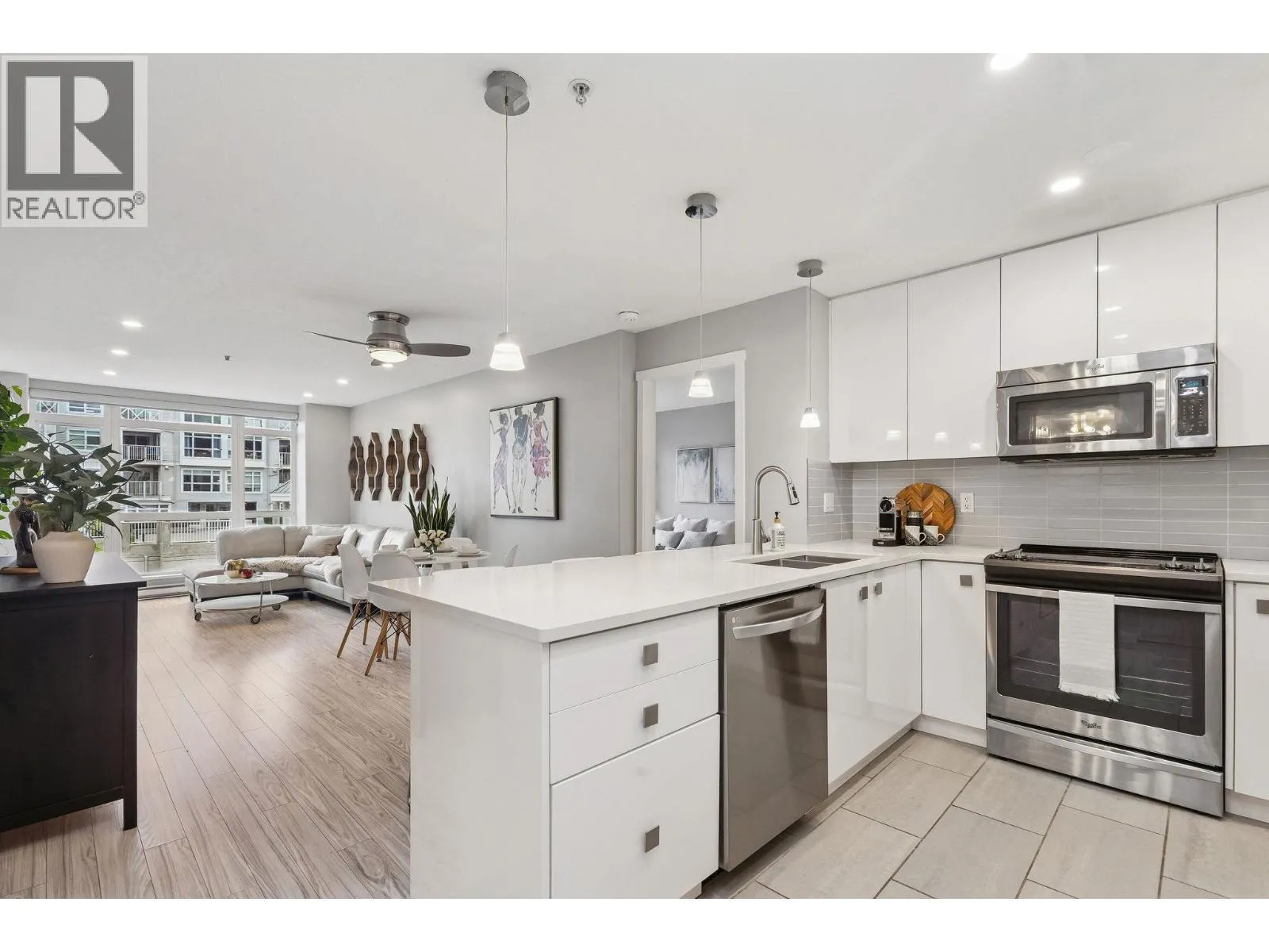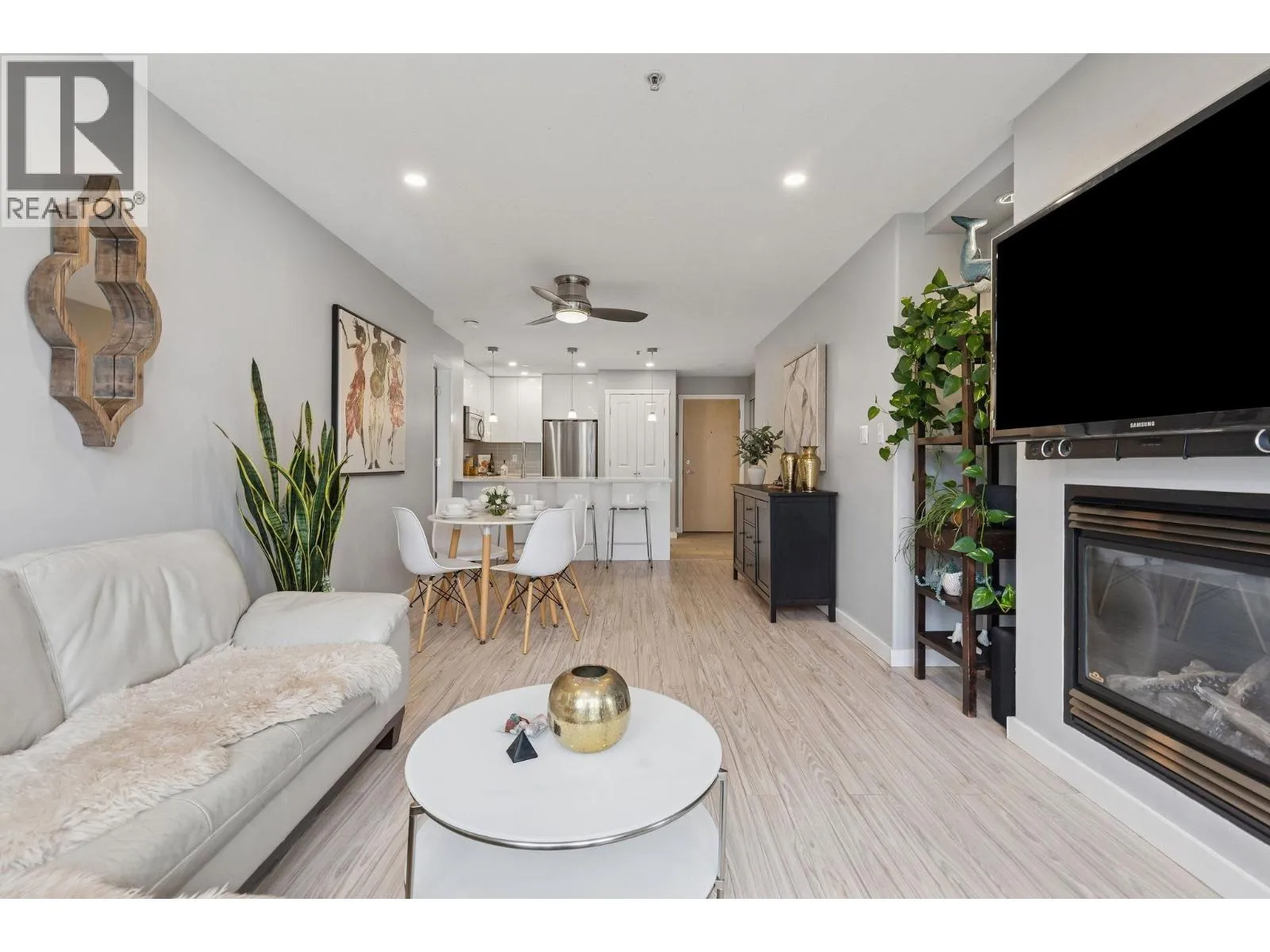 Welcome to Sonrisa in the heart of beautiful Port Moody where city meets nature! This bright and spacious south facing 2 bed 2 bath home offers a functional layout with 944sf of living space, cozy gas fireplace, beautiful open concept kitchen, spacious master bedroom for your king size bed, generous walk in closet, fully covered patio with courtyard view perfect for entertaining. Sonrisa offers incredible amenities including a large indoor heated pool, hot tub, sauna, gym (open 24/7), kids playroom, courtyard garden, car wash and EV charging station. Walking distance to Rocky Point, trails, Brewers Row, Suter Brook Village, rec center, and 1 block away from the West Coast Express and Skytrain. Pets and rental friendly! Comes with 1 parking and 1 large storage locker. This one is a must see (id:27476)