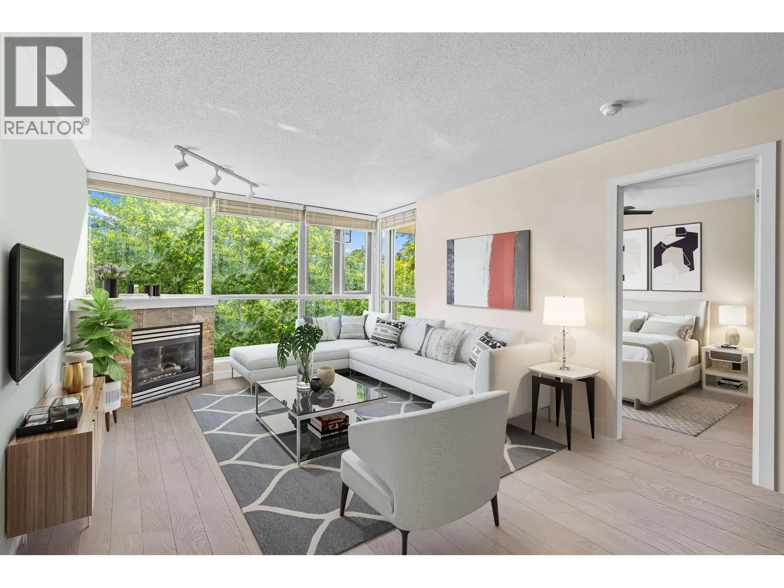 Welcome to The Sinclair, ideally located in the vibrant heart of Port Moody. This updated residence offers nearly 1,000 square feet of open-concept living space, overlooking a serene, landscaped courtyard. Enjoy stylish laminate flooring throughout and a gourmet kitchen perfect for entertaining. The spacious living room features a cozy gas fireplace, floor-to-ceiling windows that flood the space with natural light, and access to a covered balcony - ideal for year-round enjoyment. Included with the unit are one parking stall and a secure storage locker. Just steps from Newport and Suter Brook Villages, Port Moody Recreation Centre, SkyTrain, West Coast Express, Brewery Row, and Rocky Point Park - this home offers the ultimate in convenience and lifestyle. (id:27476)