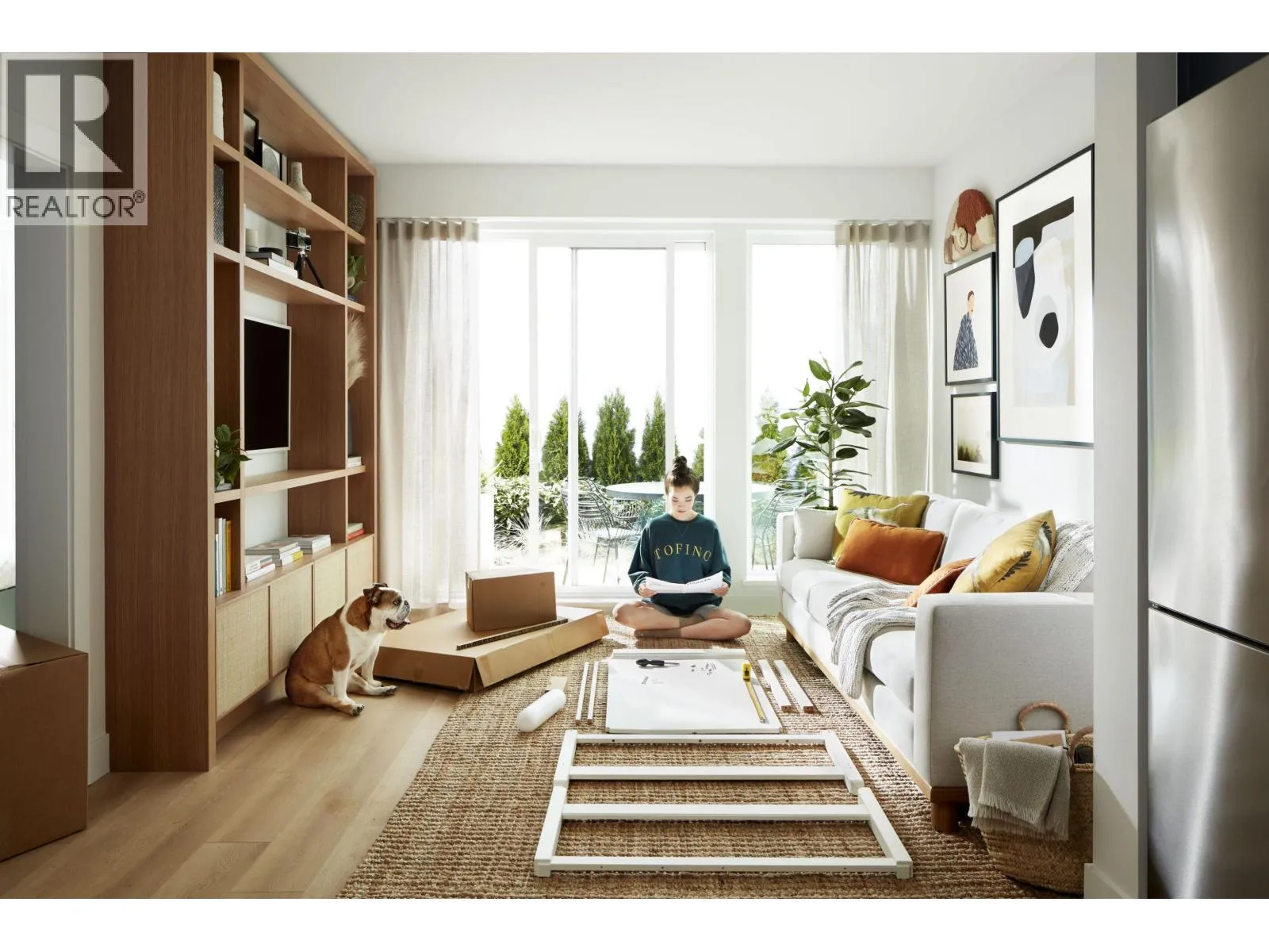 RARE ASSIGNMENT OPPORTUNITY AT MOODY YARDS by MOSAIC HOMES. 840 square foot 2 bedroom, 2 bathroom home with expansive covered balcony inviting city views. Appreciate a functional, open concept floorplan with overheight 9' ceilings and large picture windows. The kitchen features slim shaker cabinetry, integrated appliances and quartz counters and opens into the dining/living areas on durable laminate flooring. The bathrooms feature designer tiling, frameless glass shower/deep soaker tub and quart counters. Amenities include 36,000 SF of communal outdoor space and an amazing co-work studio! All of this, a quick stroll to Rocky Point Park, SkyTrain/West Coast Express, Brewers Row and Shoreline Trail. Includes 1 parking & 1 storage locker. Estimated completion early 2026! (id:27476)