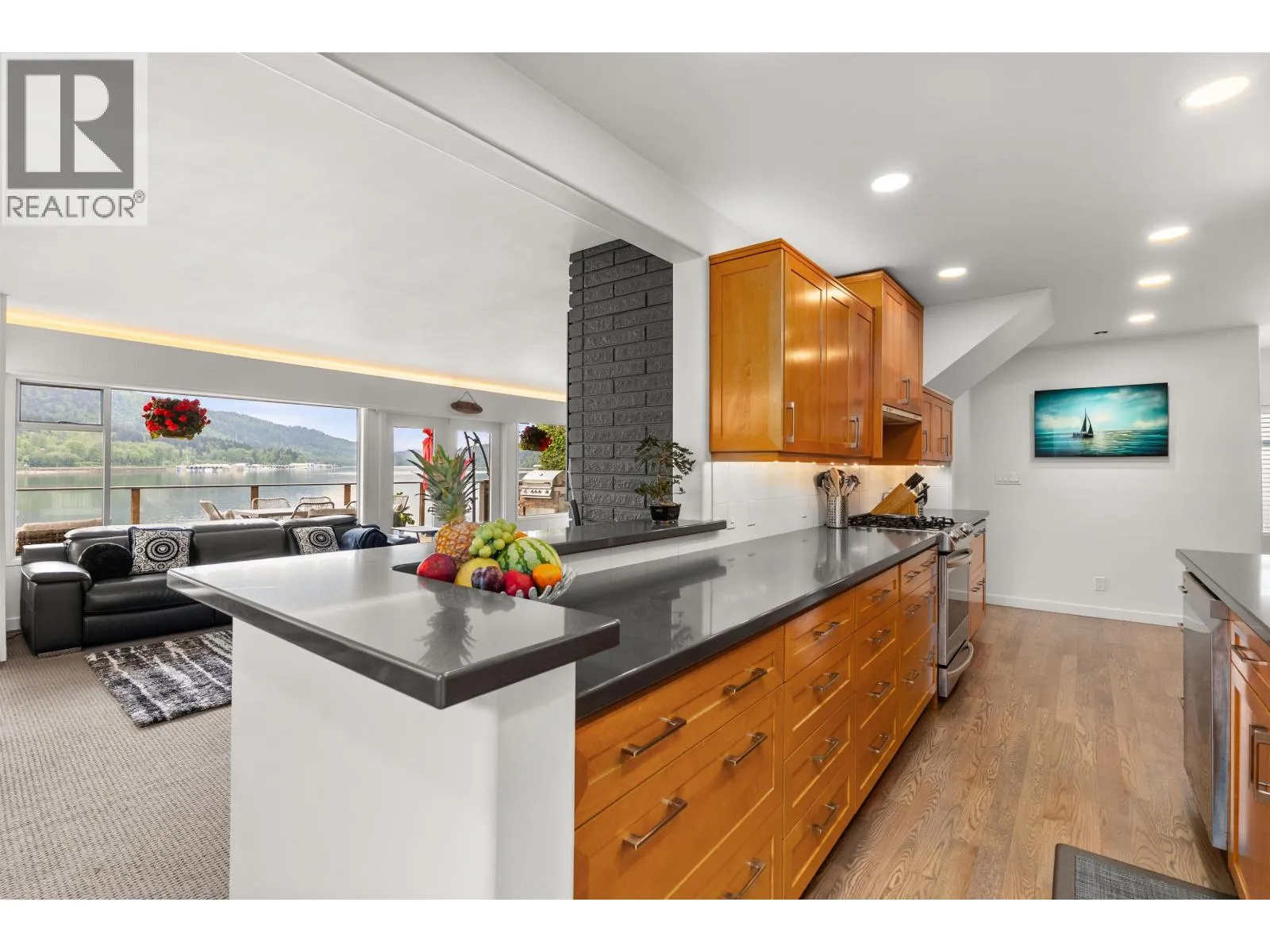 Rare WATERFRONT top 2 floors Prestigious Alderside. Home with extensively renovated interior. Open concept, unobstructed views all levels, privacy from the foliage. LED lighting, Power blinds on main, granite counters throughout, private patio with Bull Island BBQ and fridge. Enjoy Infrared heater(cool days)and Misters(hot days)Inside has A/C with heat pump. High end stainless appliances, security cams. Down a closed off bsmt suite with private entrance. Out 2 car garage with high tech roll up door, custom alum fence, main is wheel chair accessible. For your water needs the legal dock is alum. with weather treated wood. Home has been impeccably maintained as pride of ownerships shows. Unparalleled living on this Rare Property. (id:27476)