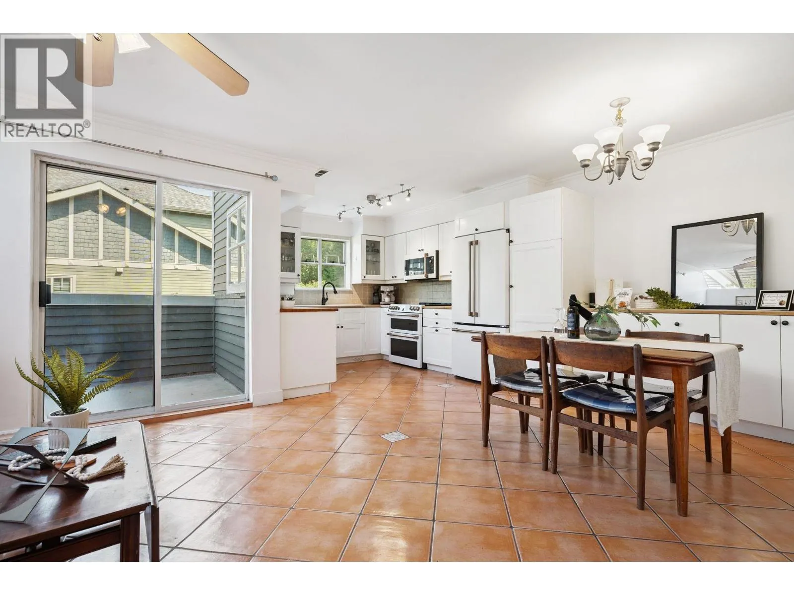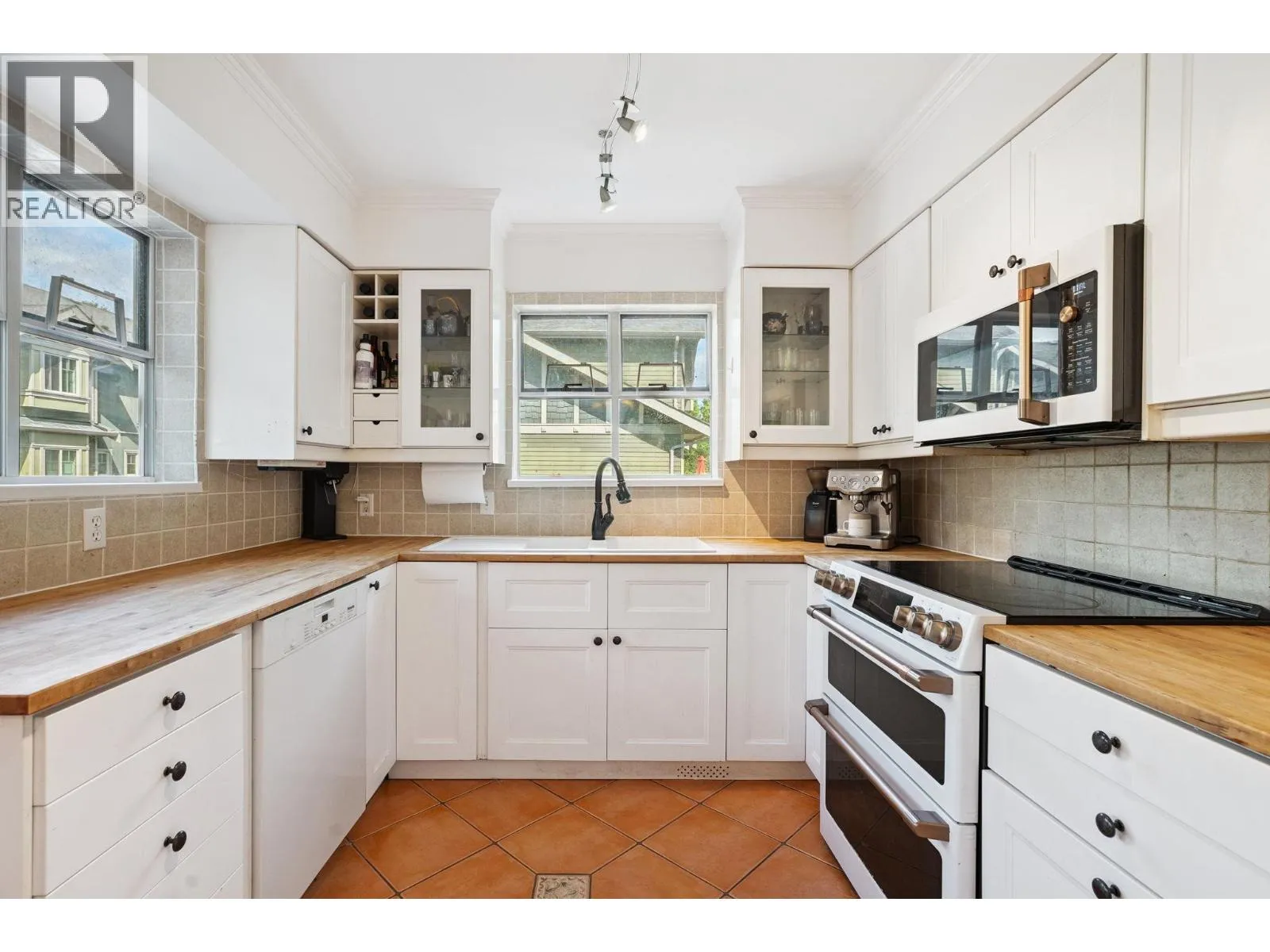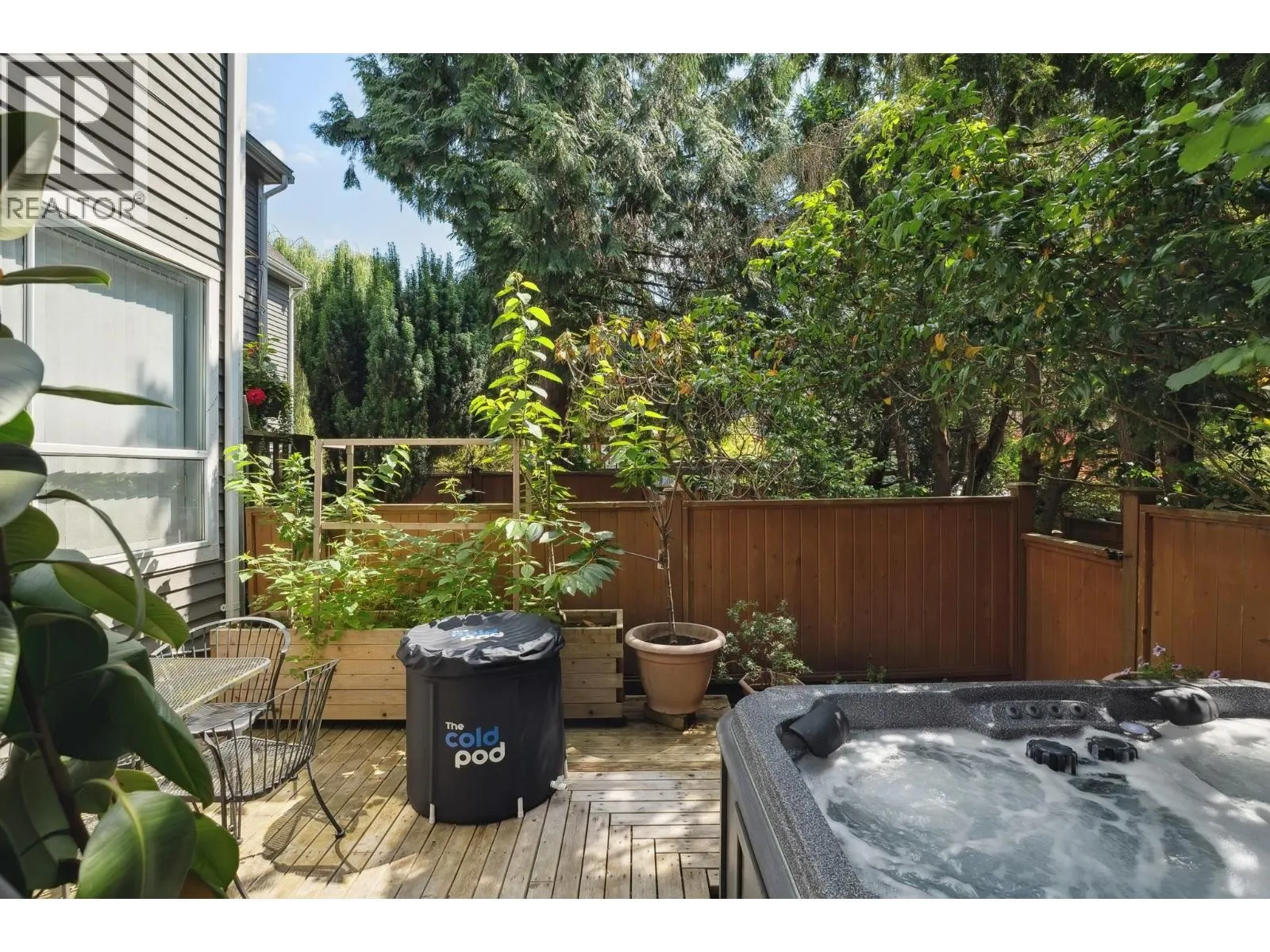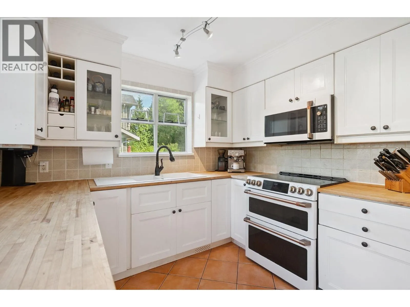 AMAZING VALUE! Rare opportunity to own this spacious 2,350 SF renovated townhome in the heart of Port Moody! This bright 4 bed + den, 2.5 bath home features skylights, generous room sizes, and a double garage. Main level offers an updated kitchen with newer Cafe appliances, butcher block counters, 220V electrical upgrade, and a large living room with deck access. Downstairs, enjoy a private fenced yard with sun deck perfect for relaxing or entertaining. Upstairs has 4 beds incl. a king-sized primary with walk-in closet & ensuite. Lower-level den is ideal for a home office. Updates incl. new paint, pot lights, newer boiler & popcorn ceiling removal. Steps to SkyTrain, Sutter Brook, Newport, Brewers Row & more! (id:27476)
