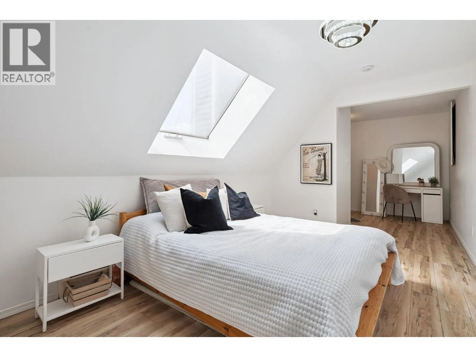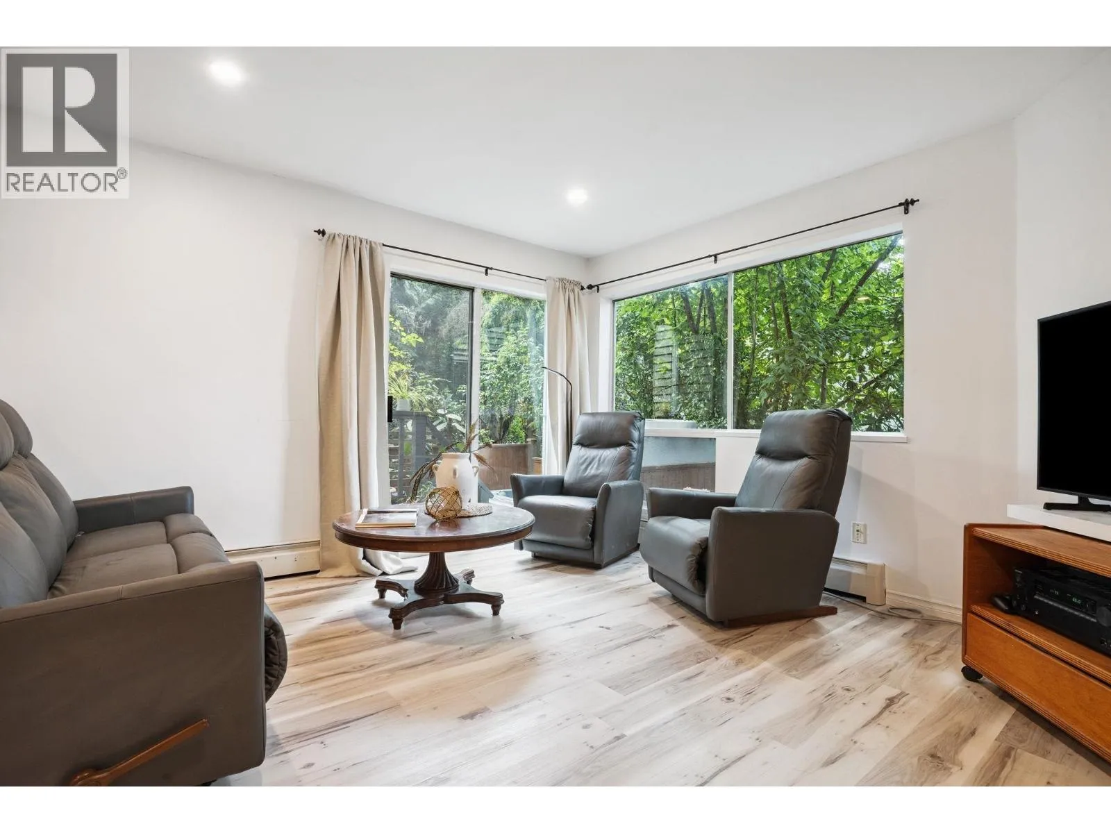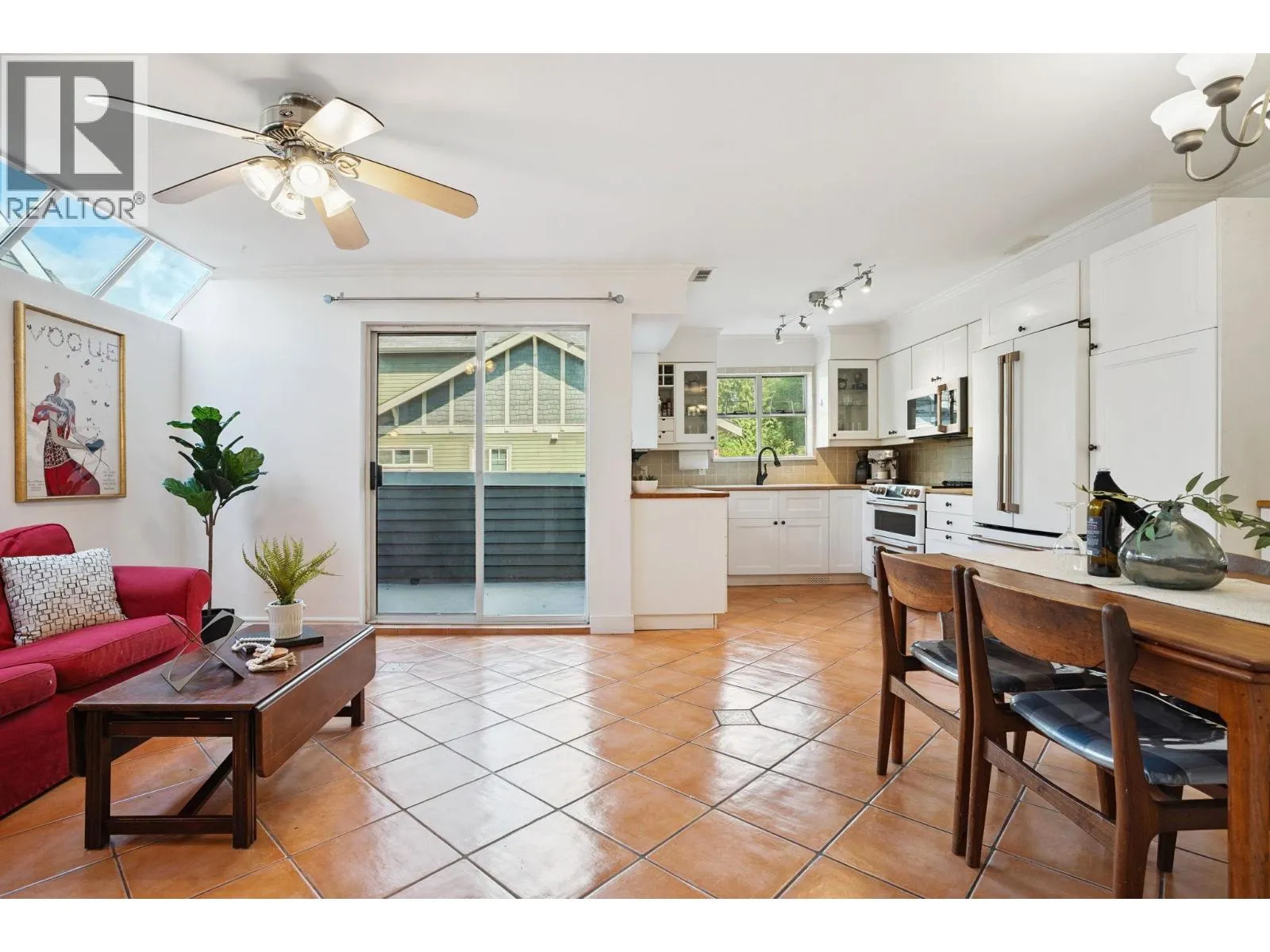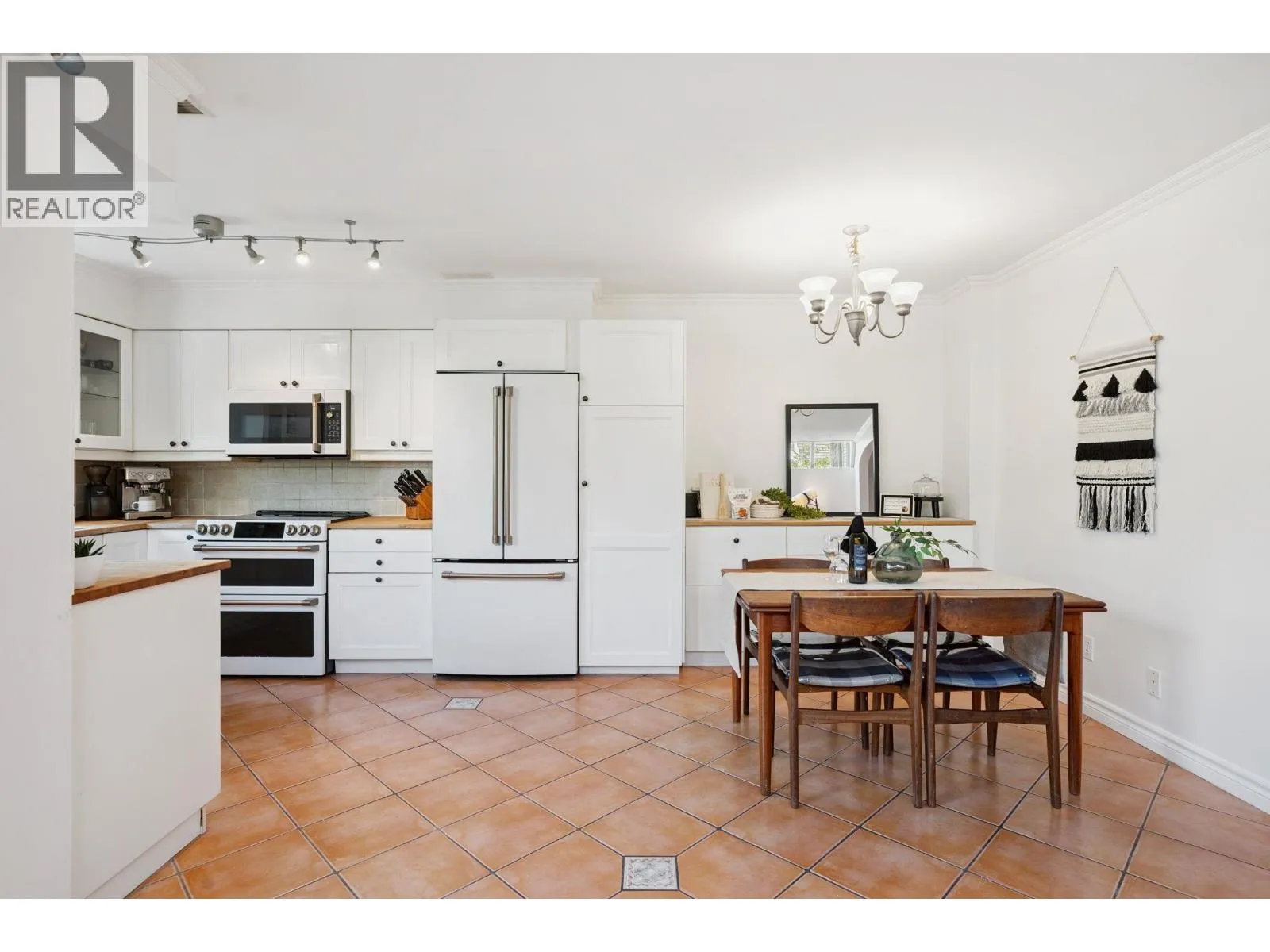 AMAZING VALUE! Rare opportunity to own this spacious 2,350 SF renovated townhome in the heart of Port Moody! This bright 4 bed + den, 2.5 bath home features skylights, generous room sizes, and a double garage. Main level offers an updated kitchen with newer Cafe appliances, butcher block counters, 220V electrical upgrade, and a large living room with deck access. Downstairs, enjoy a private fenced yard with sun deck perfect for relaxing or entertaining. Upstairs has 4 beds incl. a king-sized primary with walk-in closet & ensuite. Lower-level den is ideal for a home office. Updates incl. new paint, pot lights, newer boiler & popcorn ceiling removal. Steps to SkyTrain, Sutter Brook, Newport, Brewers Row & more! (id:27476)