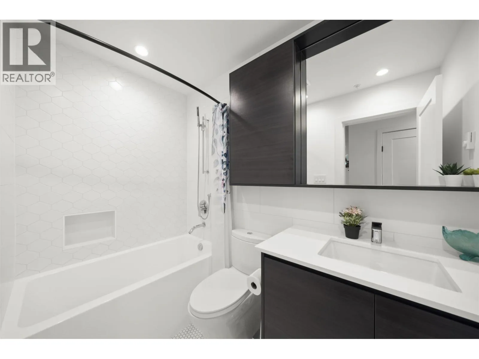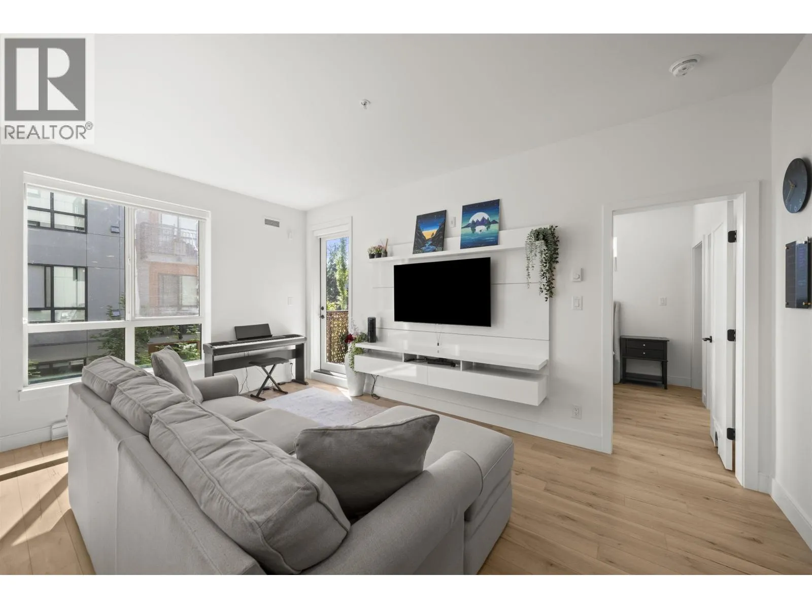Welcome to modern living in the heart of Port Moody. This garden-facing 2 bedroom, 2 bathroom corner home at 50 Electronic Ave offers nearly 1,000 square ft of open-concept space, thoughtfully designed with integrated appliances, a striking quartz waterfall island, and a custom pantry wall. Level up your lifestyle with exclusive access to Club 50, a 9,000 sq ft, three-level amenity space with everything from a fitness centre and yoga studio to a sky lounge, coworking hub, kids´ play area, podcast room, dog wash, guest suite, and more. With TWO parking stalls and TWO storage lockers, this home offers both comfort and convenience. Just steps from the SkyTrain, Shoreline Trail, restaurants, and shops. (id:27476)