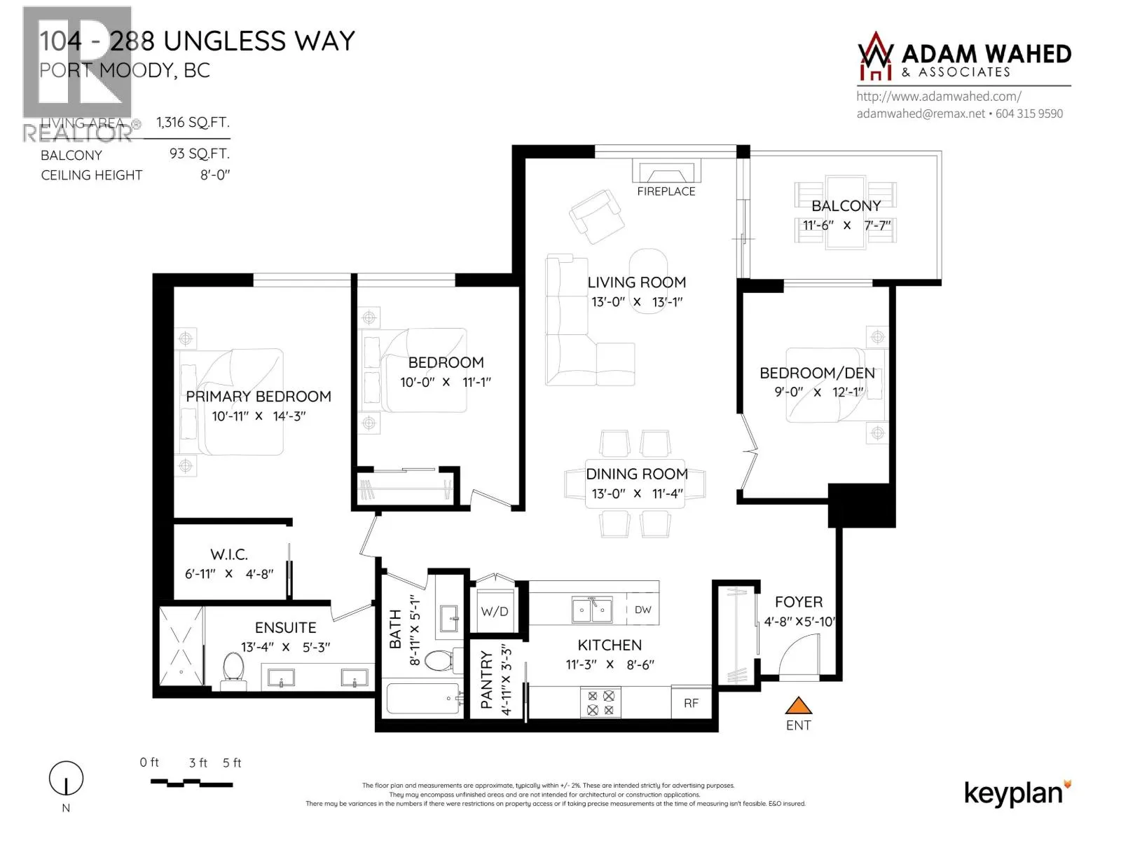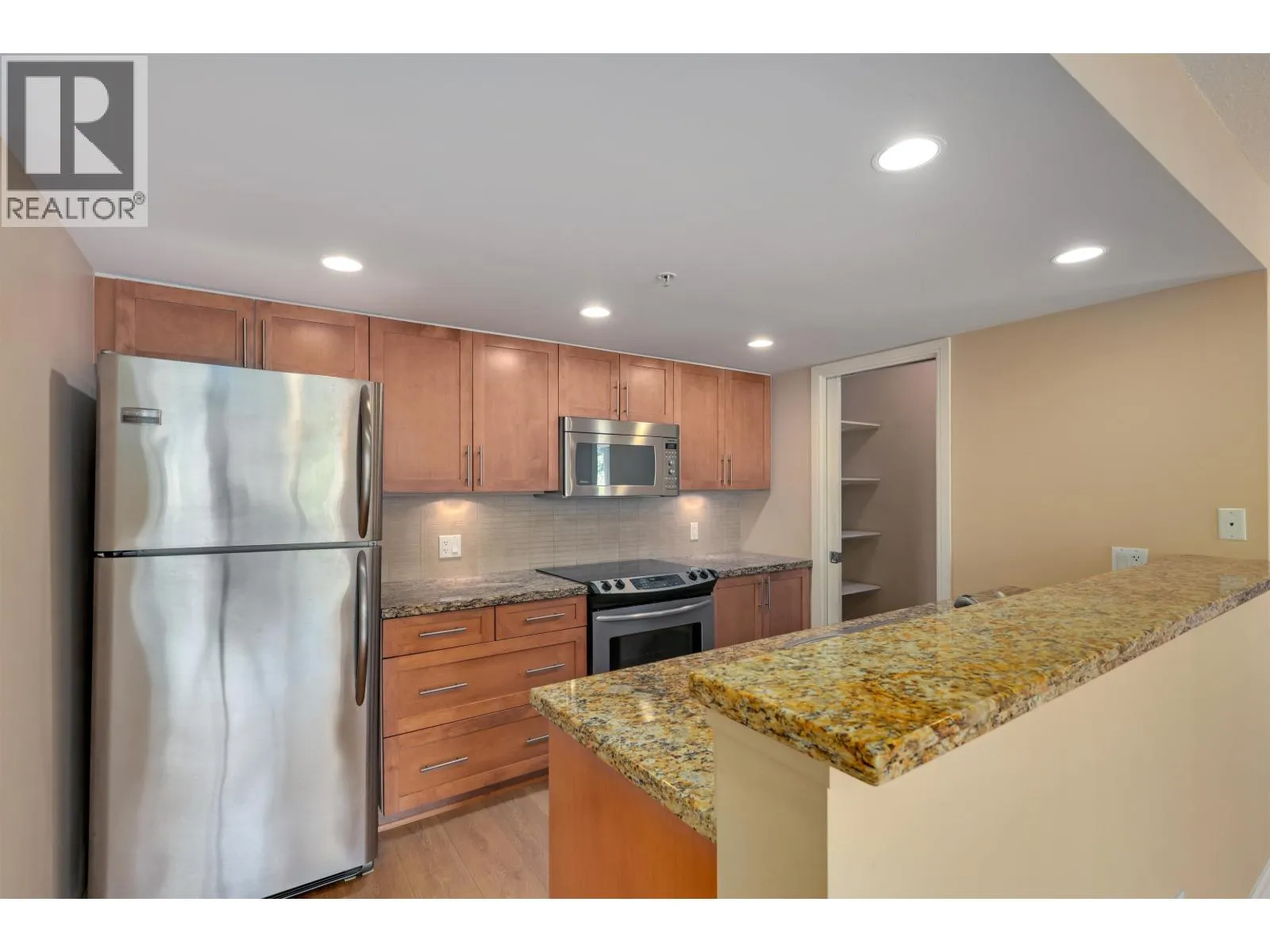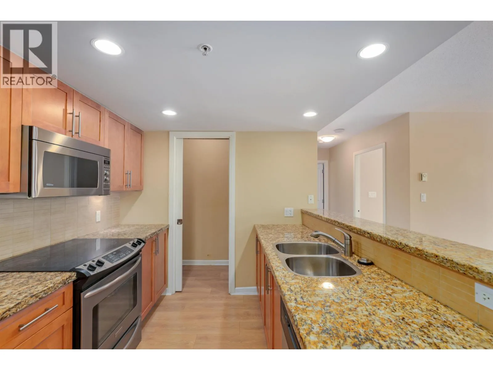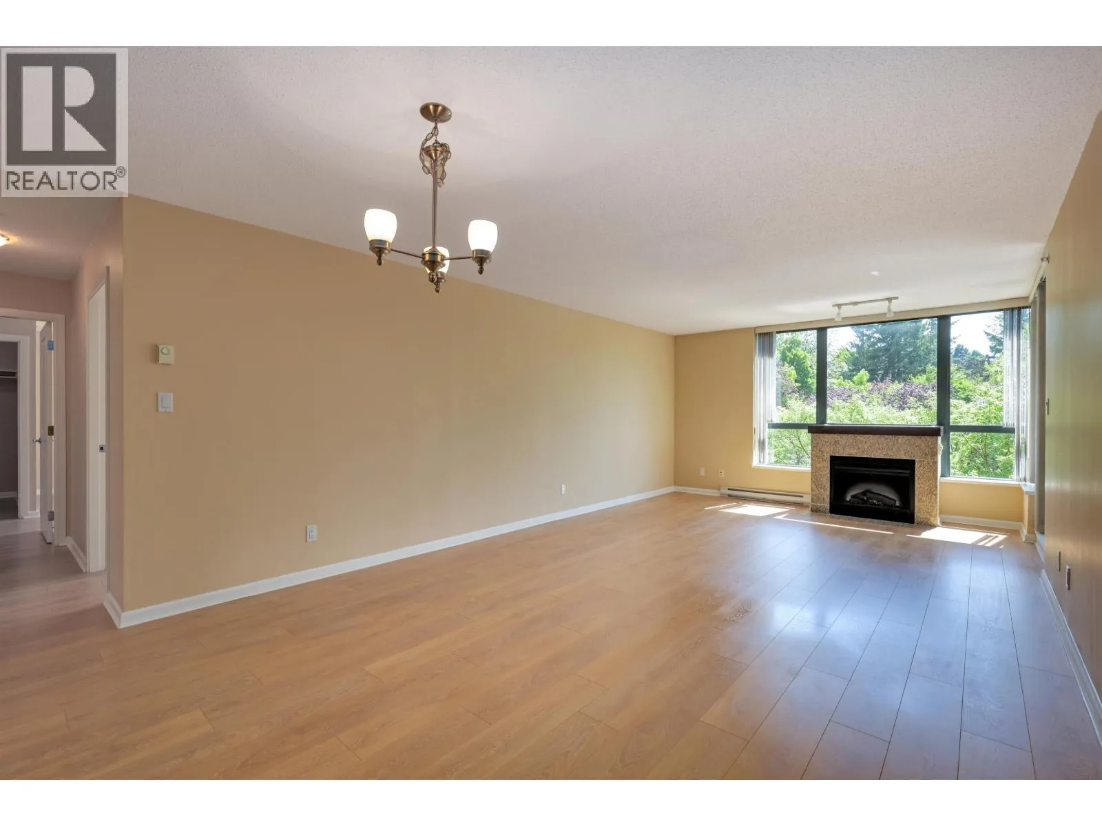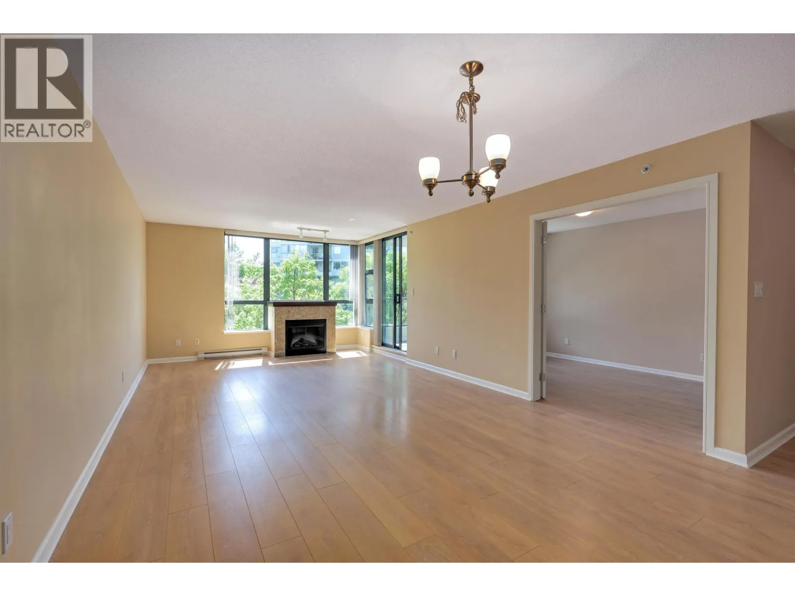 This exceptional 2-bedroom + den/3 bedroom, 2-bathroom corner suite in The Crescendo - a quality concrete building by Bosa - offers the ideal downsize opportunity in the heart of Newport Village. Situated on the first residential level (not ground floor), this bright and spacious home features over 1,300 square ft of thoughtfully designed living space, a cozy electric fireplace, and expansive windows throughout. The kitchen is equipped with granite countertops, a smooth-top stove, built-in microwave, and a generous full-size pantry. The open-concept dining and living areas flow seamlessly to a large, private corner deck with views of the lush garden accessible from both the living room and oversized master bedroom. 2 side by side parking stalls. (id:27476)