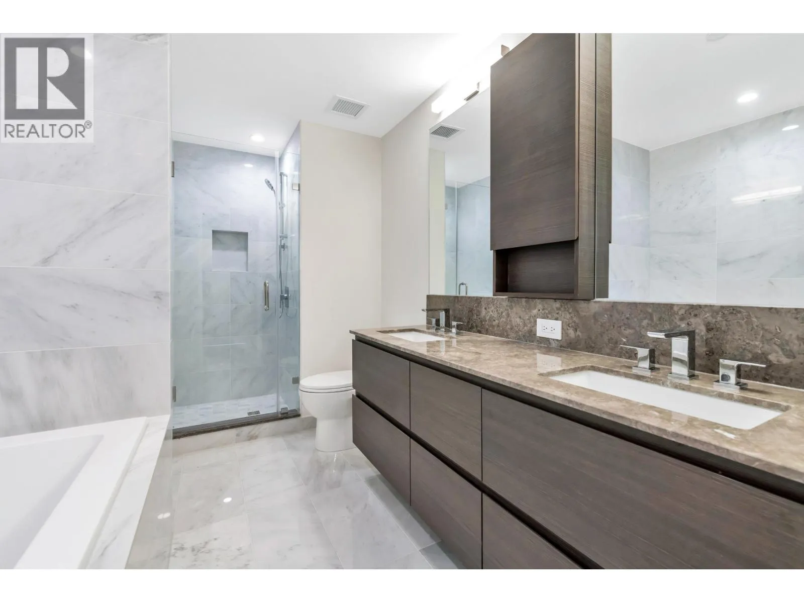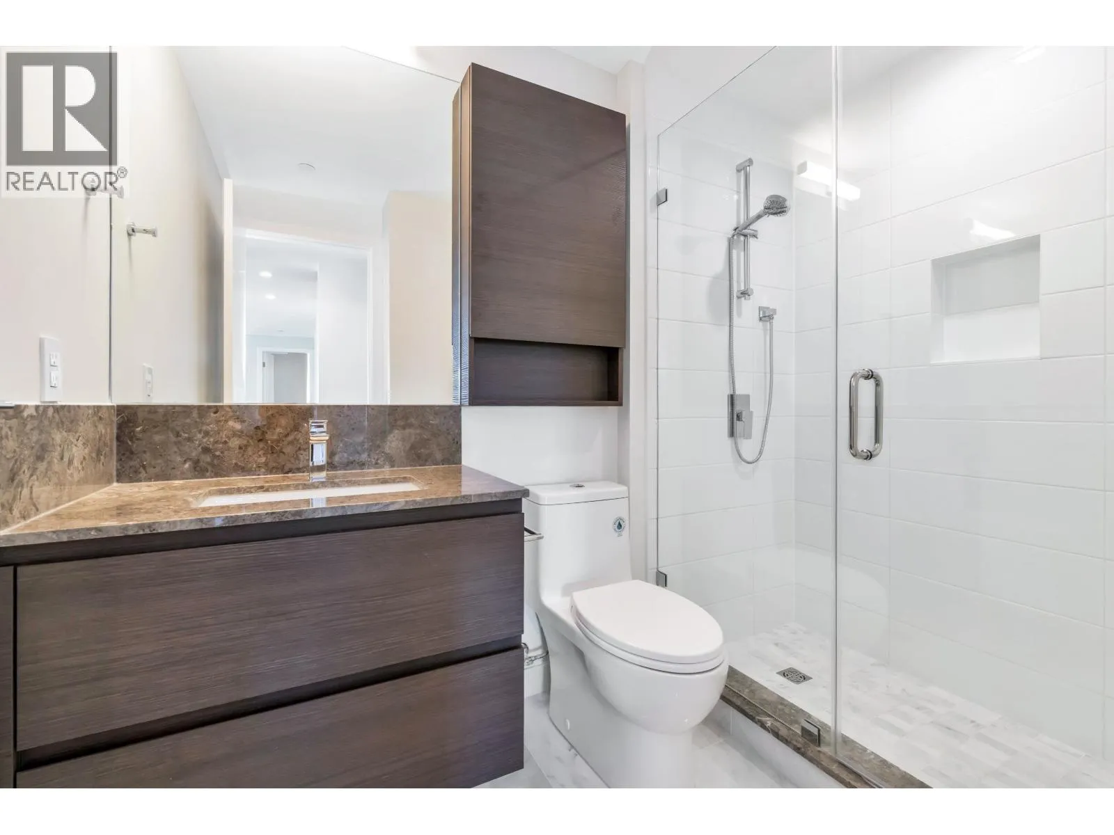 Downsizers and UPsizers take note: Corner unit with water VIEWs! With 1,242 sq. ft., this home offers 2 bedrooms, 2 bathrooms, large den, plus in-suite storage/flex space. The open kitchen boasts European appliances, gas cooktop, work island, and hidden drawers for extra counterspace-perfect for cooking and entertaining. Primary bedroom features a walk-through closet & spa-inspired ensuite with dual sinks and separate shower. HUGE wraparound balcony to enjoy the views! Bonus laundry ROOM with added storage. Resort-style amenities include pool/hot tub, sauna/steam room, gym, games room (with golf simulator!), kids´ playroom, and playground. Comes with 1 parking/locker, and allows rentals & pets. All this & steps to SuterBrook shops, trails, and Inlet SkyTrain! (id:27476)