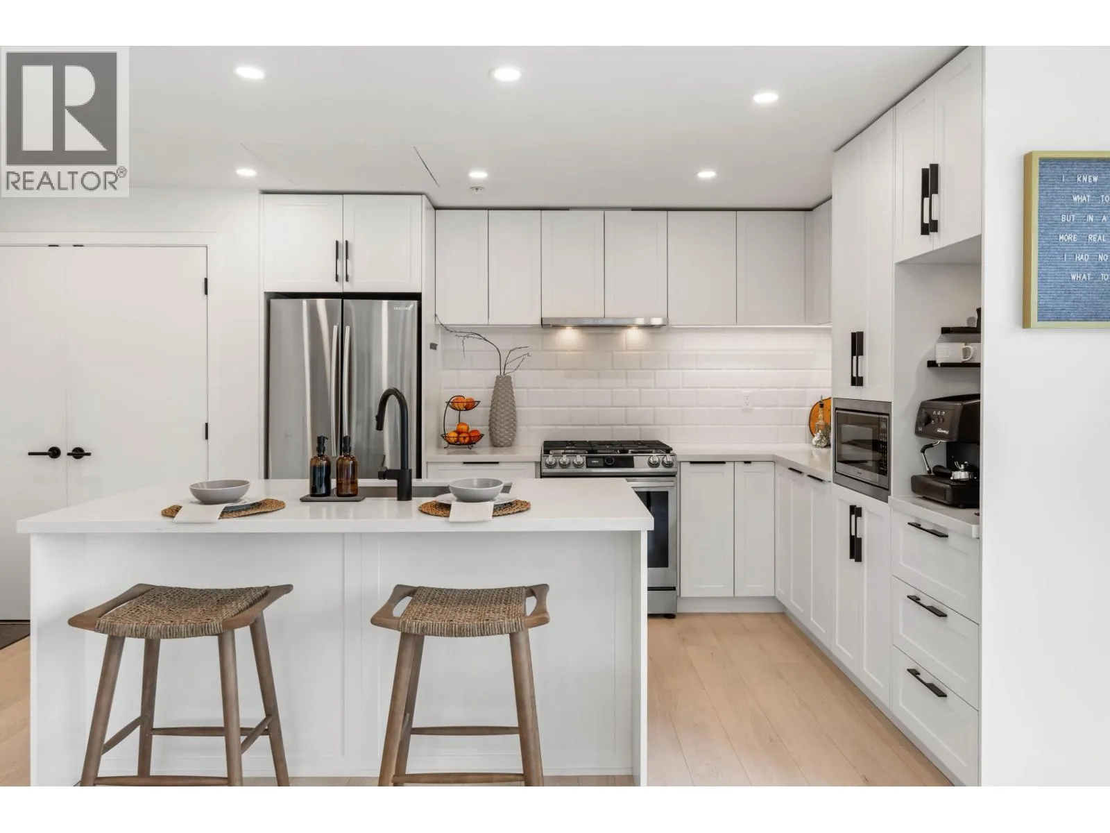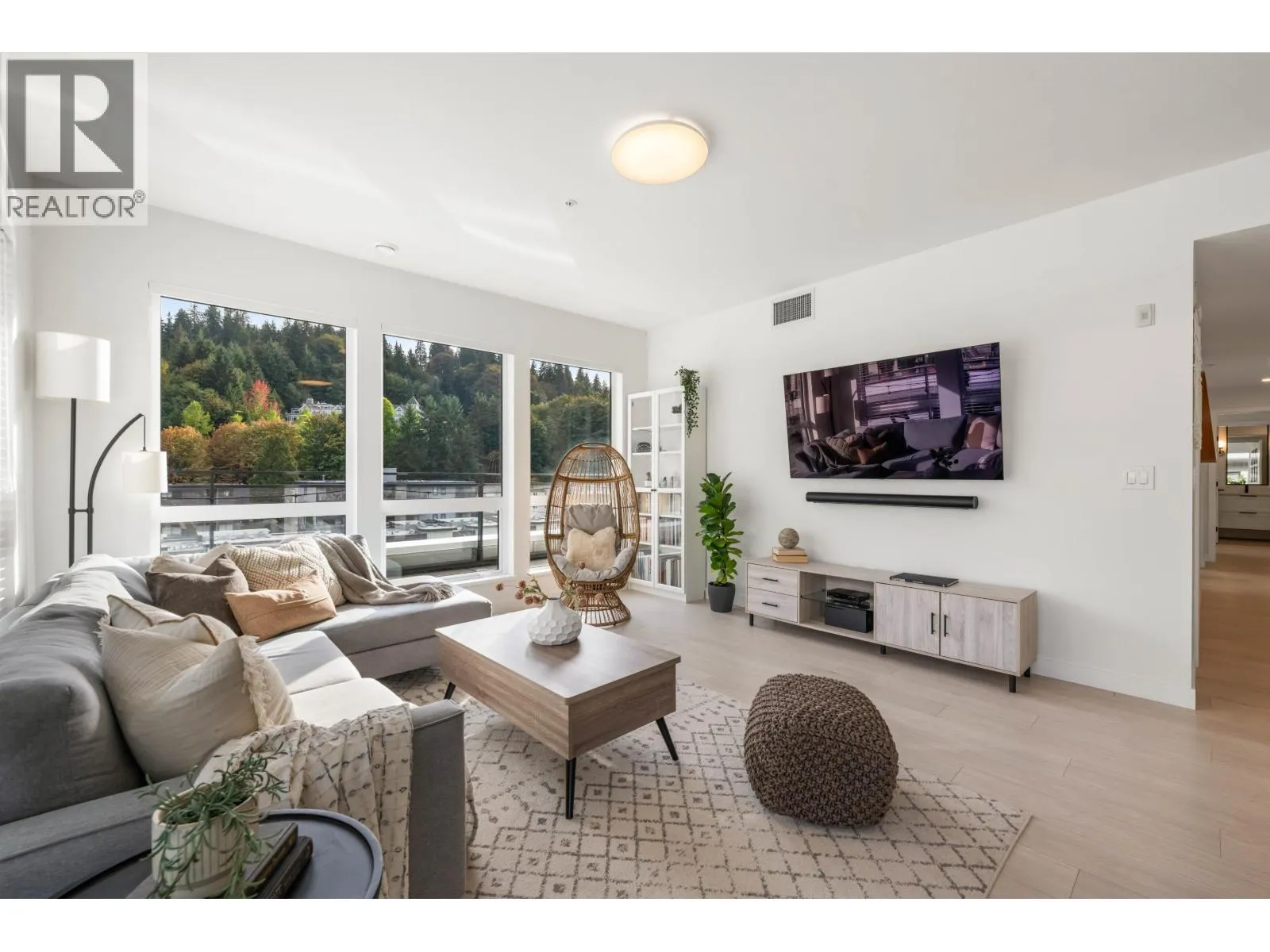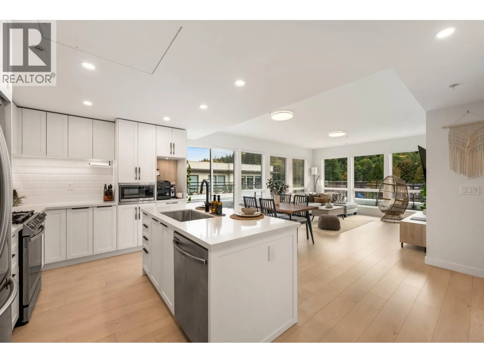Absolutely stunning, RARE 3 Bed/2 Bath CORNER PENTHOUSE built by award winning Marcon. Over 1800 sq/ft of incredible indoor/outdoor living space! Expansive 9ft ceilings with the most breathtaking natural light throughout! Huge wrap around balcony w/sunny southeast views perfect for morning coffee or afternoon relaxation! So many upgrades inc gourmet kitchen w/quartz countertops & large island, S/S appliances inc gas stove, coffee nook, sleek finishings, side by side full laundry, gorgeous upgraded luxury laminate flooring, BONUS Air conditioning, plus custom built in closets throughout. Enjoy two side by side parking stalls with huge private concrete locker (right in front of parking) An exceptional location just steps to Inlet Centre Stn, famous Rocky Point Park, Brewers Row, top schools & the trendy shops at both Newport & Suterbrook Village. A RARE FIND! Click link for incredible full video tour! Open house Nov 16, 1:30-3 (id:27476)