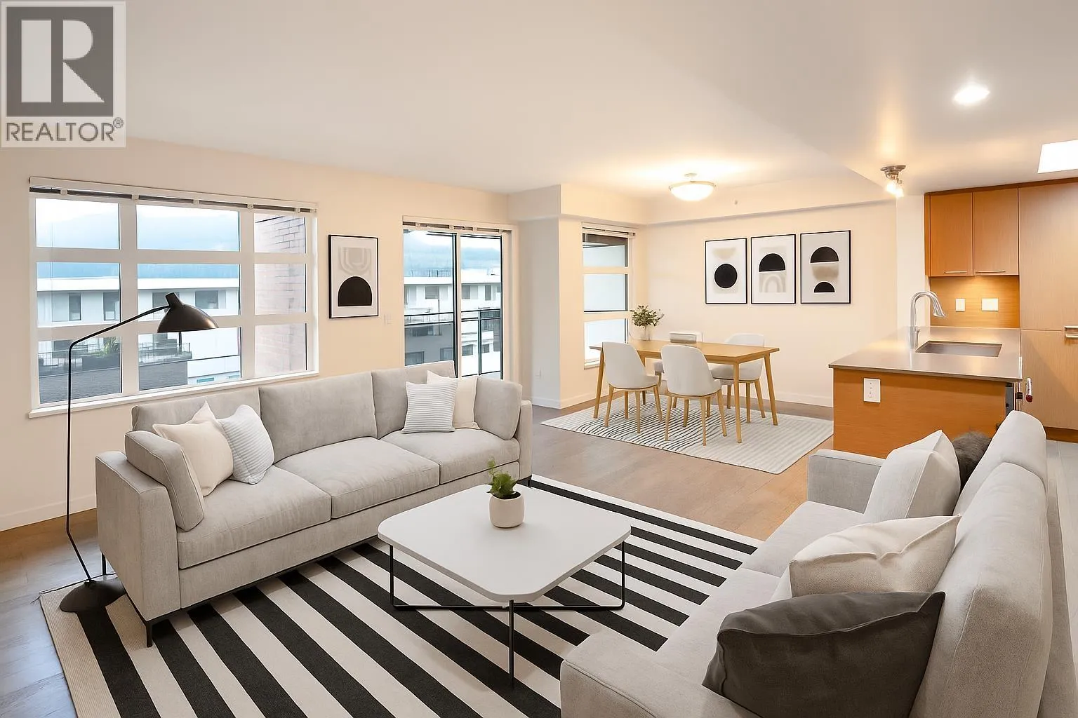 The Station by Aragon in prime Port Moody! Stylish north-facing 2 bed, 2 bath unit with stunning water & mountain views of Burrard Inlet. Features engineered hardwood in hallway, living & dining areas, plus an open-concept gourmet kitchen with quartz counters, stainless steel GE appliances, gas stove, Kohler fixtures & skylight for natural light. Includes full-size front-load washer/dryer, balcony, 1 parking stall and storage locker. Building has Geothermal A/C & heating plus fitness center! Just steps to Rocky Point Park, Evergreen Line, West Coast Express, breweries, shops & restaurants. A must see! https://youtu.be/0m4gWugnRNE?si=JA3cy6kYdz83Whs5 Open House Saturday, November 15 from 3-4pm (id:27476)