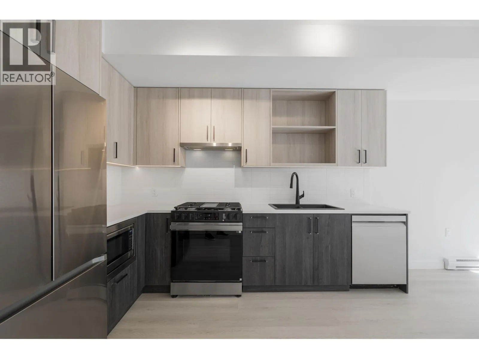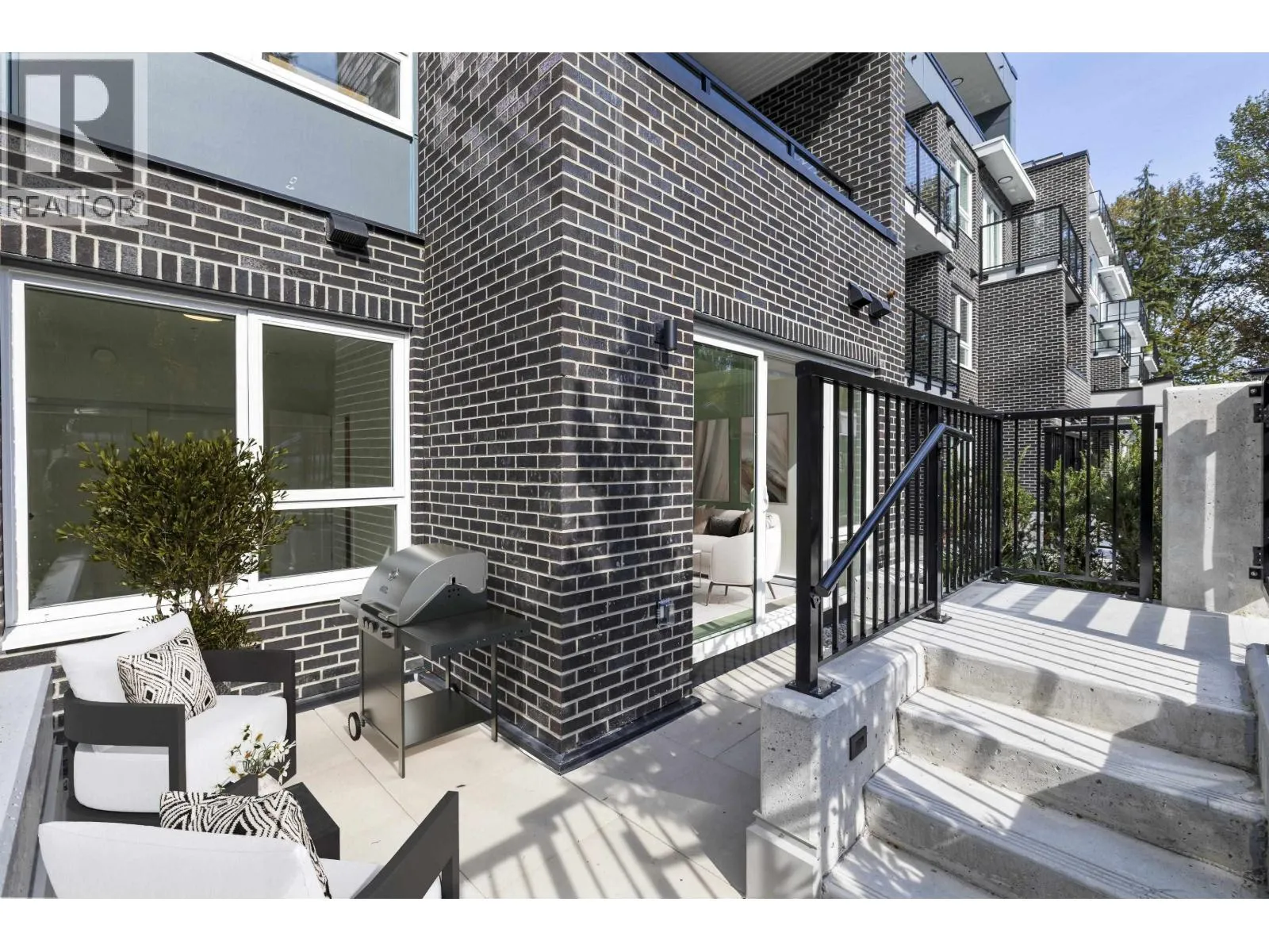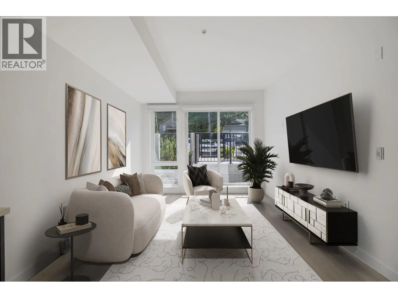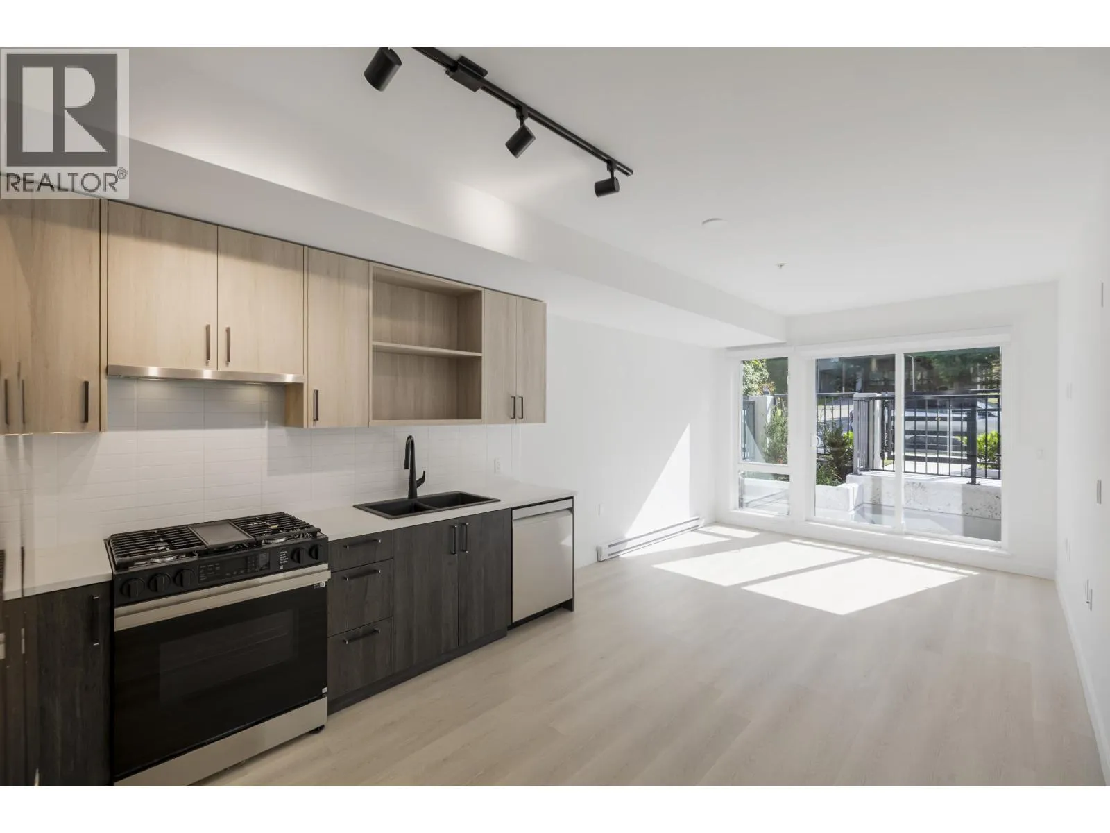 WELCOME TO ANCHOR BY BOLD PROPERTIES. This stylish TH style garden unit features a spacious open layout with airy 9´ ceilings, sleek modern finishes, and a premium S/S appliance package. PRIVATE 170 SF patio, ideal for outdoor dining & hosting friends. The community offers outstanding amenities including a rooftop patio with stunning views, a party room, fully equipped gym, BBQ areas on every floor, and a landscaped courtyard with kids´ playground. The unit offer parking + storage with easy access to Port Moody´s shops, SkyTrain, Rocky point park + trails. Note - there is no window in the 2nd bedroom. This home blends comfort with convenience in an unbeatable location. (id:27476)