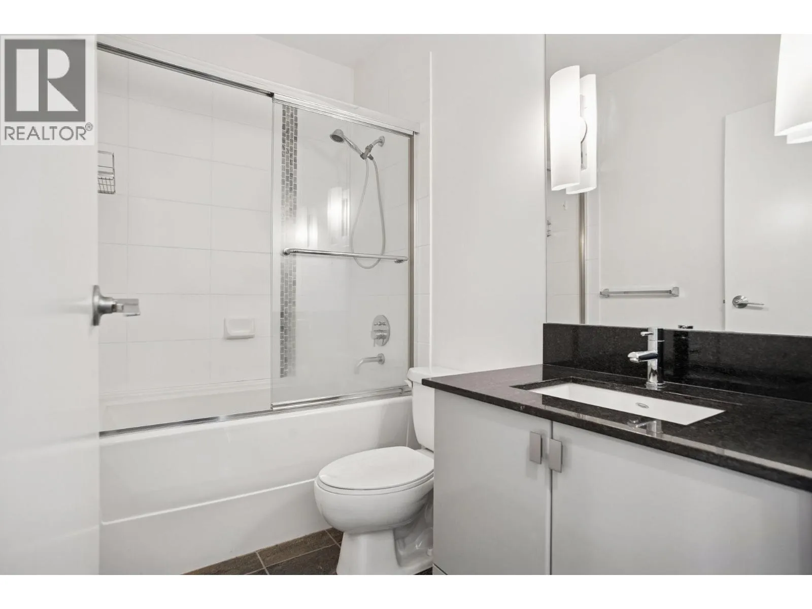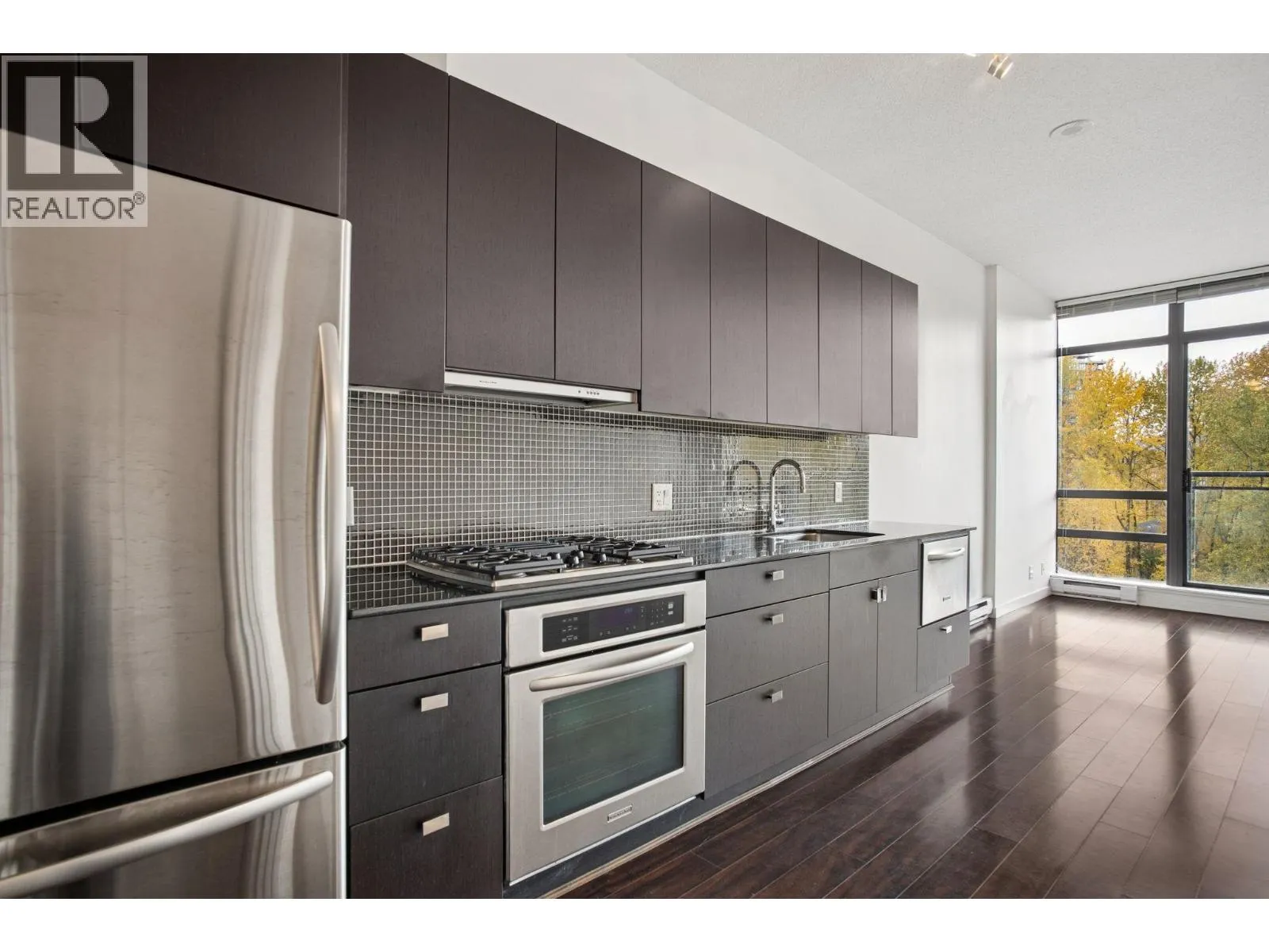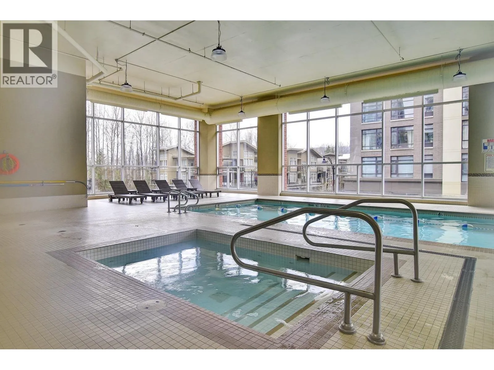 Sub-penthouse, spacious loft style private unit in low rise concrete building, "ROOM", in popular trendy Sutter Brooke Village, Port Moody offers an open concept 10 ft ceilings bright living area with premium plank laminate floors. modern kitchen showcases dark wood cabinets, stainless Kitchen Aid appliances, sleek gas range, daily dishwasher, granite countertops and movable island add to its the features. The Bedroom separates by sliding doors to add to the openness. Unique 15,000 sf amenity center includes indoor pool, jacuzzi, fully equipped exercise room, squash court, big lounge, game room. Famous supermarket, cafes, and boutique shopping in the Village are at your door step, Walk to Westcoast Express and take 20 min ride DT Vancouver. First time on the market! (id:27476)