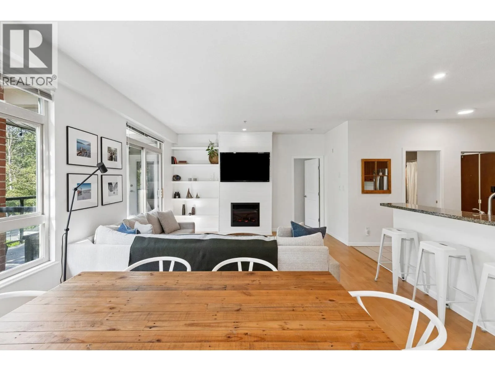 Welcome home to your spacious and bright 2 Bed/2 Bath SW corner home in Suter Brook in the heart of Port Moody. Walk in the front door and enjoy 9 ft ceilings and the perfect layout offering 1170 SF of open concept living including a chef´s kitchen with SS appliances, granite counters and bar seating. You´ll love the full size windows, two covered patios and a beautifully updated fireplace with contemporary finishes + built in shelving. The large bedrooms have been freshened up with new carpet and are separated for ultimate privacy. Great building amenities including gym, two level amenity room and two guest suites located on the same floor making it easy and comfortable for hosting family + friends. Enjoy this coveted location - walking distance to trails, shops, brewery lane + transit. (id:27476)