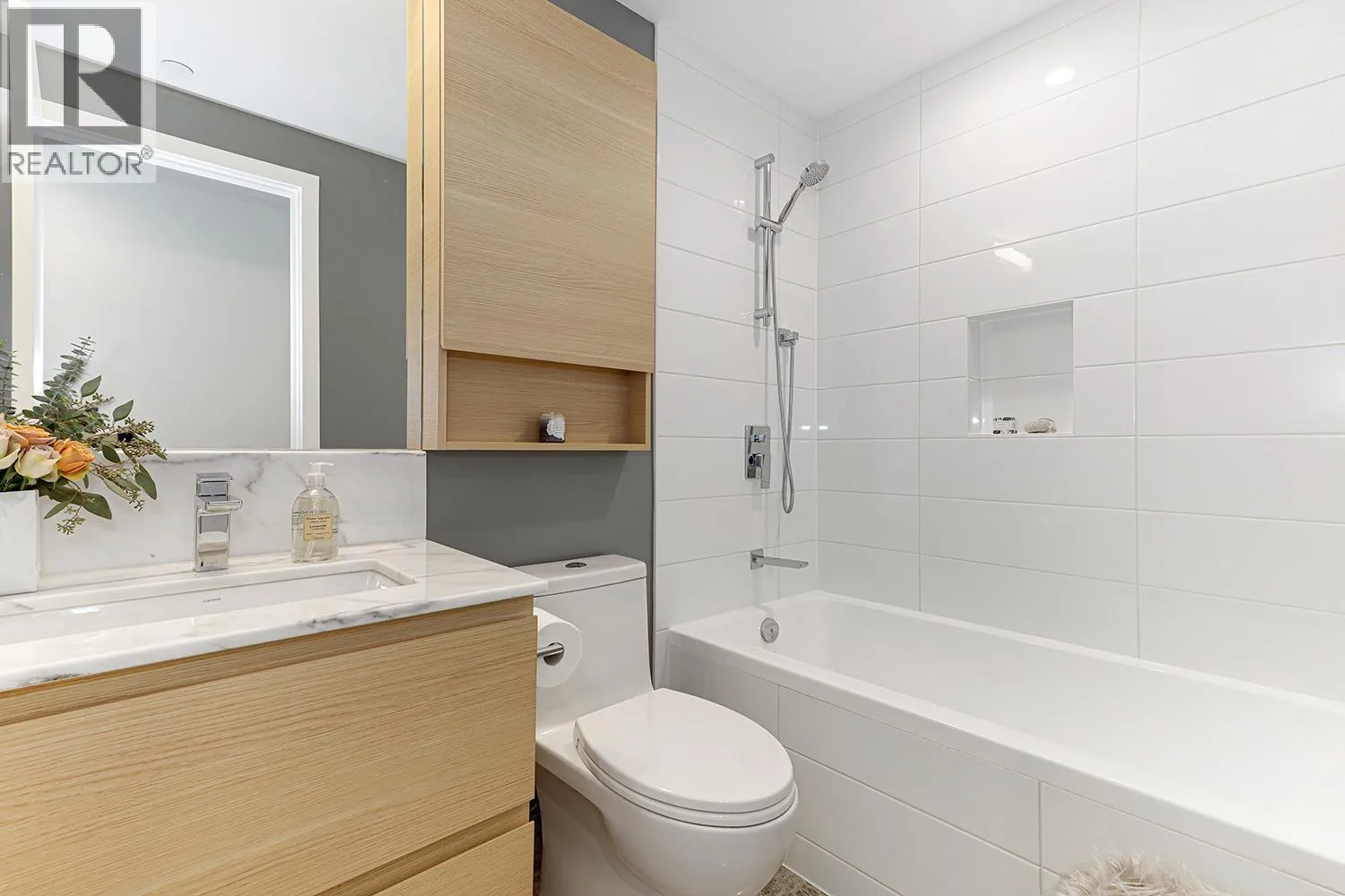 Stunning 2 Bed, 2 Bath Corner Home | Premier Concrete Building in Port Moody This 3-year-old residence combines modern elegance with comfort. Featuring 9-foot ceilings, air conditioning, & peaceful green space views. This home has been elevated with over $35,000 in custom upgrades including: a Ecobee smart thermostat, designer paint throughout, built-in shelving and drawers in all closets. Nu-heat floors in the ensuite, spacious walk-in closet, upgraded fixtures & hardware, & new lux carpeting in the principal bedroom. Chefs kitchen with fully integrated euro-appliances, gas range, stone island & countertops. EV parking stall & large storage locker. LOCATION~Steps to boutique shops, transit, skytrain, waterfront trails & Brewery Row! PETS WELCOME! Resort-style amenities include an outdoor pool, spa, sauna, golf simulator, party/ function rooms, guest suites, concierge, fitness centre, and more. ***OPEN HOUSE*** SATURDAY NOVEMBER 8, 2PM-4PM. (id:27476)