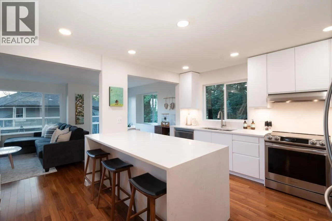 EXECUTIVE, END UNIT TOWNHOME WITH A STUNNING, GREENBELT LOCATION!! Beautifully renovated, open concept home boasts privacy and serenity! Main floor features warm, walnut hardwood flooring. The incredible Chef's Kitchen offers a massive entertaining island, custom white cabinetry, quartz counters and upscale S/S appliances. From the cozy Living and Dining Area with a gas fireplace, walk out to your private patio, hot tub and incredible views of the forest! Up are 3 very generous Bedrooms. The Primary Bdrm boasts a walk-in closet, great views and a luxurious renovated ensuite! Basement has a large Bedroom/Rec Room, with no window. Perfect for a nanny suite, home office or gym. Great complex just steps to all 3 levels of schools: Heritage Mtn Elem, Eagle Mtn Middle and Heritage Woods Sec! (id:27476)