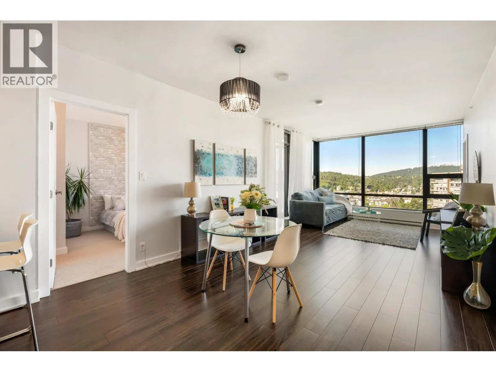 Unobstructed OCEAN & MOUNTAIN views with stunning sunsets in the sought-after Suter Brook Village at The Residences. 2 BED/2 BATH, walk-in closet + DEN/OFFICE large enough to convert to a small bdrm. An open plan with floor-to-ceiling windows brings tons of natural light during daytime + city lights at night. S/S appliances, quartz counters, gas cooktop, breakfast bar & plenty of storage. Recently renovated, upgrades = LED light fixtures, accent wall & new paint throughout. 2 parking, 1 storage, access to 5 EV charging stalls + upcoming private EV charging. Amenities: gym, yoga, sauna, steam room, tennis court, conference room, concierge, theater/party room, outdoor BBQ & guest suites. Close to Inlet Skytrain station, dog park, restaurants, Rocky Point park, trails, schools & Brewers Row. (id:27476)