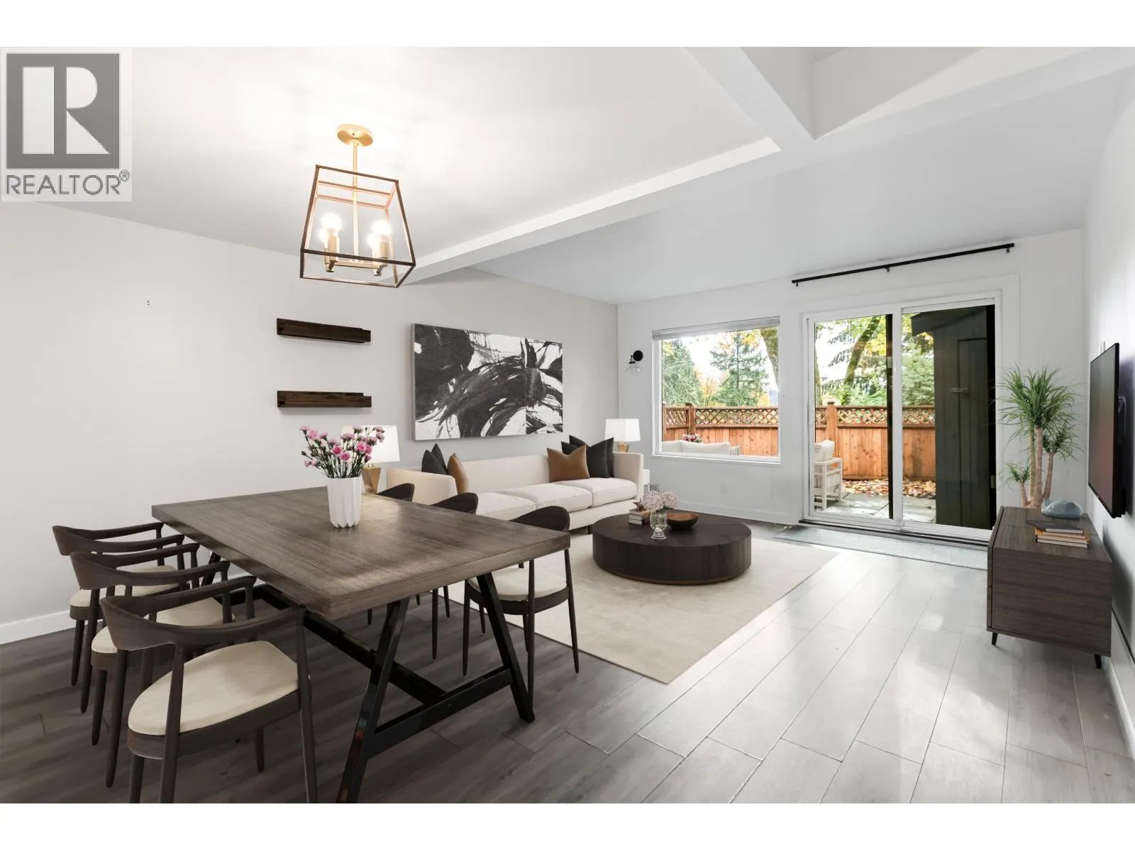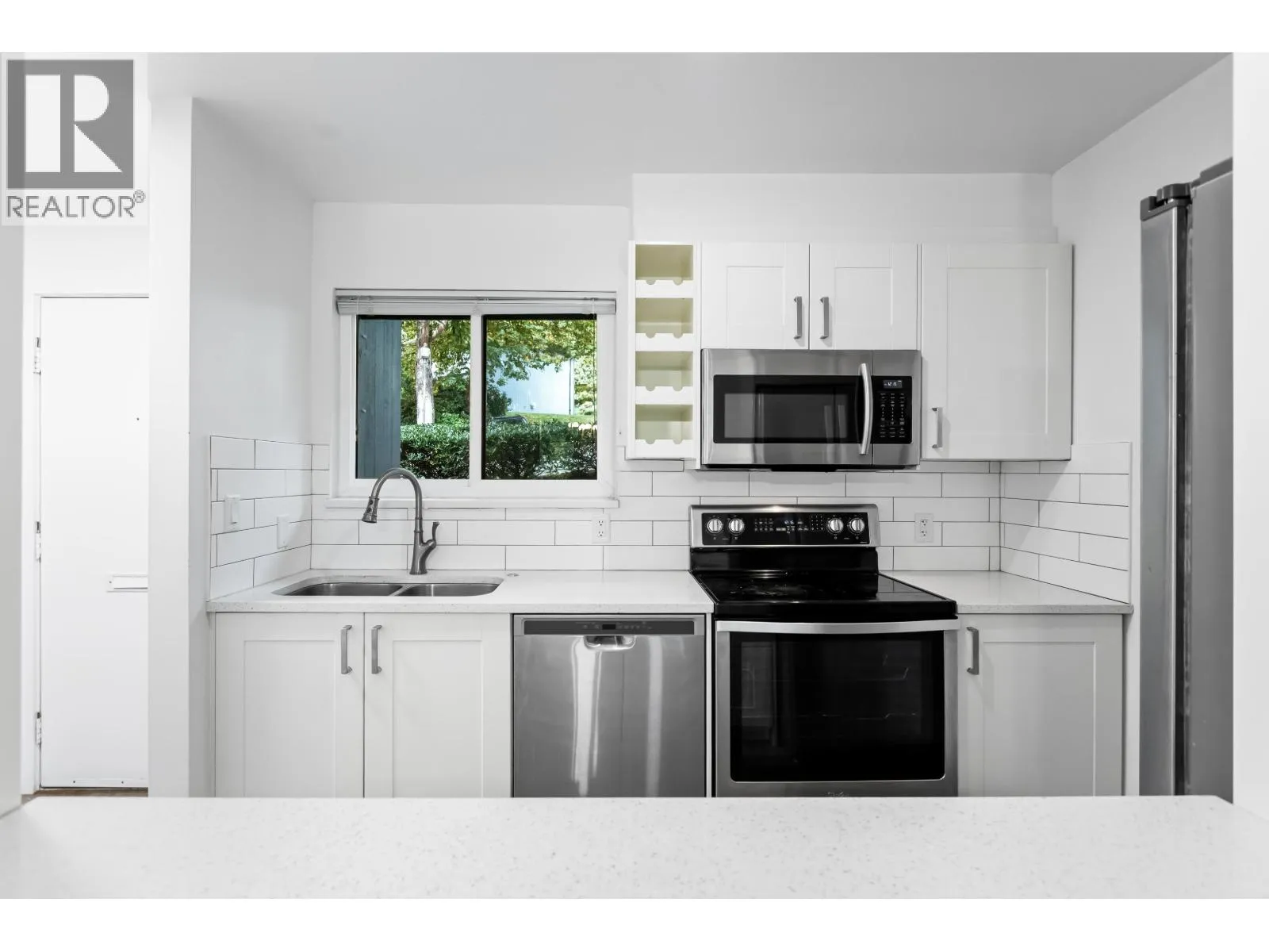 This beautifully updated 3 bedroom, 2 bath end-unit townhouse offers over 1,030 sq. ft. of comfortable living in a peaceful, community-oriented complex. Step inside to find a bright, open-concept main floor featuring a spacious living and dining area, warm laminate flooring, and large windows that bring in natural light. The modern kitchen is well-equipped with updated appliances and ample cabinet space, opening to a private, fenced patio - perfect for morning coffee, bbq´s, or letting kids and pets play safely. Upstairs, you´ll find three generous bedrooms, including a primary suite with great closet space and a feature wall. Enjoy the convenience of two parking spots, in-suite laundry, and a private backyard. Woodside Village is ideally located just steps to schools, shopping, transit and scenic trails. Open House Sat 2-4 & Sun 3-5pm (id:27476)