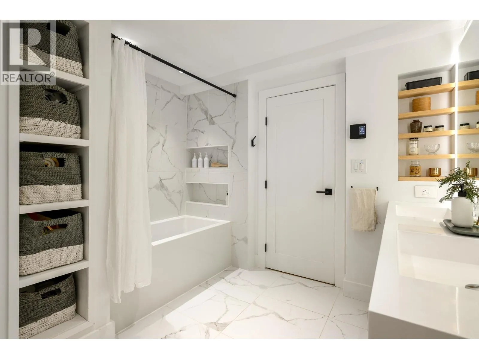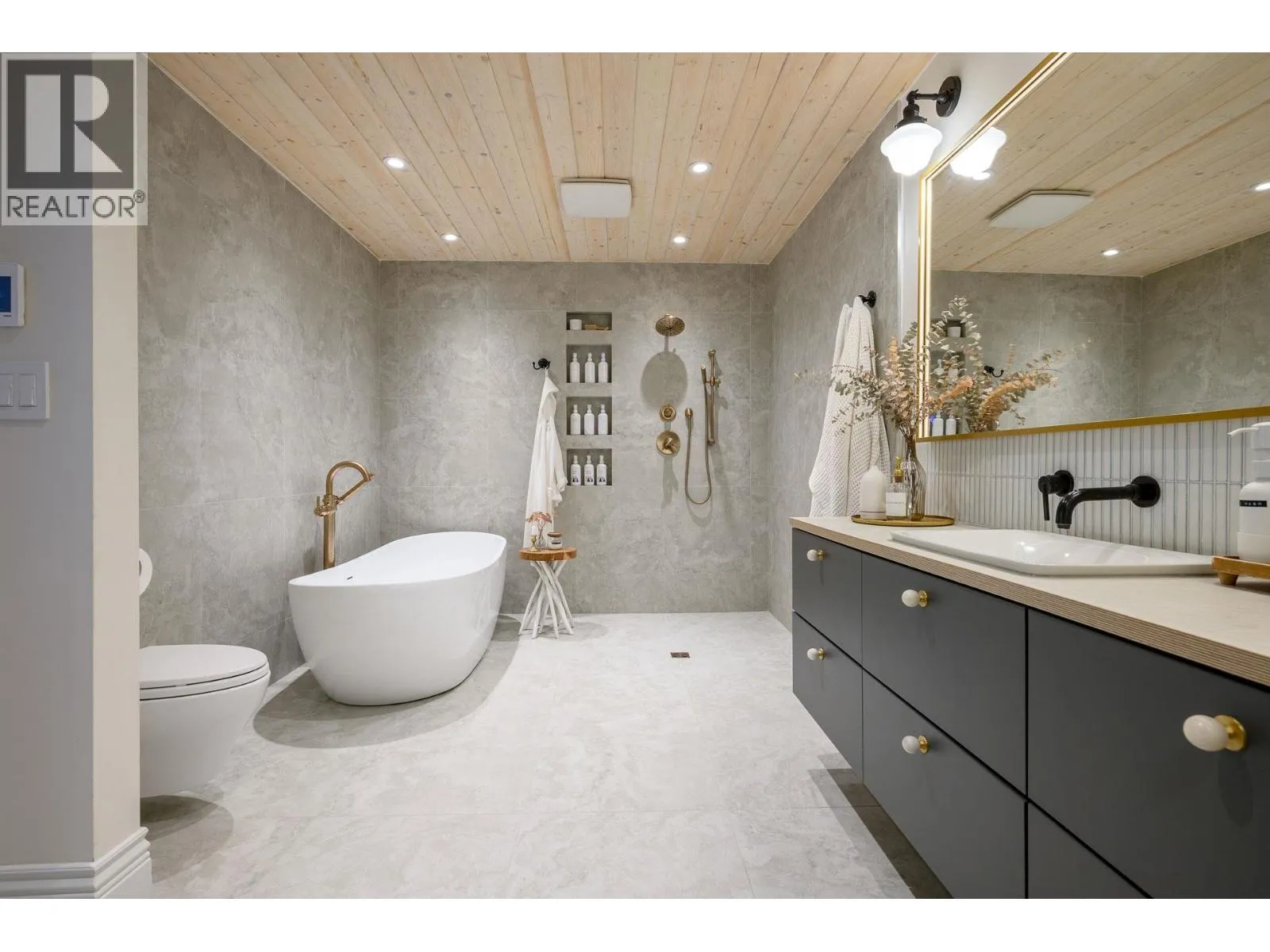 Straight from a HOME & GARDEN magazine! Step into this fully renovated creation thoughtfully designed w/historic charm. Perfectly suited for multi-generational living, home based businesses or wellness professionals, this rare property offers 3 distinct and versatile separate living spaces each w/its own character and purpose. Above main suite features a private ground level entrance ideal for welcoming clients in a comfortable, professional home setting, complete w/full laundry & bathroom, complete kitchen rough-ins, breathtaking unobstructed Ocean views & private patio oasis. Main living area features 3 beds/2 baths, vaulted wood ceilings, exposed beams & stunning finishings inviting a private, seamless balance between home life and work from home! Below main features a gorgeous 2 bdrm legal suite perfect for family or extra income! An impressive 1460 sq/ft of patio/deck space completes this home w/each living space offering its own cozy outdoor retreat. Truly a unique must see property! See video tour (id:27476)