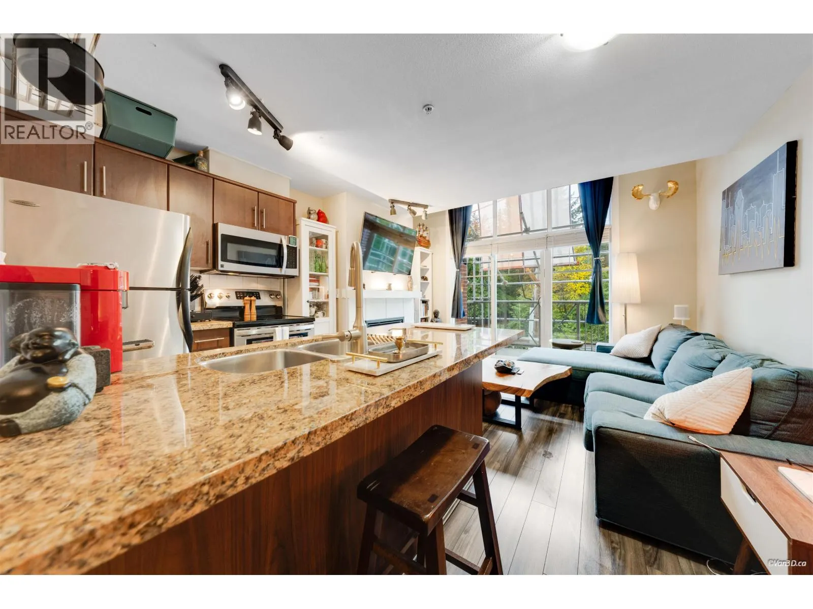 This is one of the best units you will ever see in this area, at this price! Exclusive Top-Floor Gem in Port Moody's Heart! This top-floor, 1-bed, 1-bath home features a rare, exclusive design: the only one in the building (1 of 3 on the property) with soaring high ceilings & oversized windows. This design floods the smart, open layout with natural light. Enjoy a cozy gas fireplace, sunny south-facing balcony, and in-suite laundry. The open kitchen offers granite counters, stainless steel appliances & full-size cabinetry. This well-maintained, pet & rental-friendly building is ideal for first-time buyers or investors, with a fitness centre, amenity rooms, 1 secure parking stall, a large locker & visitor parking. A commuter's dream! Just a 2-min walk to Inlet SkyTrain/West Coast Express & 5-min walk to Suterbrook Village. Steps from Rocky Point Park, Brewer´s Row, Newport Village & top schools. Quiet, convenient, and truly one-of-a-kind! Don´t miss out! (id:27476)