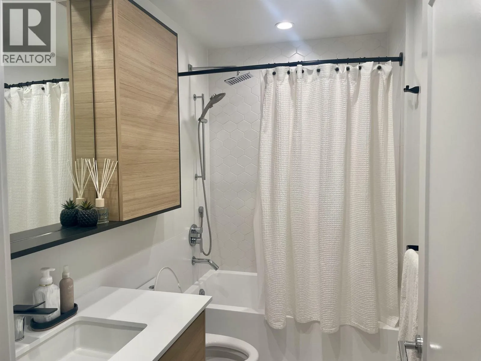 Like new penthouse, this one has it all, truly. 11 foot ceilings throughout, entertainer's kitchen, southern exposure for amazing top floor natural/sun light all day long. Serene primary bedroom complete with a massive walk in closet and a great bistro balcony. This penthouse unit has air conditioning plus a spectacular 340 sf roof top deck for year round enjoyment and it doesn't end there. For everything this offers on the inside this home also has two parking spots, that's two parking spots (one with an electrical plug) close to the elevator for a one bedroom home.50 Electronic has 9000 square ft of clubhouse and amenities including a private guest suite, dedicated dog washing room, work and fitness spaces. Steps to Burrard Inlet, walking/running trails, breweries and ice cream. Call. (id:27476)