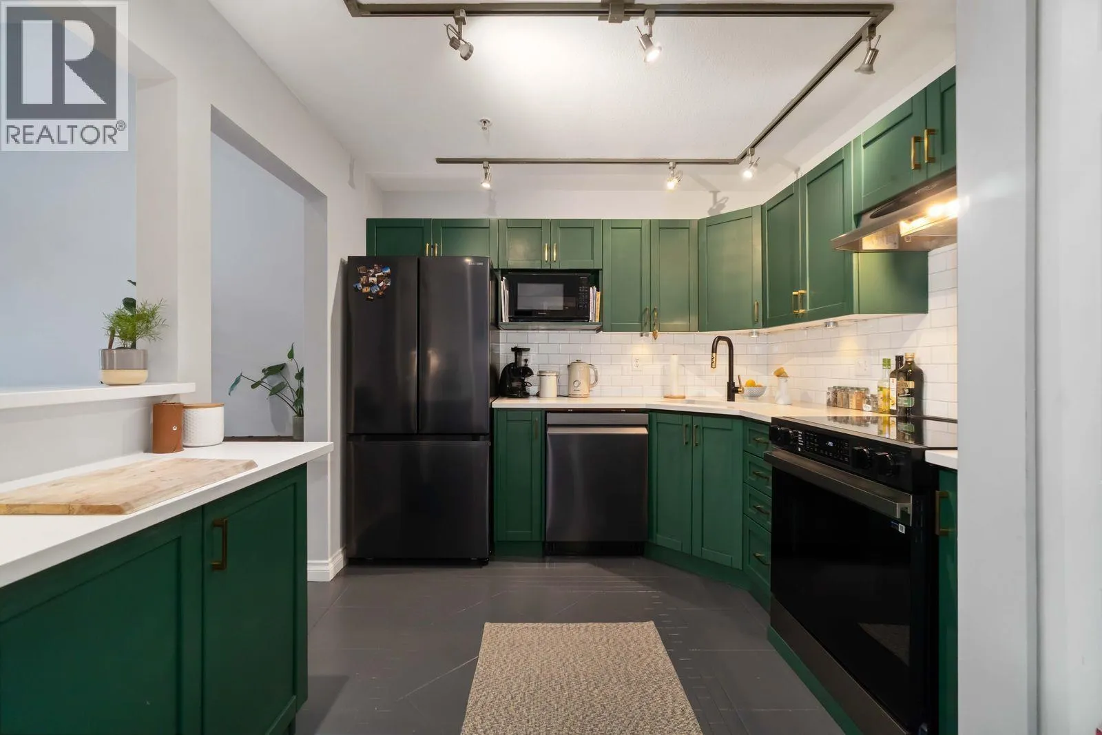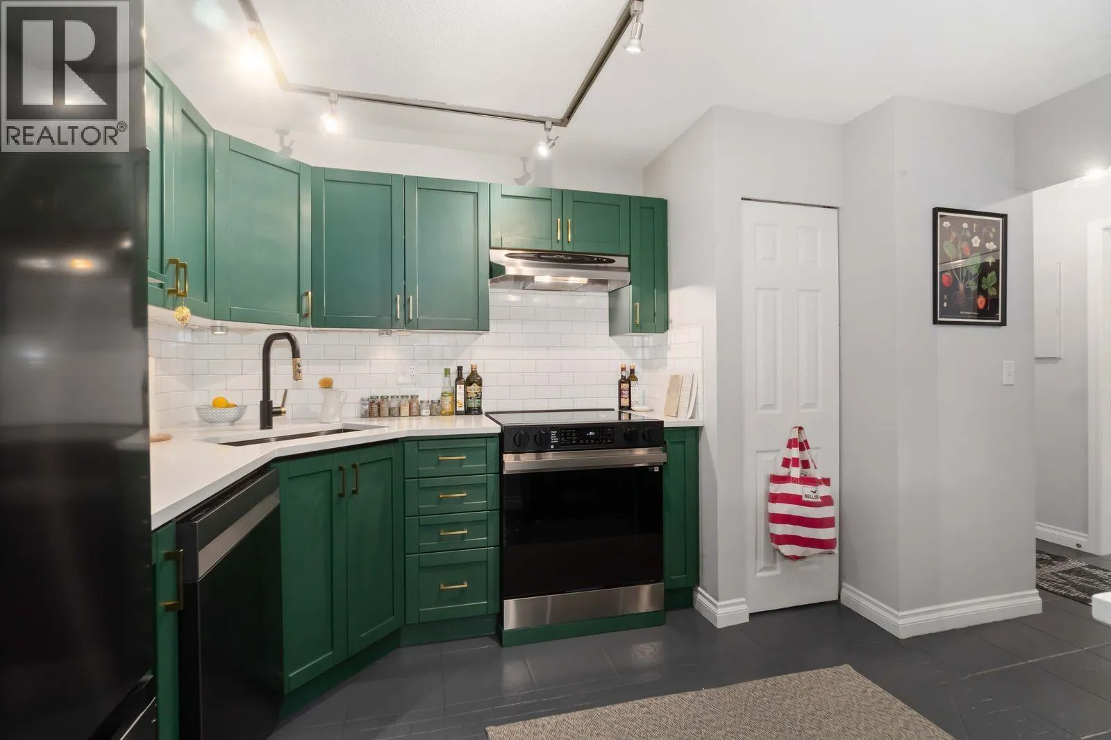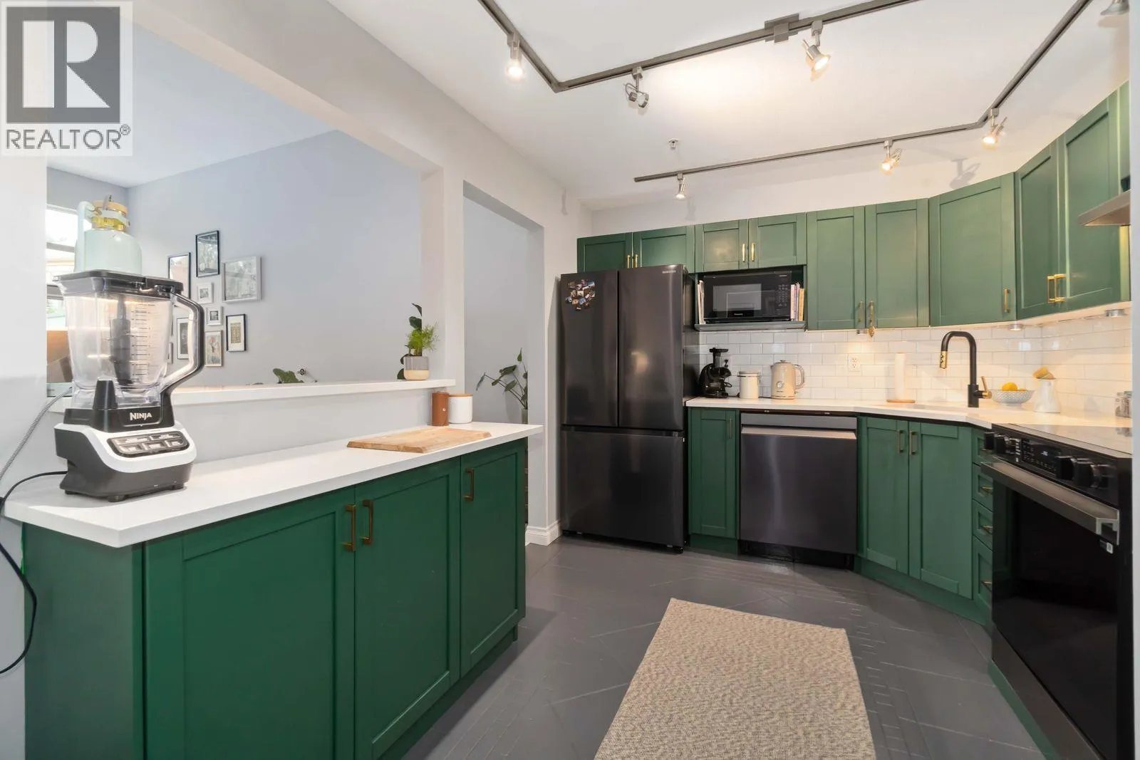 Welcome to HERITAGE GRAND at Newport Village. Experience top-floor living in this beautifully updated 2 bed 1 bath home located in the heart of Port Moody. Featuring 12' ceilings in main living area, open concept layout cozy gas fireplace creates a perfect space for relaxing & entertaining. The kitchen shines with new quartz counters, s/s appliances, backsplash, sink & faucet & a breakfast bar. Enjoy the large NW-facing balcony. The primary bed offers a generous w/i closet & 2nd bed overlooks the peaceful inner courtyard. New 4 pc bath. New hot water tank & new paint throughout - making this home move-in ready. Well maintained bldg., pet friendly. 2 Parking! Walk to Rec Centre, Library, Rocky Point Park, Brewer's Row, Skytrain, Suterbrook & Newport Village. Immaculate! OPEN HOUSE SUN NOV 16, 1-3. (id:27476)
