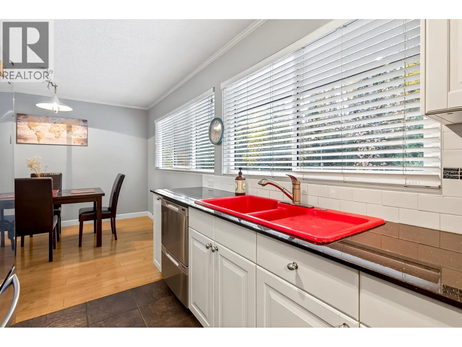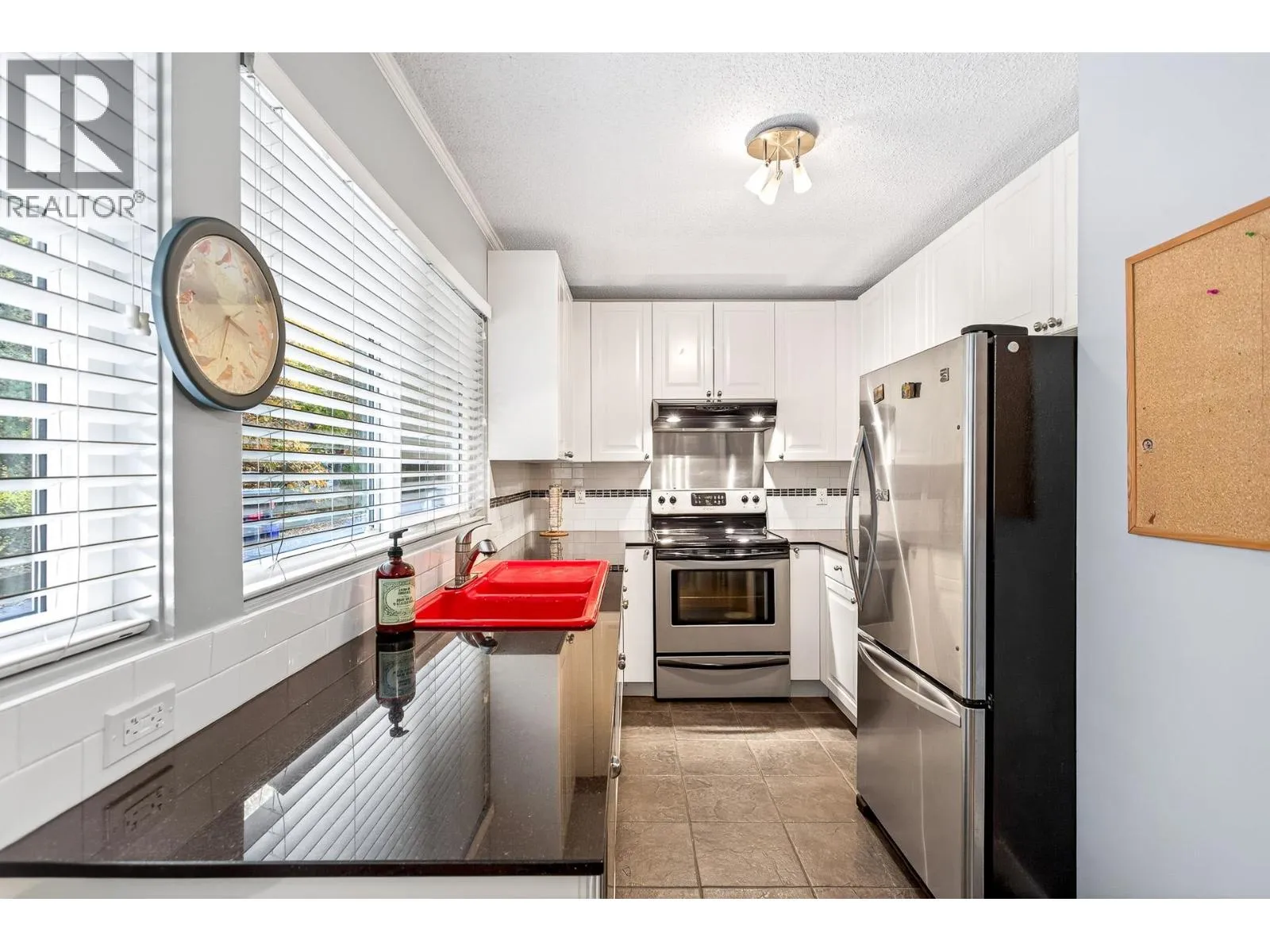 Lovely updated 2-bed, 1.5-bath one-level townhome in desirable College Park. Bright open floor plan with a spacious living room and large windows leading to a private balcony overlooking a peaceful greenbelt. The updated kitchen (2010) features granite countertops, modern cabinets, backsplash, newer stainless steel appliances, and flooring. Primary bedroom offers a walk-in closet and rare 2-piece ensuite. Newer laminate flooring, blinds, and windows throughout. Bonus large storage area-perfect for an office. Well-maintained complex with new roof (2009) and balconies (2011). Great location near Burnaby, SFU, schools, shopping, Barnet Hwy, and future Evergreen Line. Shows beautifully! (id:27476)