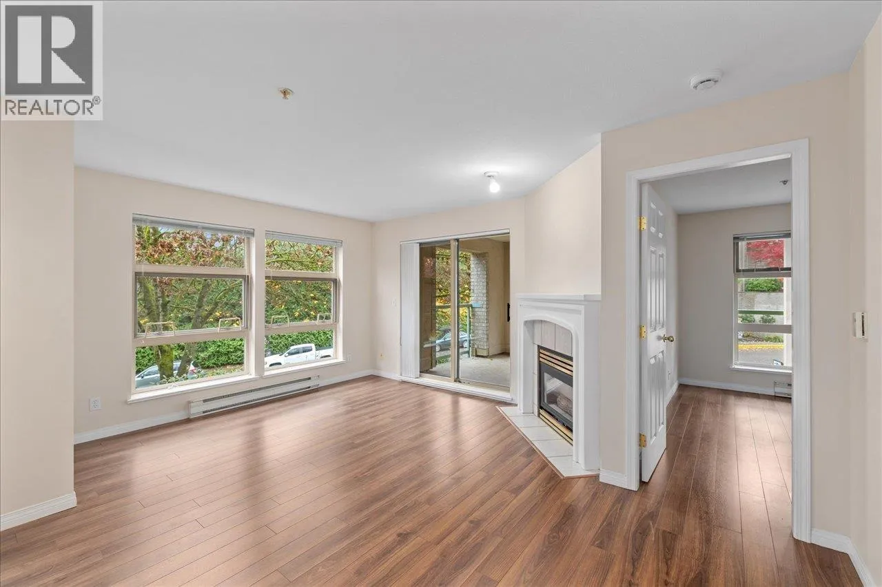2 bed 1 bath CORNER UNIT @ Heritage Grand. Soaked in NATURAL LIGHT with serene treed exposure facing the quiet courtyard side of the bldg. Completely private with no one looking in! Functional ~900 sqft unit features open living & dining areas with cozy gas fireplace that leads to your huge almost 200 sqft covered balcony - perfect for BBQs, entertaining or relaxing! Primary bdrm with walk-thru closets & cheater ensuite. BONUS: TWO parking spots, 1 locker. Amazing location WALKING DISTANCE to shopping & restaurants @ Newport & Suterbrook Village, Brewers Row, Rec Centre & Inlet Stn Skytrain. Short ride to the W/C Express @ Moody Station! Outdoor enthusiasts will love the proximity to the Inlet Trail, Rocky Point Park, Buntzen & Sasamat Lakes. Priced Below Assessment with Quick Possession possible! Open Sat Nov 15 1-3pm (id:27476)