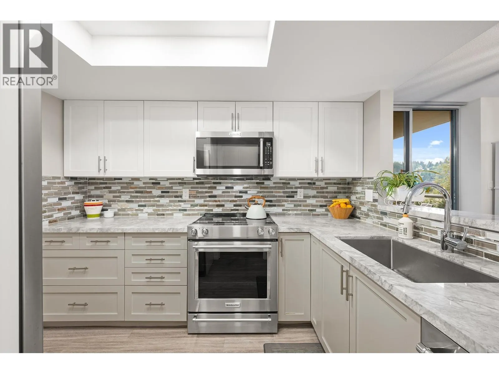 RENOVATED CORNER UNIT, one of only a few layouts with 2 balconies & open private views. In the heart of Newport Village, shopping at your doorstep & Ocean, Mountains, Parks & Skytrain steps away. The Elgin - well respected, impeccably maintained & well managed building w/beautiful grounds & proactive strata. Don't be fooled by its age! Lobby has been updated, roof & piping done. Large welcoming entry, bedrooms on opposite end for ultimate privacy, updated kitchen & baths, s/s appliances, hardwood flooring, new Washer/Dryer & cozy gas fireplace. Dining room with direct access to one of the 2 balconies, the other off primary bdrm is private & covered. Ample storage space throughout. 2 parking, 1 locker, bike rm, gym, hot tub, workshop, lounge, caretaker. (id:27476)